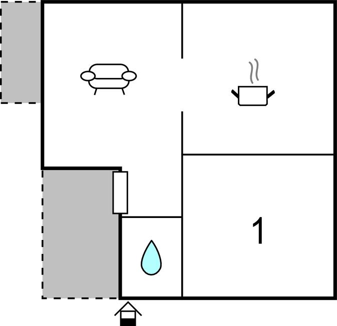 Opholdsstue/køkken 25m2 - 2 Sovepladser. (Sofa, madras eller lignende).