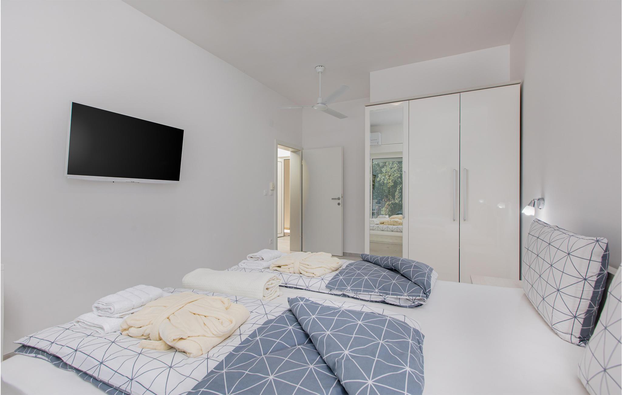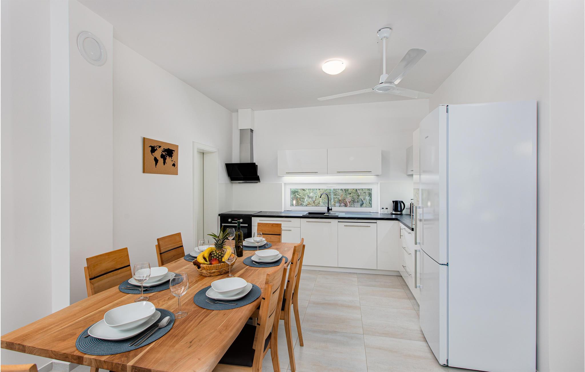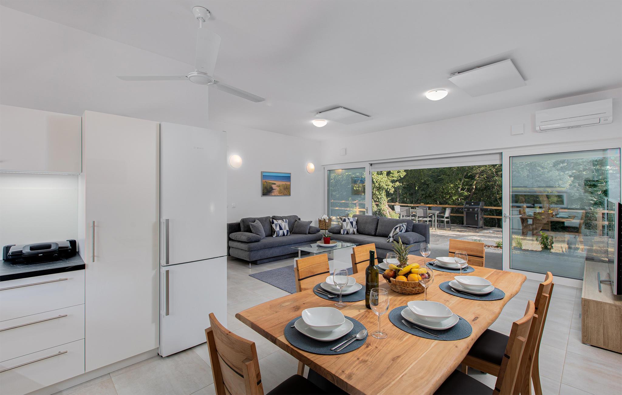 Interiøret er fint og rummeligt, og stuen og køkkenet er fuldt udstyret med alt, hvad du har brug for. Soveværelserne har eget badeværelse. Huset ligger i et meget roligt område omgivet af smuk natur, men alligevel er der butikker, restauranter og smukke strande i nærheden.