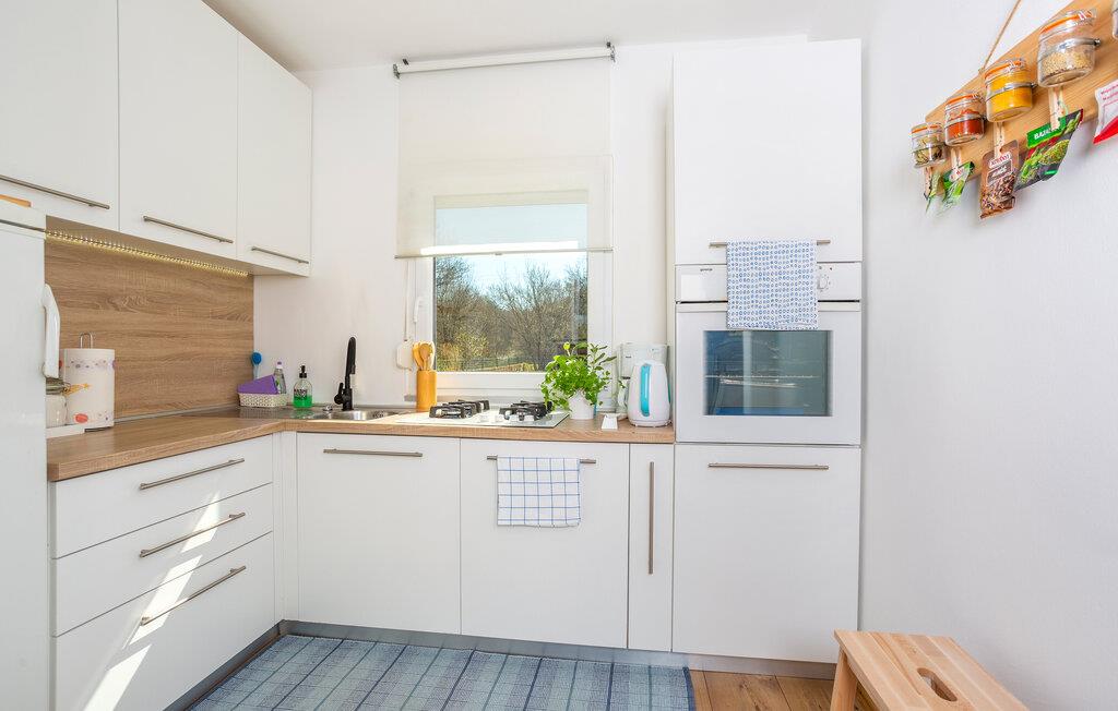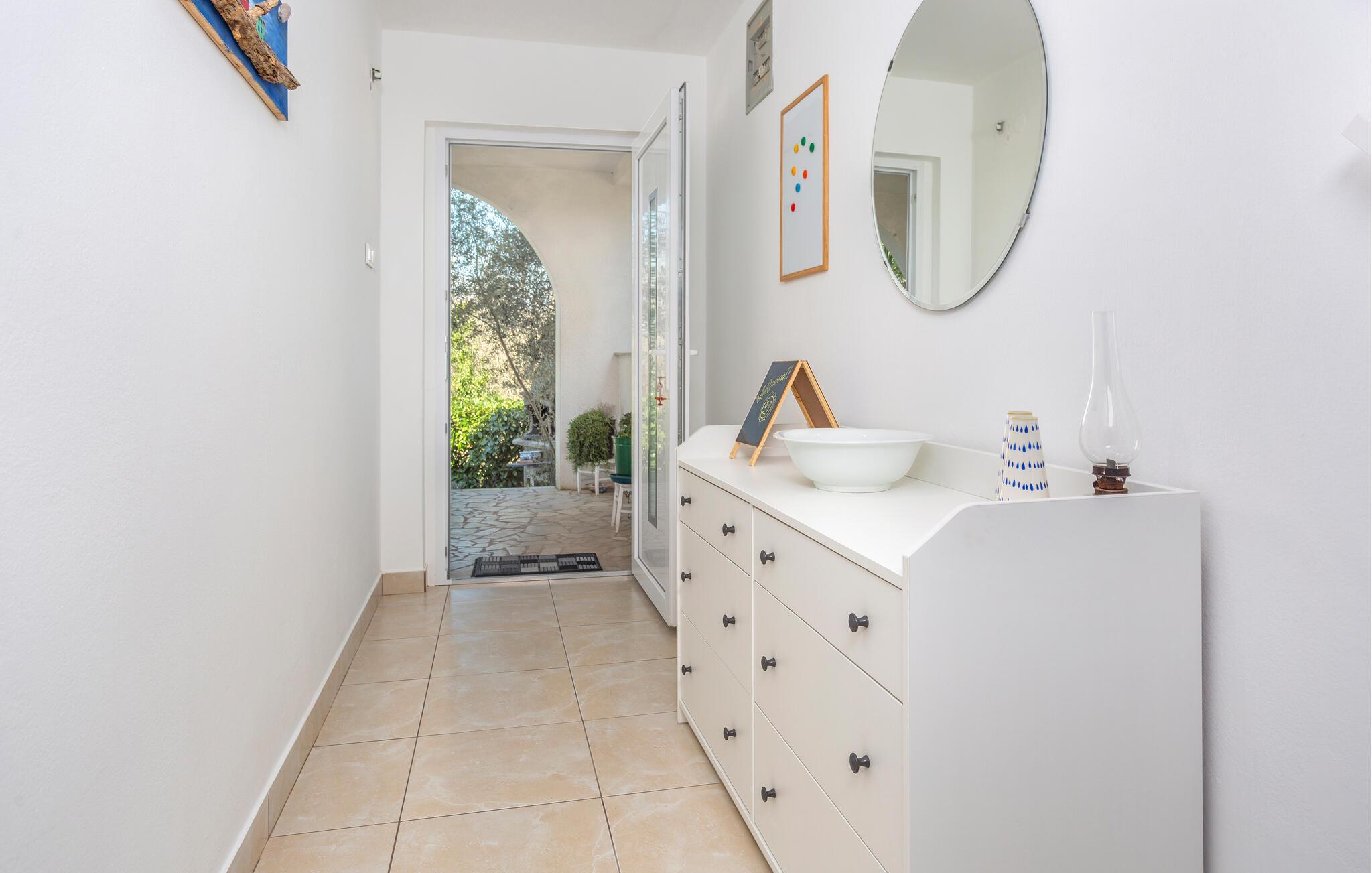 Der er 2 km til vandet, hvor der er klippekyst, men I har kort afstand til en lang kystlinje, hvor der er gode bademuligheder flere steder.