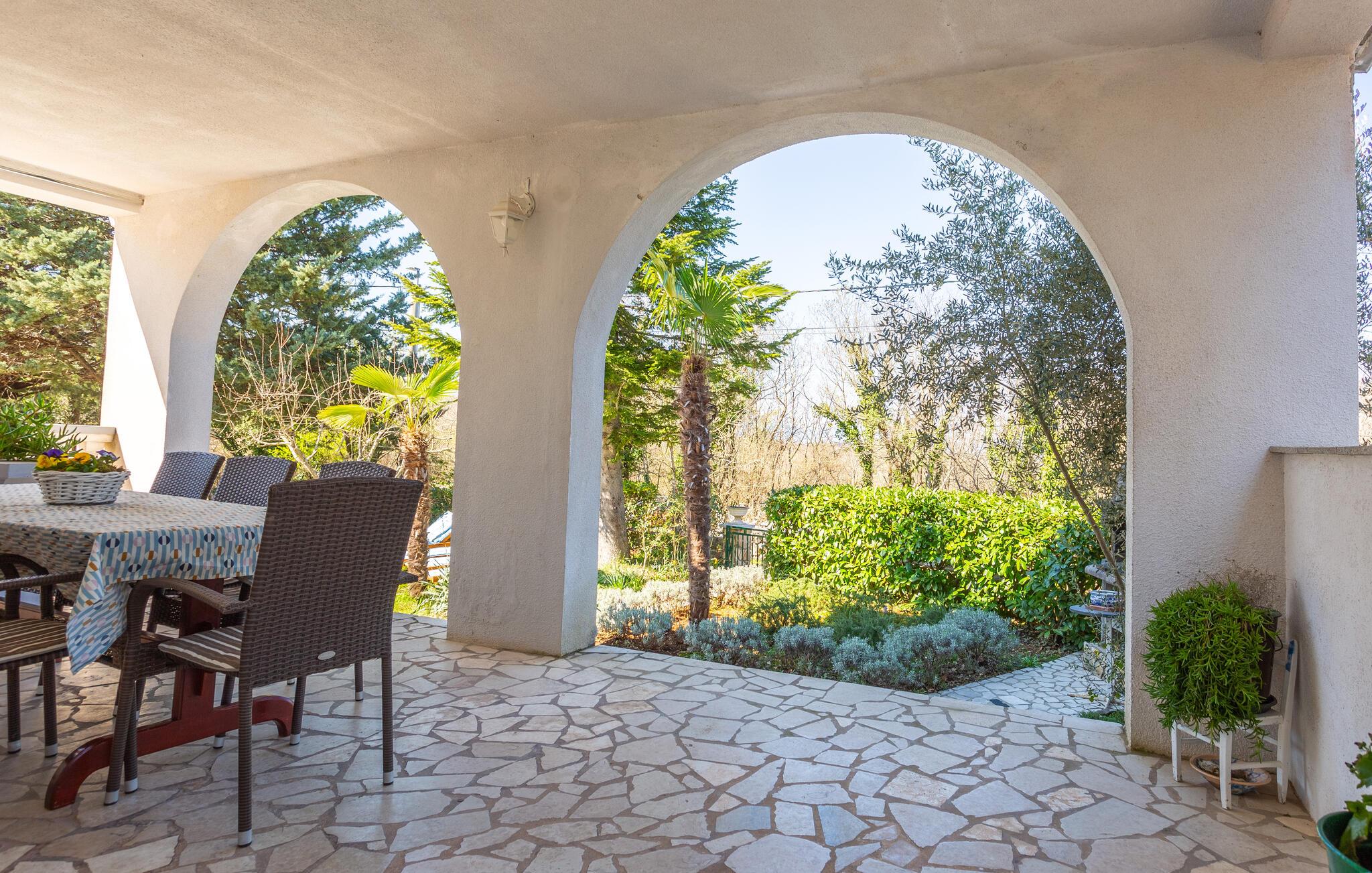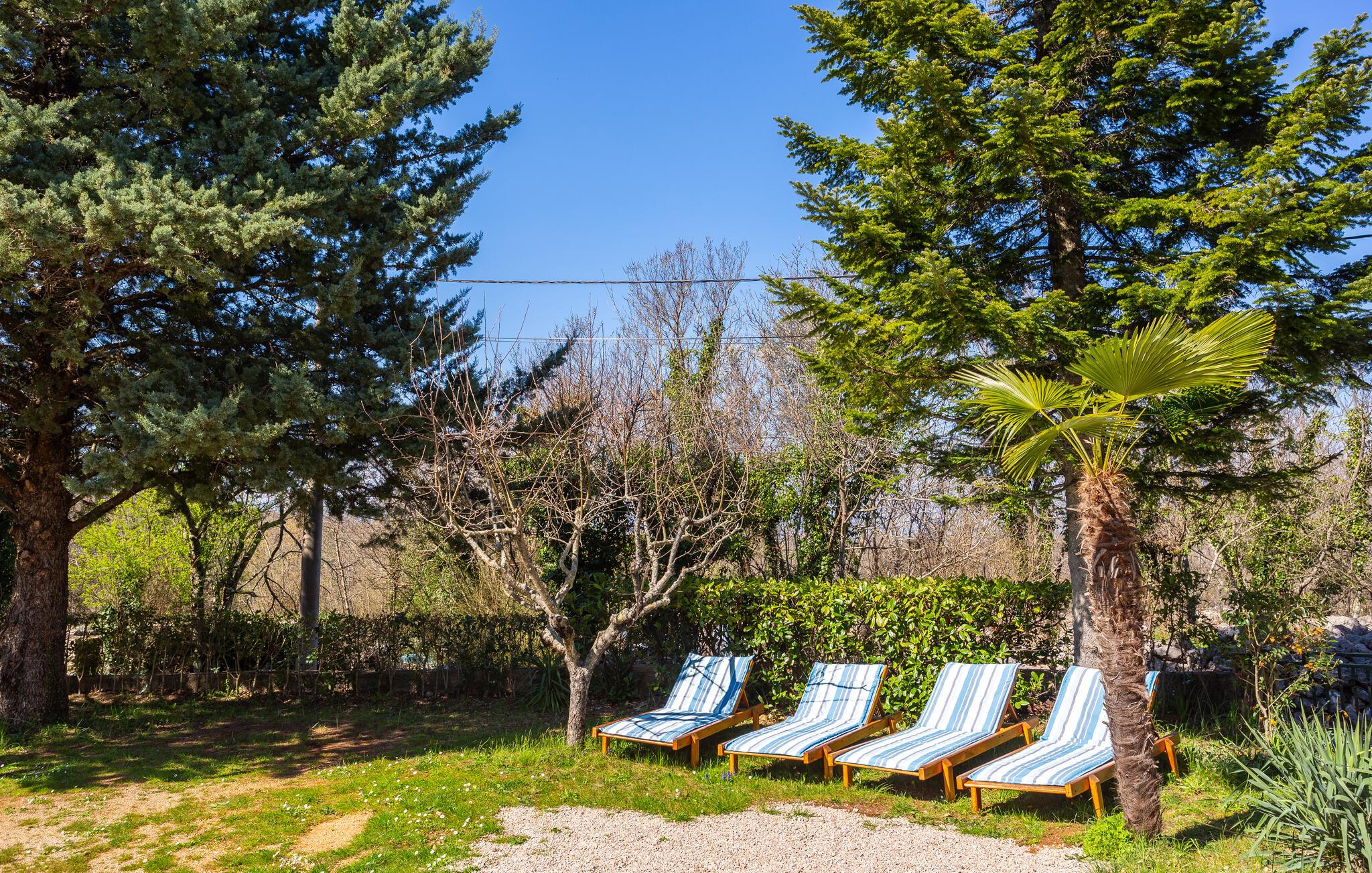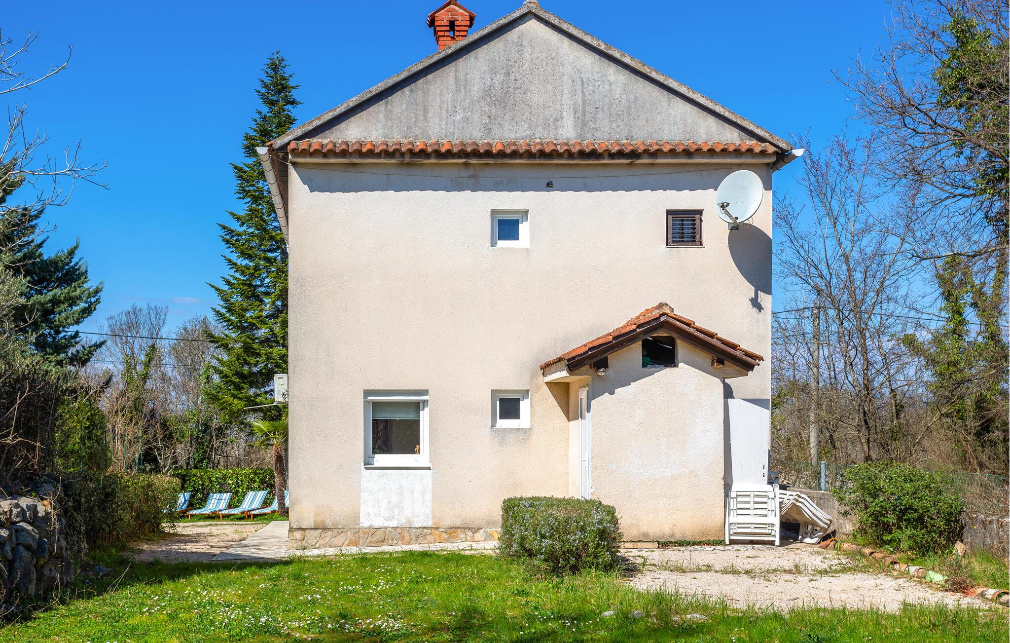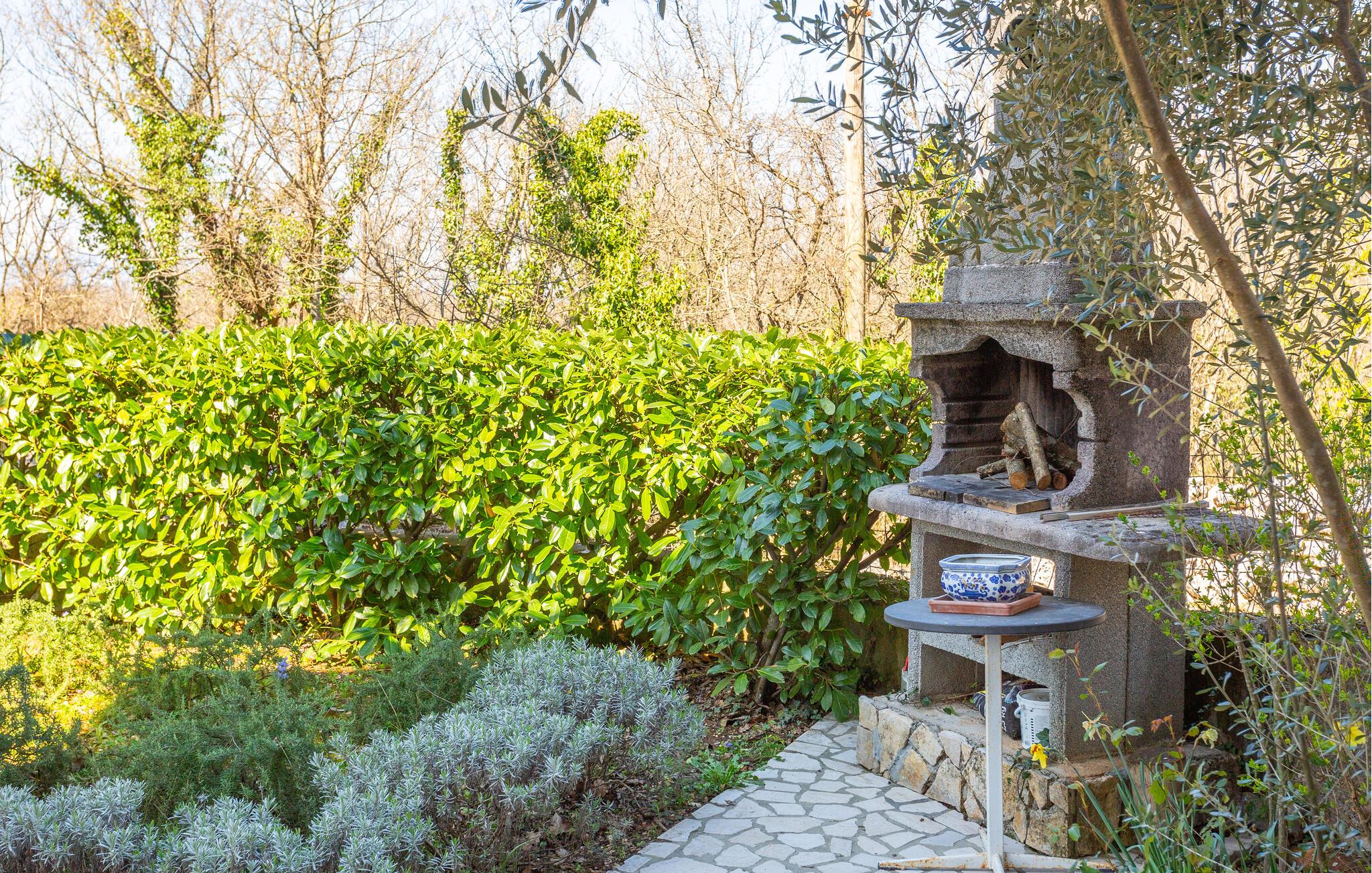 Dette fritstående feriehus ligger i fredfyldte naturomgivelser med masser af blomster blomster, hvilket er en fryd for øjet.
