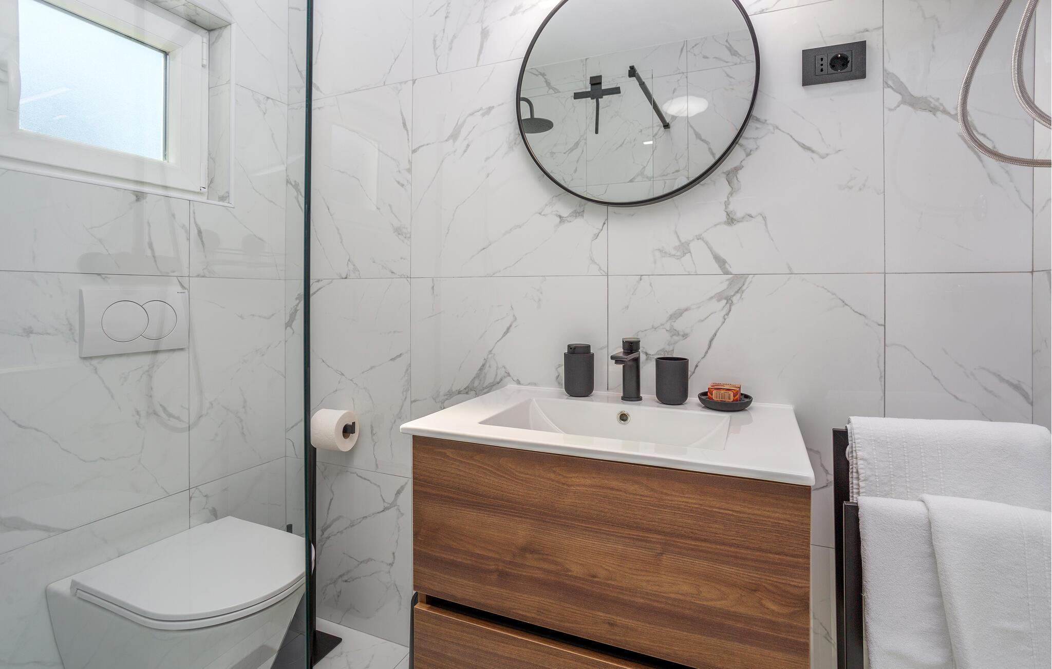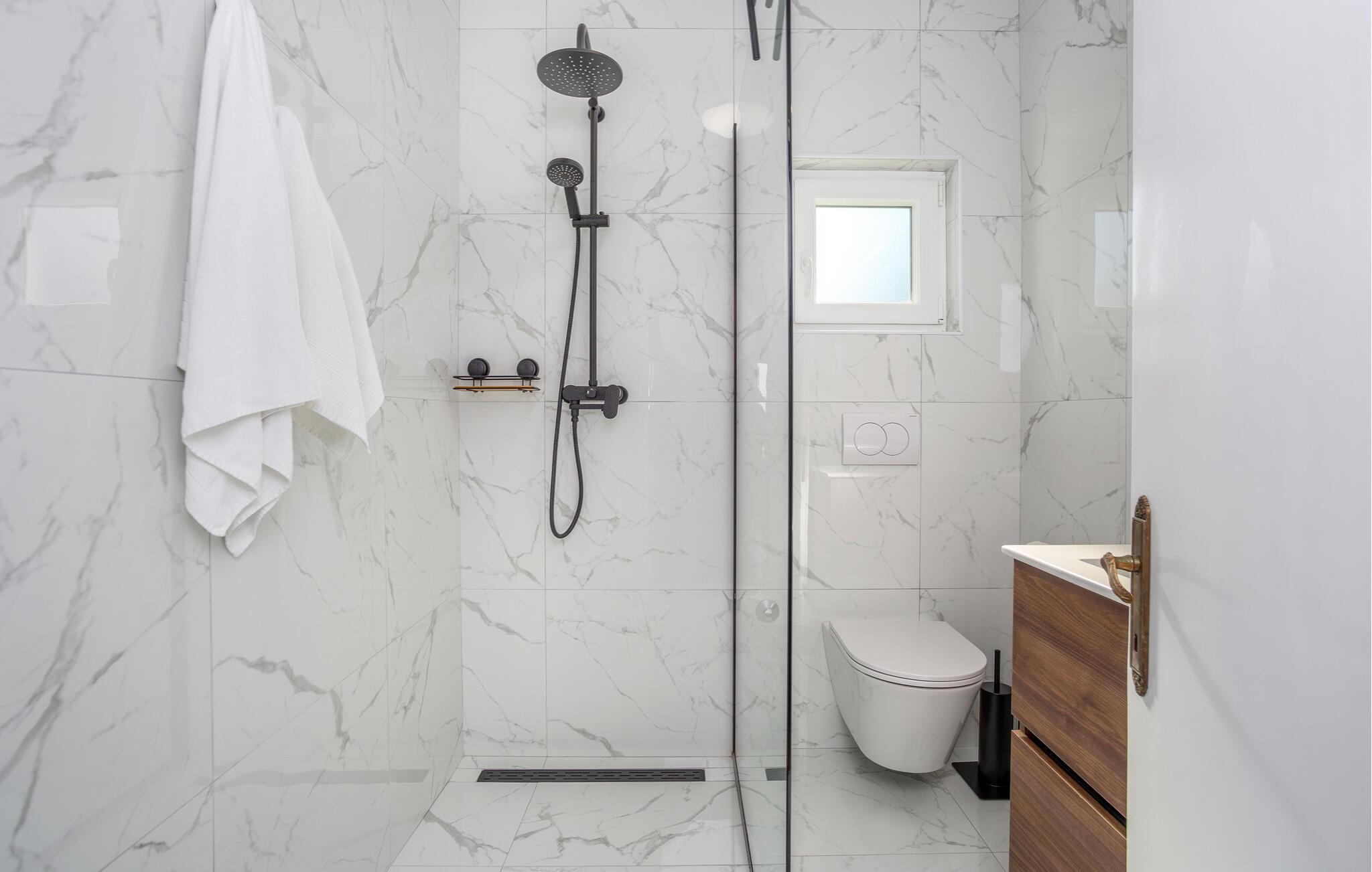 Badeværelse (nr. 1) - WC. Varmt og koldt vand. Bruser