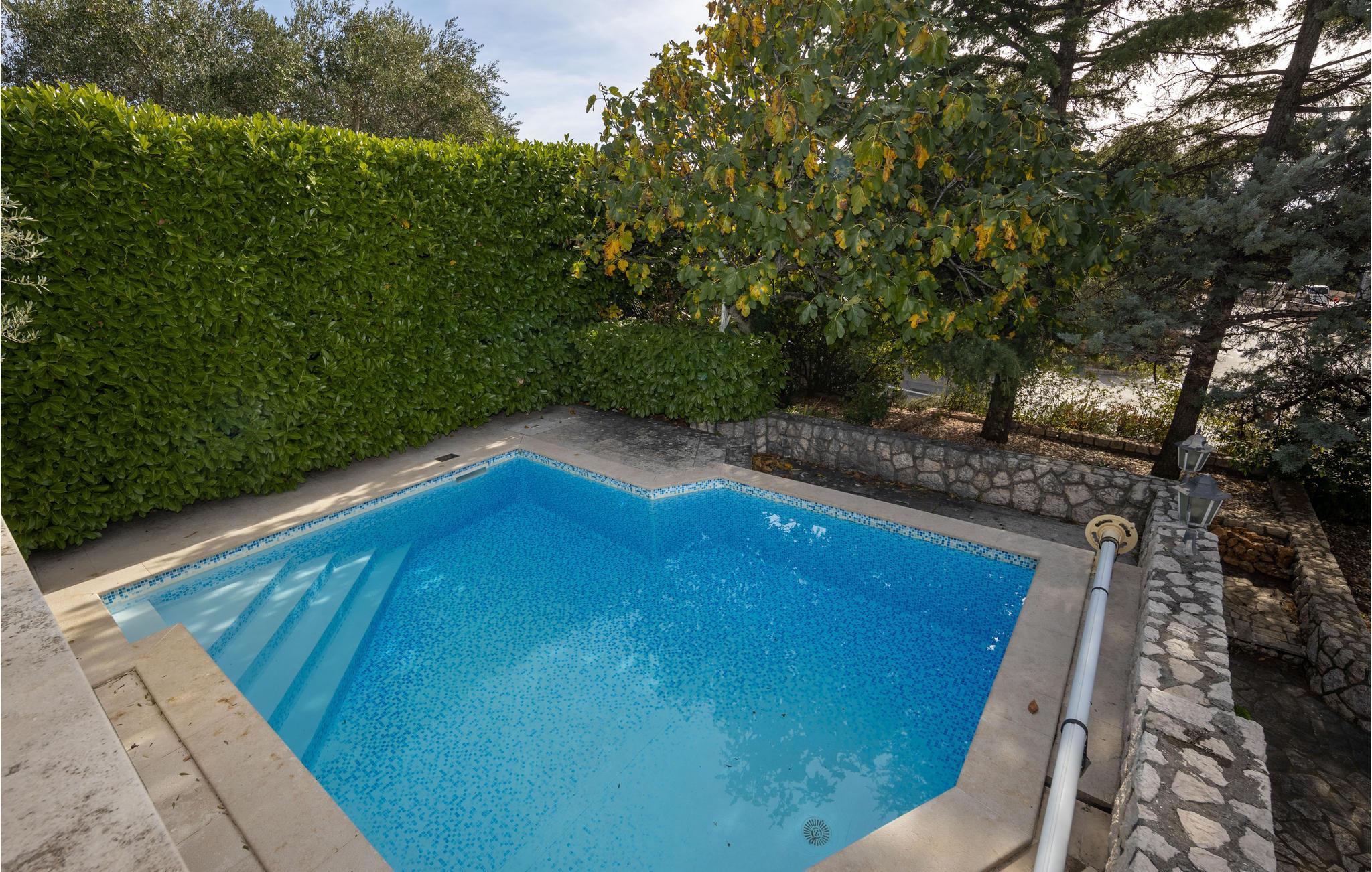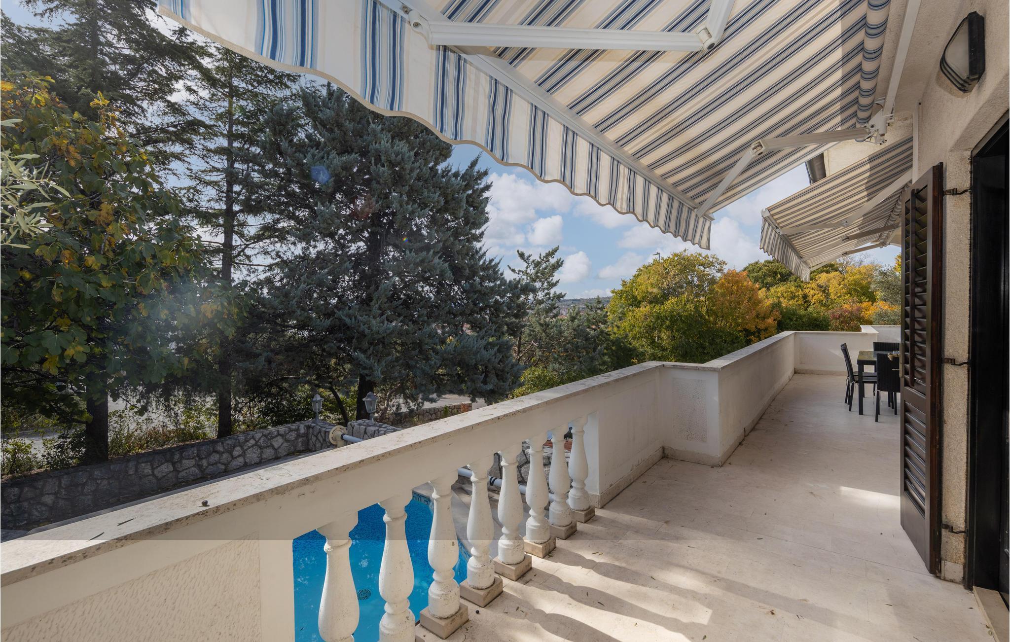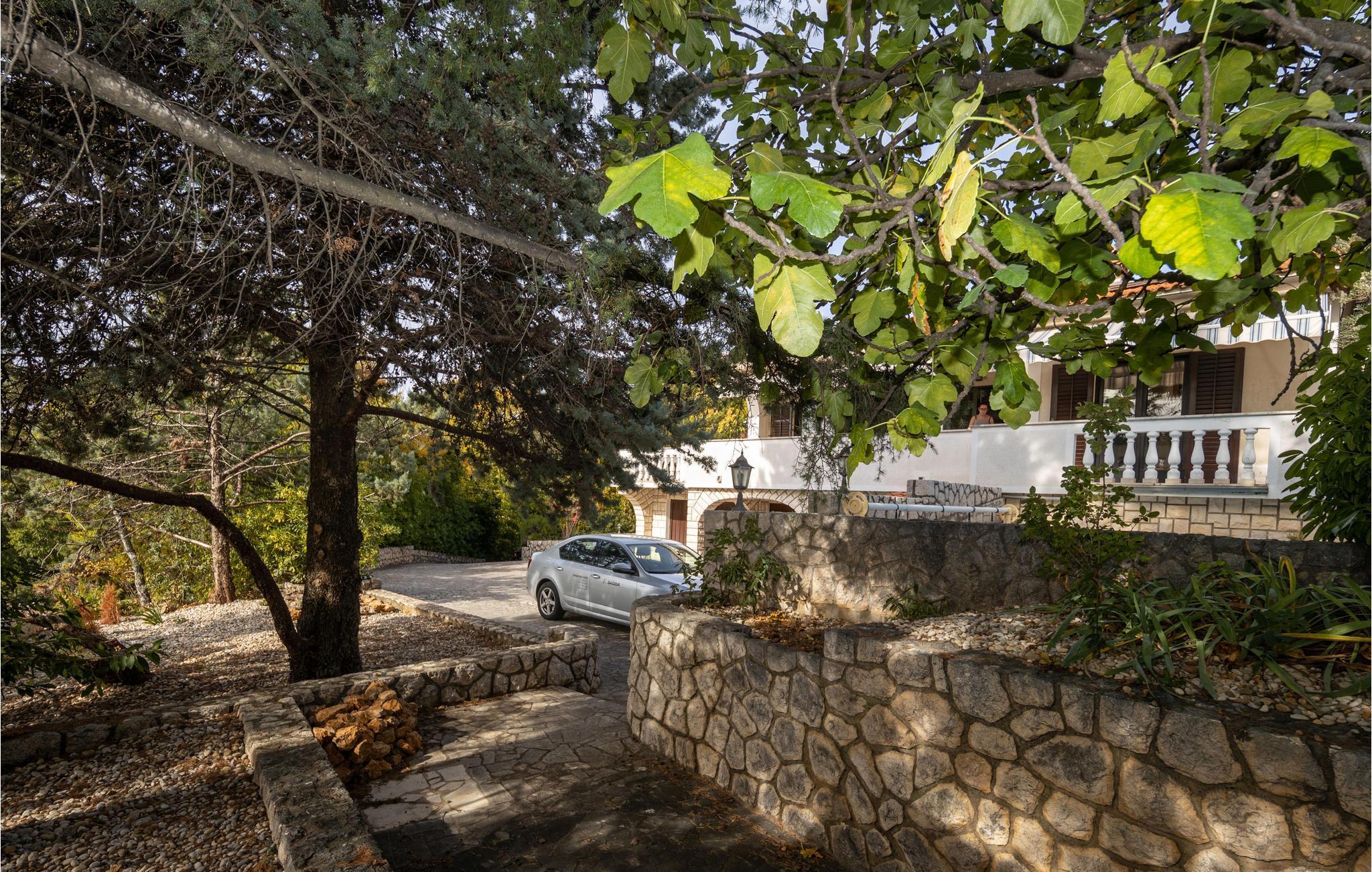 Dette charmerende feriehus med pool er omgivet af mediterrane planter og ligger i et skøn område i byen Krk. Her kan I holde en afslappet ferie, i private omgivelser der er skærmet mod indsyn udefra. I kan nyde morgenkaffen på terrassen og bare slappe af med en god bog. Huset ligger i et kuperet terræn, og strækker sig over stueplan og første sal, der er forbundet med udendørs trapper. Soveværelse 3 (se grundplan) og badeværelse ligger i et anneks med egen indgang. Øen Krk er meget interessant med mediterrane planter, små ensomme strande og maleriske små byer. Spis også på en af de fremragende restauranter. Hold en aktiv ferie med Wake Boarding i Punat, rideture og vandskilift, gokart i Krk og utallige vandre- og cykelstier.