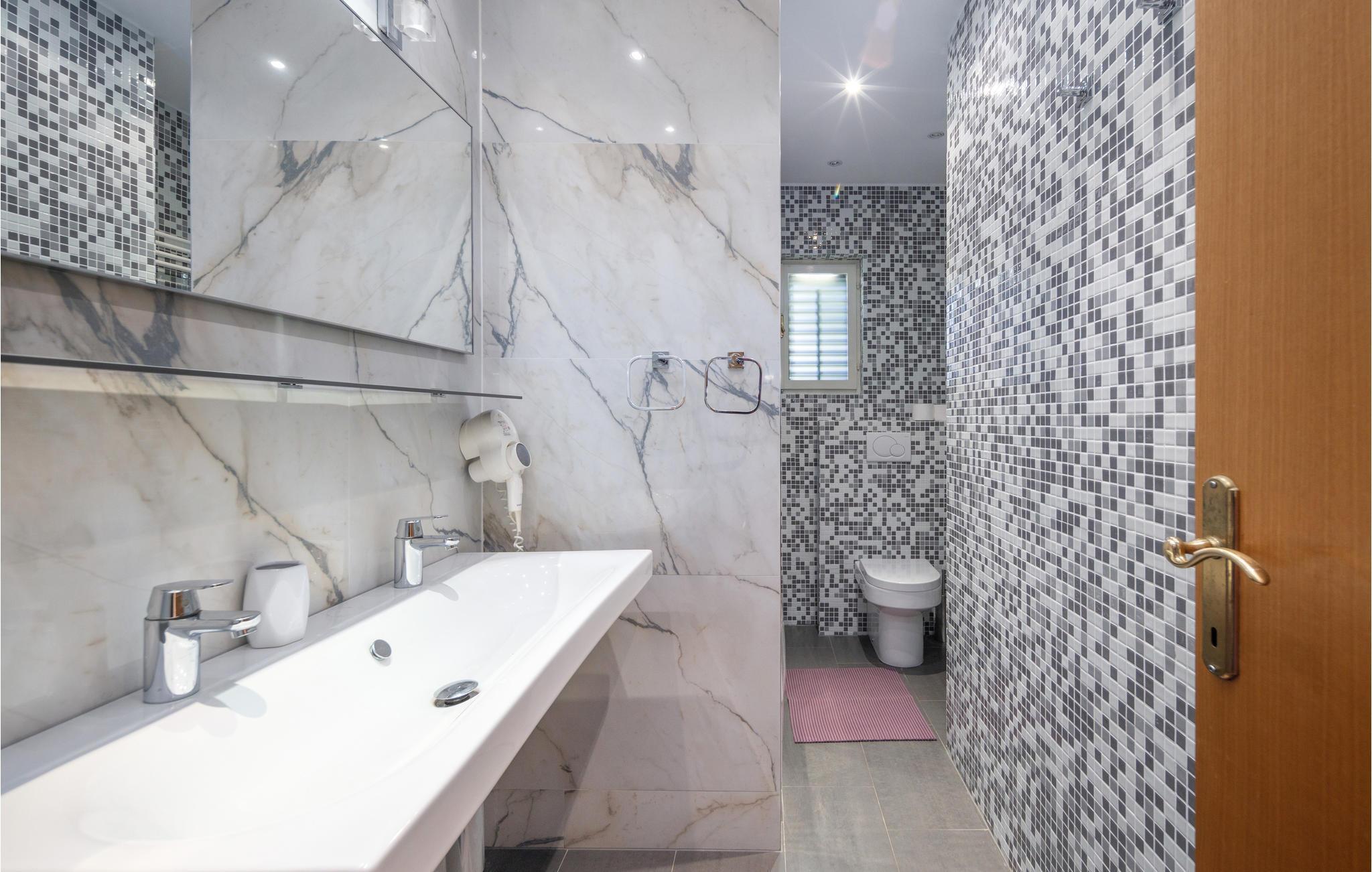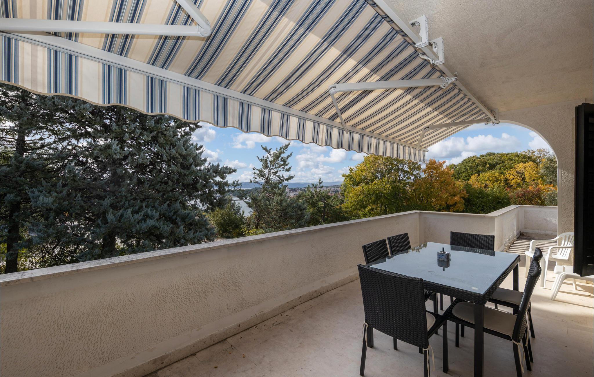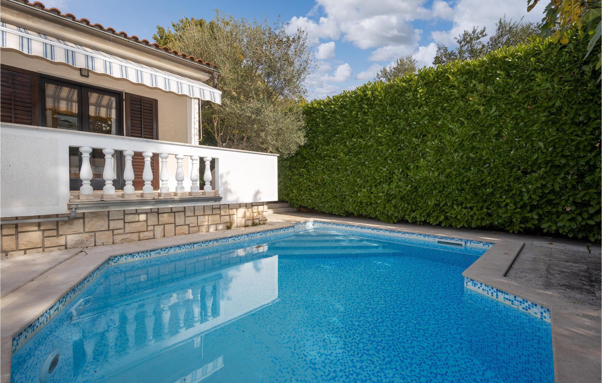 Dette charmerende feriehus med pool er omgivet af mediterrane planter og ligger i et skøn område i byen Krk. Her kan I holde en afslappet ferie, i private omgivelser der er skærmet mod indsyn udefra. I kan nyde morgenkaffen på terrassen og bare slappe af med en god bog. Huset ligger i et kuperet terræn, og strækker sig over stueplan og første sal, der er forbundet med udendørs trapper. Soveværelse 3 (se grundplan) og badeværelse ligger i et anneks med egen indgang. Øen Krk er meget interessant med mediterrane planter, små ensomme strande og maleriske små byer. Spis også på en af de fremragende restauranter. Hold en aktiv ferie med Wake Boarding i Punat, rideture og vandskilift, gokart i Krk og utallige vandre- og cykelstier.