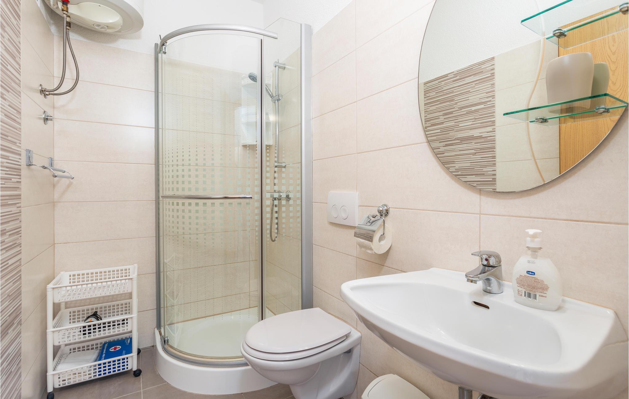 Kast et håndklæde over skulderen og gå ned til stenstranden gennem byen, hvor I heller ikke har langt til havnen eller den gamle bydel. I har nem adgang til alt, hvad I skal bruge. Tag på en bådtur eller lej en cykel - I kan både opleve området fra vandsiden eller med fast grund under fødderne. I har kort afstand til en lang række fantastiske strande og den imponerende underjordiske hule Biserujka špilja.