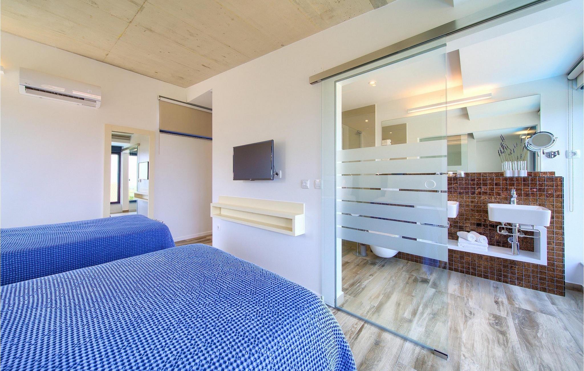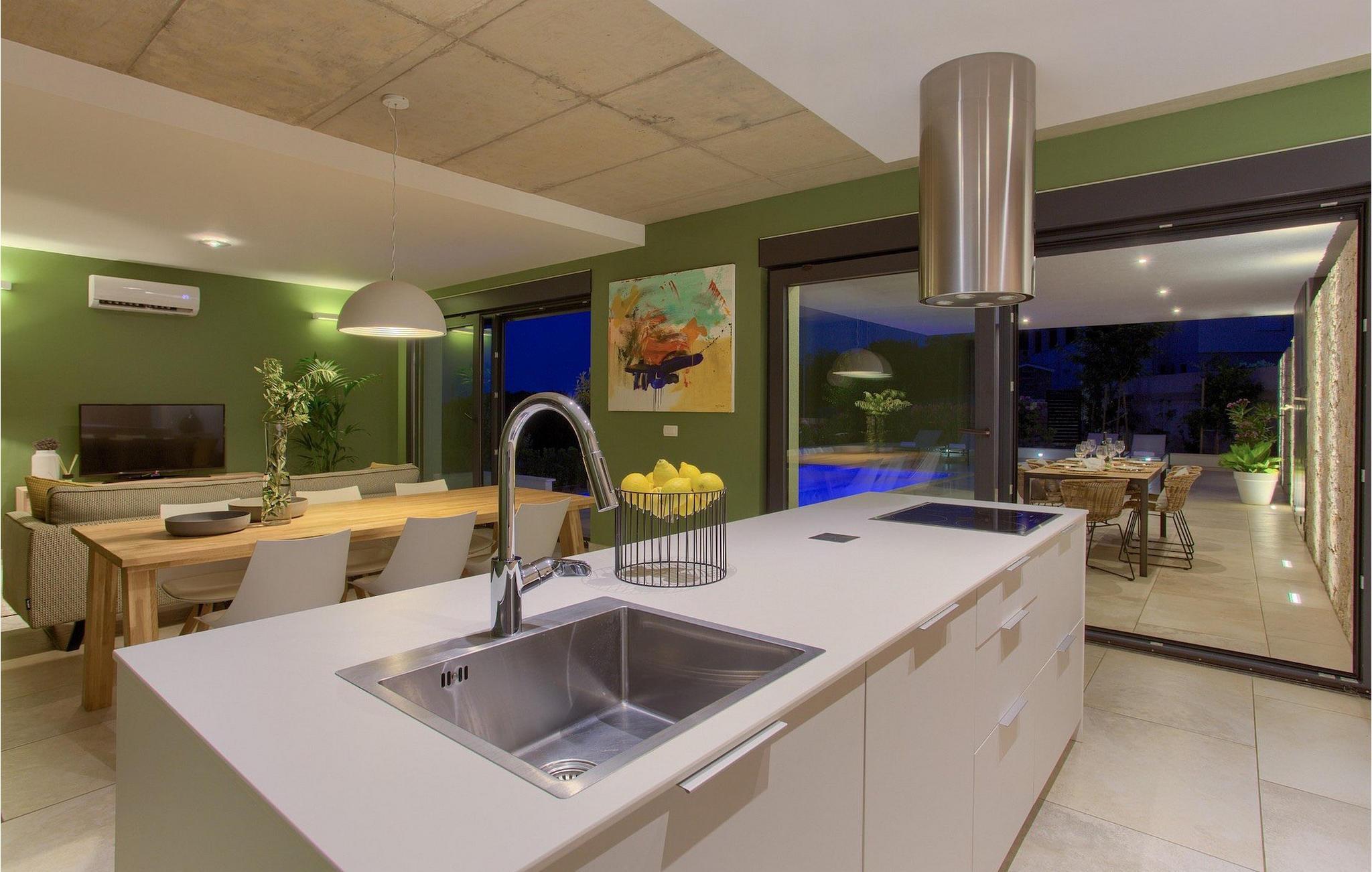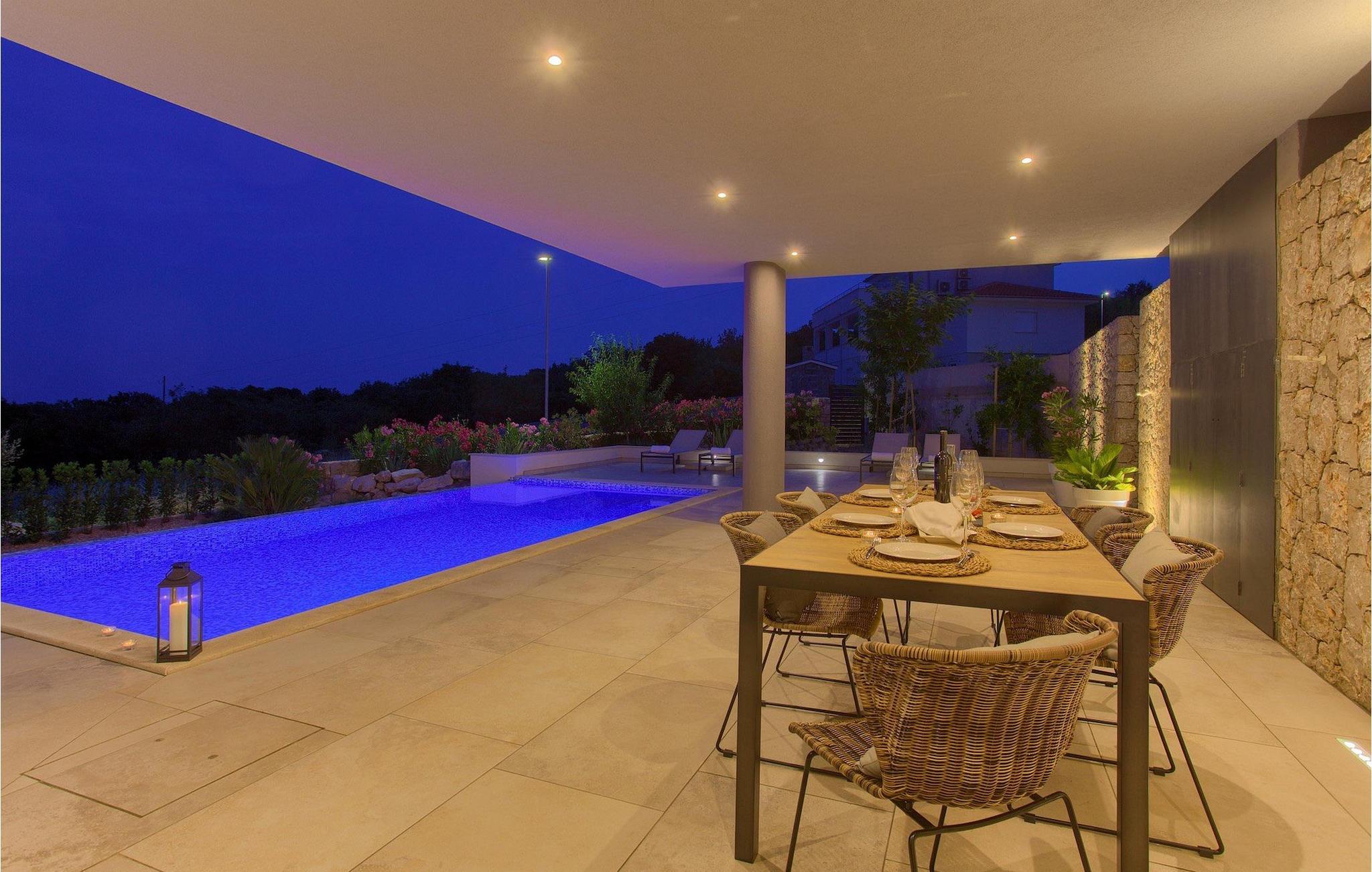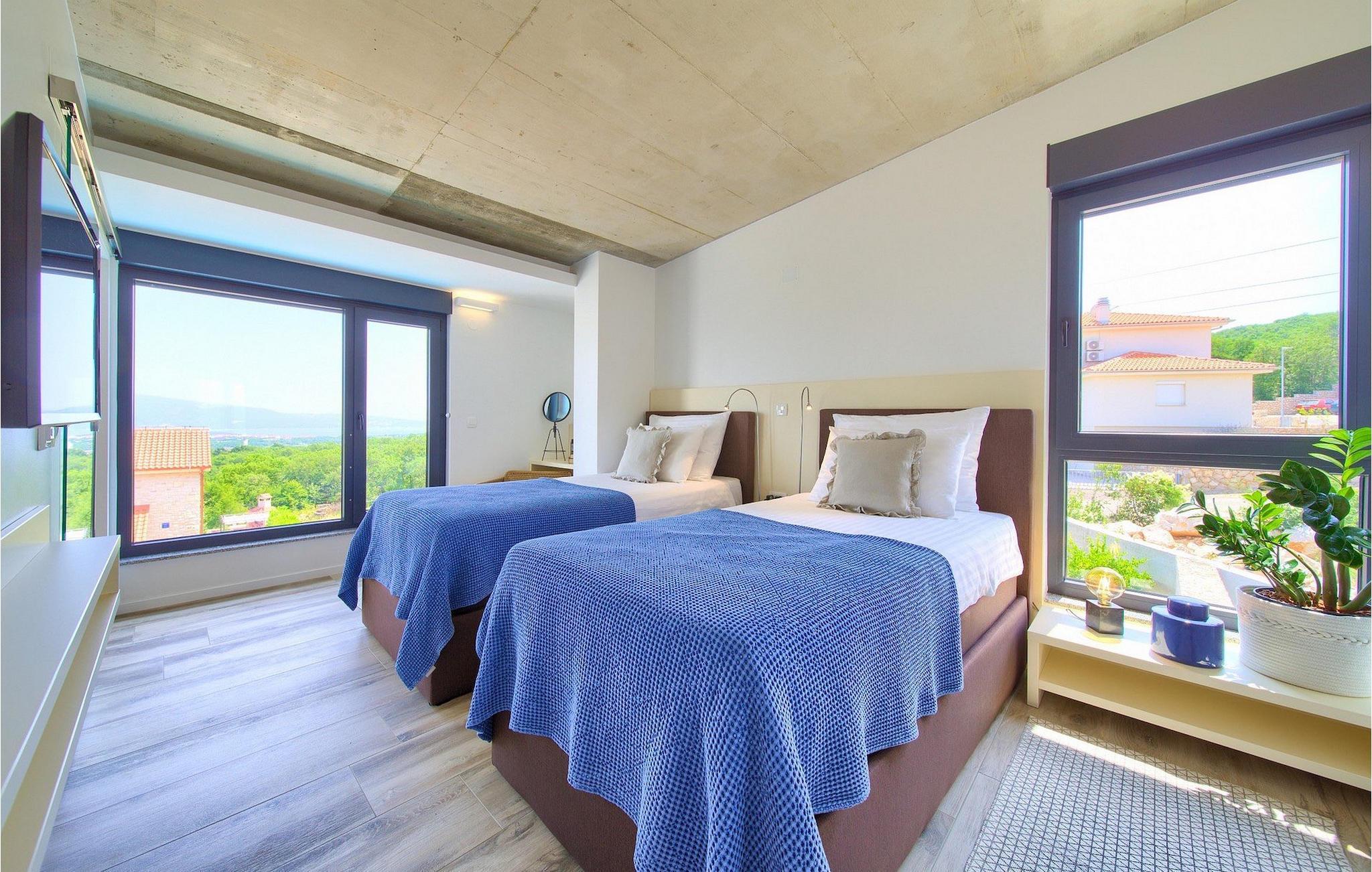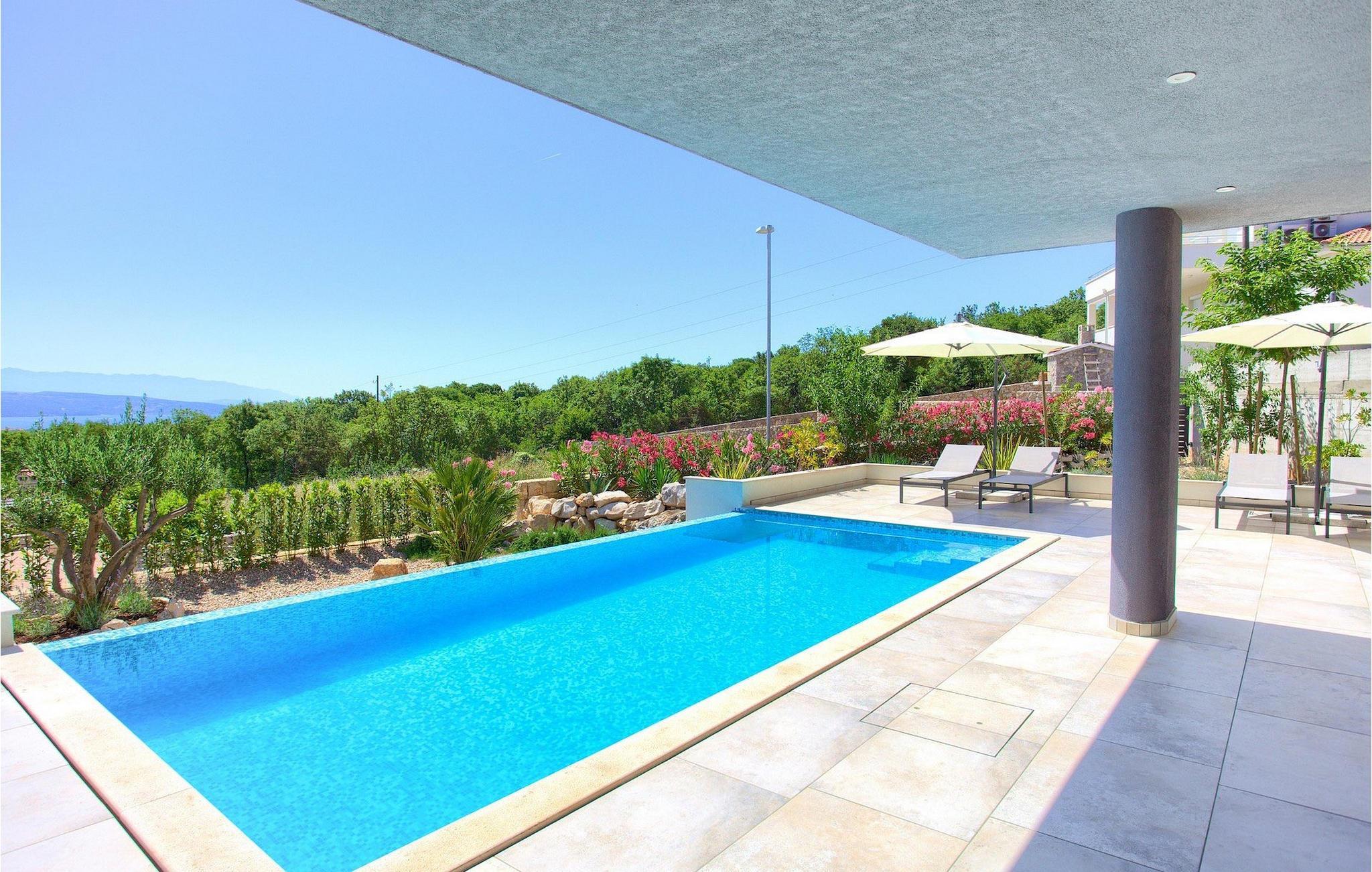Denne udsøgte villa ligger på øen Krk i Kvarner-regionen. Den er perfekt egnet til op til 6 gæster. Villa Silente er møbleret og dekoreret med en høj standard for at tilbyde sine gæster en virkelig uforglemmelig ferie. Den består af en rummelig stue-spisestue i stueetagen, der er indrettet med møbler og materialer af høj standard. Så hvis du vil føle, at du bor i et designer showroom, der kun er for dig, så er dette stedet at være! Første sal er reserveret til afslapning og en god nats søvn, da der kun findes de komfortable soveværelser. Der er tre af dem, to med dobbeltsenge og en med to enkeltsenge, alle med tv, aircondition-enheder og ensuite badeværelser. Stueetagen er reserveret til sammenkomster af hele familien eller vennegruppen, med et smukt moderne, fuldt udstyret køkken og en komfortabel opholdsstue. Mens interiøret byder på fuldstændig afslapning i et stilfuldt dekoreret arkitektonisk mesterværk, byder det ydre på det indbydende pool- og poolområde, samt et udvendigt spiseområde, hvor du kan nyde middelhavsklimaet i fulde drag. Villaen har fuldt aircondition, har Wi-Fi og privat parkering for op til 4 biler.