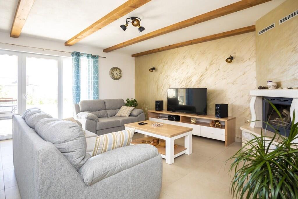 Stueetage: (Stue(enkeltsovesofa, Fjernsyn, pejs, klimaanlæg), spisestue(spisebord, klimaanlæg), guest toilet(, , toilet, håndvask, vaskemaskine, varme, føntørrer), drying room(, , toilet, håndvask, vaskemaskine, strygebræt, føntørrer)) På 1. etage: (soveværelse(, , dobbeltseng, Fjernsyn, klimaanlæg), soveværelse(, , dobbeltseng, Fjernsyn, klimaanlæg), soveværelse(, , dobbeltseng, køjeseng, køjeseng, Fjernsyn, klimaanlæg), badeværelse(, toilet, bruser, håndvask, varme, føntørrer), badeværelse(, toilet, bruser, håndvask, varme, føntørrer), badeværelse(, toilet, bruser, håndvask, varme, føntørrer)) , , , , , , Køkken(, , , spisebord, kakkelovn, elkedel, brødrister, brødrister, komfur, kaffemaskine, ovn, mikrobølgeovn, opvaskemaskine , køleskab, fryser, fryser), Internetadgang, Internetadgang, Førstehjælp, vaskemaskine, balkon(havemøbler, solstole), terrasse(, outdoor shower, Grill center, pejs, grill, havemøbler, solstole, swimmingpool, baldakin, Haveskur), parkering, strygebræt, strygejern, tørreskab