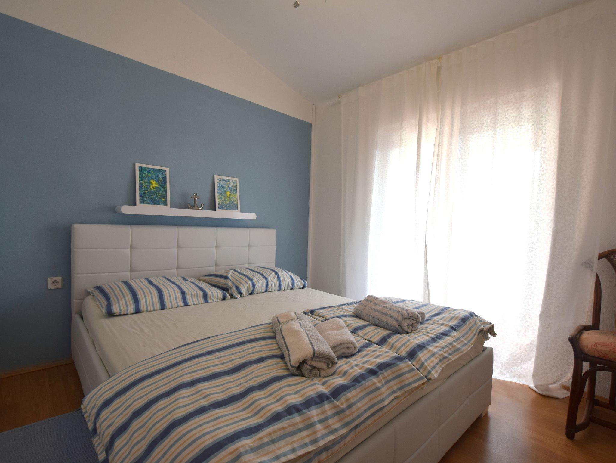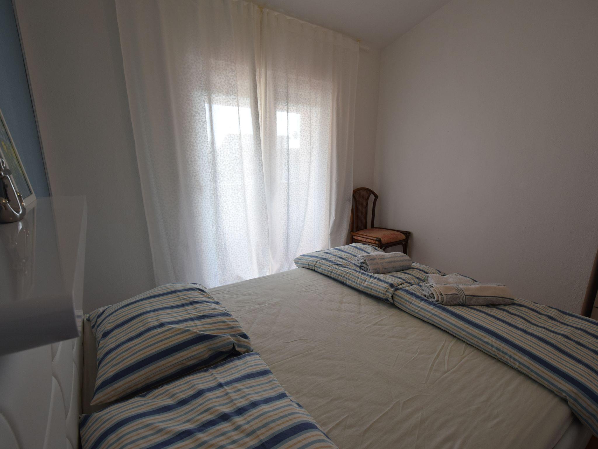 Ferienwohnung bietet Platz für 5 Gäste. Die Betten sind in Schlafzimmern, die es 2 gibt, und in Wohnzimmer, innerhalb einer Gesamtfläche von 54m2, angeordnet. Die Gäste haben eine eigene Terrasse zur Verfügung, auf der sie in warmen Sommernächten genießen können. Es ist erlaubt, Speisen auf dem Gemeinschafts-Grill vorzubereiten. In der Unterkunftseinheit besteht die Möglichkeit des Mitbringens von Haustieren gegen Aufpreis. IM PREIS INBEGRIFFEN: Kurtaxe, Endreinigung, Klimatisierung, Parkplatz, Internet. VERBINDLICHE ZUSÄTZLICHE KOSTEN: Aufzahlung für Kurzaufenthalte (prozentualer Zuschlag pro Nächtigungsanzahl: 30% - 1, 20% - 2, 10% - 3). UNVERBINDLICHE ZUSÄTZLICHE KOSTEN: Haustiere (10,00 € pro Nacht). Die Verfügbarkeit zusätzlicher Dienstleistungen in Ihrem reservierten Termin und die Preise derselben (falls nicht aufgeführt) müssen im Voraus überprüft werden. Zusätzliche Dienstleistungen die in der Zahlungsaufforderung nicht aufgeführt sind werden direkt beim Vermieter bezahlt, angenommen der Gast nutzt auch diese.