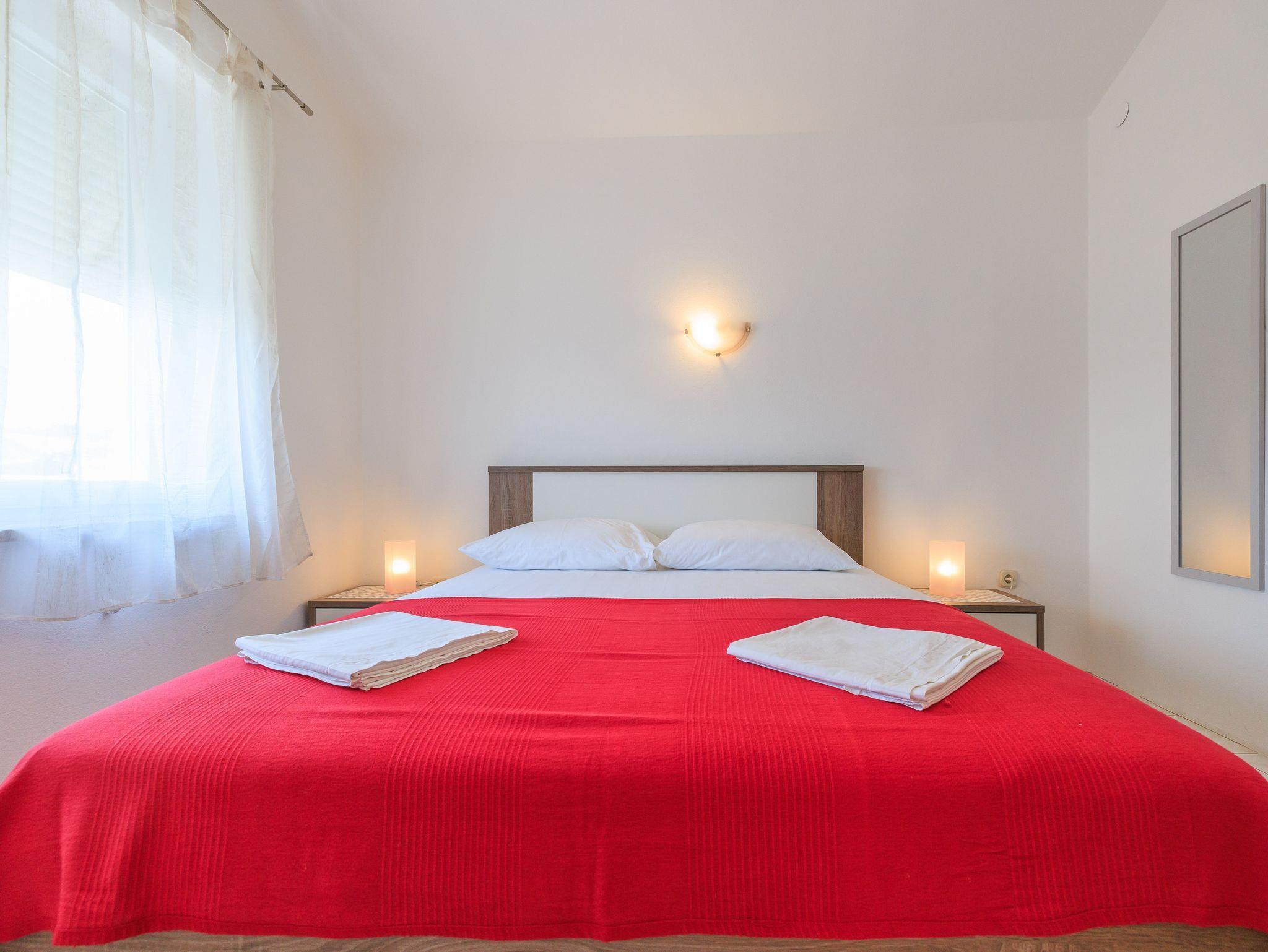 Ferienwohnung bietet Platz für 2 Gäste. Die Betten sind in Schlafzimmern, die es 1 gibt, innerhalb einer Gesamtfläche von 45m2, angeordnet. Die Gäste haben eine eigene Terrasse zur Verfügung, auf der sie in warmen Sommernächten genießen können. Das Apartment bietet Meerblick. Räume der gebuchten Unterkunftseinheit werden nicht in eine Ganze verbunden. IM PREIS INBEGRIFFEN: Kurtaxe, Endreinigung, Klimatisierung, Parkplatz, Internet. Die Verfügbarkeit zusätzlicher Dienstleistungen in Ihrem reservierten Termin und die Preise derselben (falls nicht aufgeführt) müssen im Voraus überprüft werden. Zusätzliche Dienstleistungen die in der Zahlungsaufforderung nicht aufgeführt sind werden direkt beim Vermieter bezahlt, angenommen der Gast nutzt auch diese. Ermäßigung auf den Grundpreis: Gratistag 14=13 (bei einem Aufenthalt von 14 Tagen oder mehr erhalten Sie einen Gratistag für den Aufenthalt bis 31.12.26).