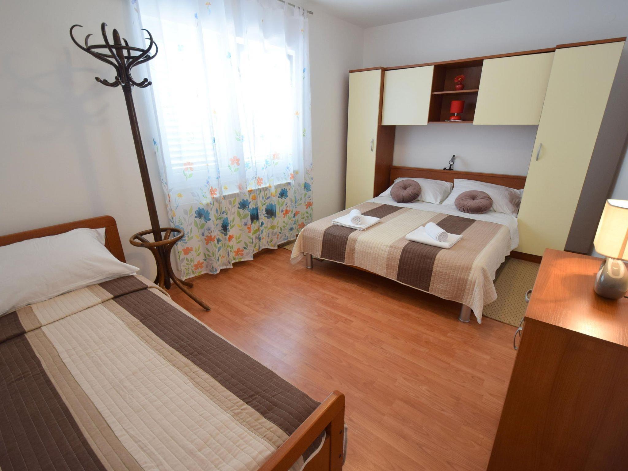 Ferienwohnung bietet Platz für 3 Gäste. Die Betten sind in Schlafzimmern, die es 1 gibt, innerhalb einer Gesamtfläche von 42m2, angeordnet. Die Gäste haben eine eigene Terrasse zur Verfügung, auf der sie in warmen Sommernächten genießen können. Es ist erlaubt, Speisen auf dem Gemeinschafts-Grill vorzubereiten. IM PREIS INBEGRIFFEN: Kurtaxe, Endreinigung, Klimatisierung, Zentralheizung, Parkplatz, Internet, Bügeleisen. VERBINDLICHE ZUSÄTZLICHE KOSTEN: Aufzahlung für Kurzaufenthalte (prozentualer Zuschlag pro Nächtigungsanzahl: 30% - 1, 20% - 2, 10% - 3). Die Verfügbarkeit zusätzlicher Dienstleistungen in Ihrem reservierten Termin und die Preise derselben (falls nicht aufgeführt) müssen im Voraus überprüft werden. Zusätzliche Dienstleistungen die in der Zahlungsaufforderung nicht aufgeführt sind werden direkt beim Vermieter bezahlt, angenommen der Gast nutzt auch diese.