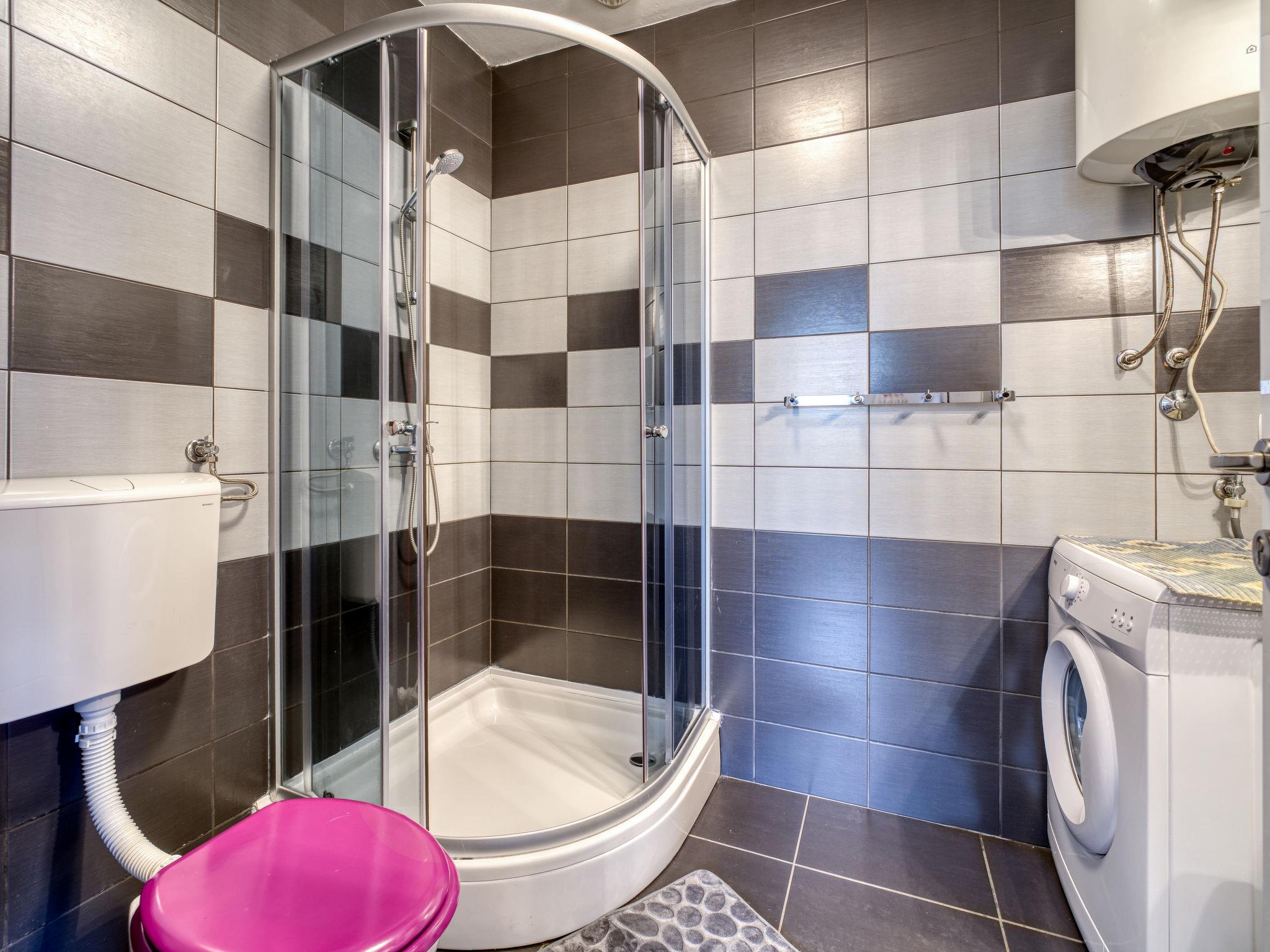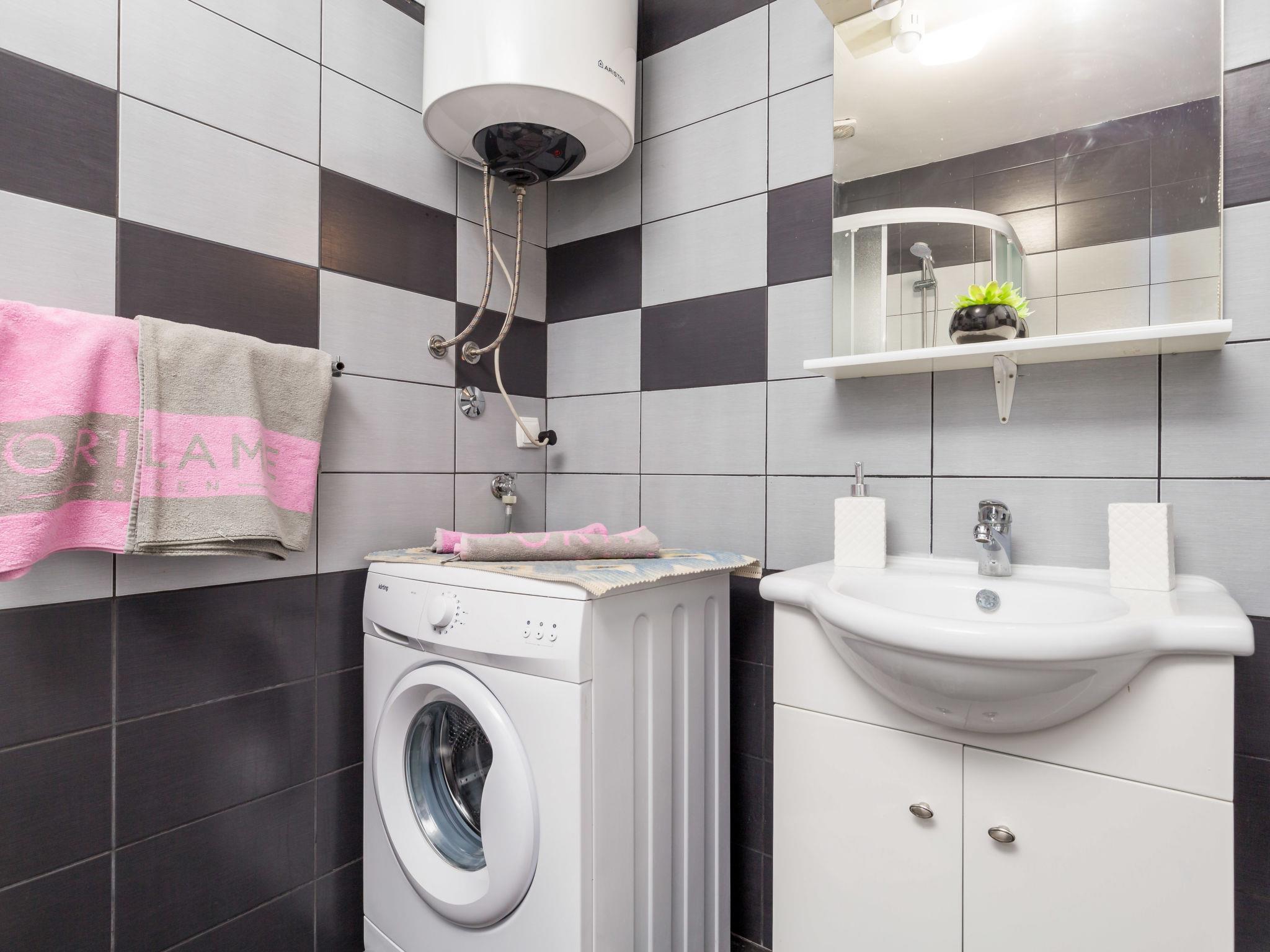 "Radmila 1", 2-room apartment 45 m2, on the ground floor. Living/dining room (2 x 90 cm, length 180 cm). Exit to the terrace. 1 room with 1 french bed (180 cm, length 200 cm). Exit to the terrace. Open kitchen (4 hot plates, oven, kettle, microwave, freezer). Shower/WC. Forced-air heating. Terrace 15 m2, roofed. Terrace furniture, barbecue. Facilities: washing machine. Internet (WiFi). Please note: suitable for families. Non-smokers only. Maximum 2 pets/ dogs allowed. Fire extinguisher.