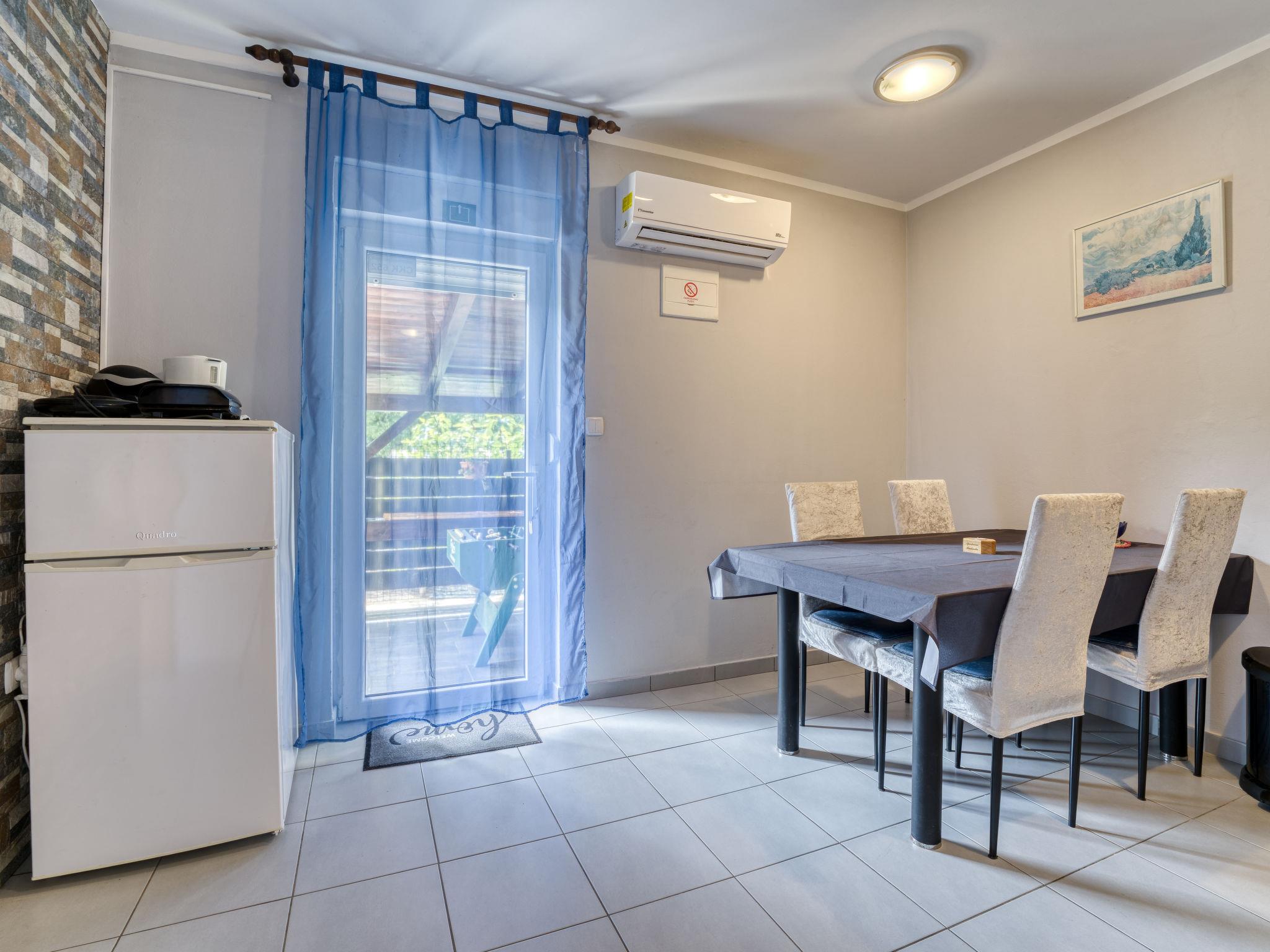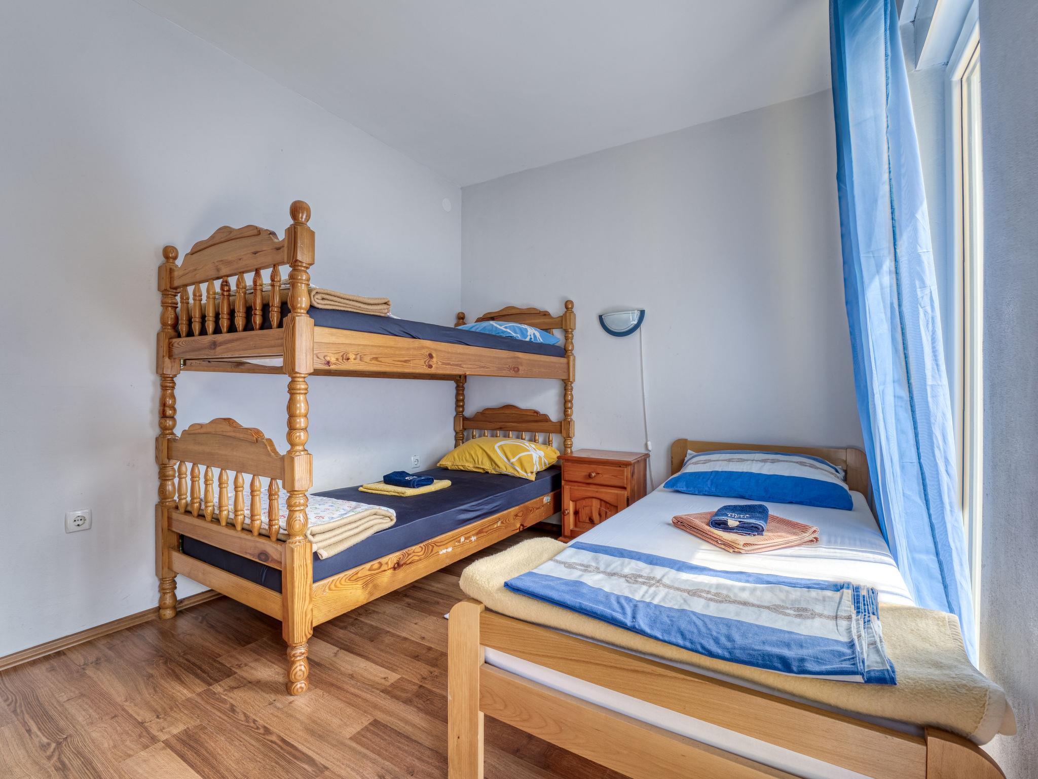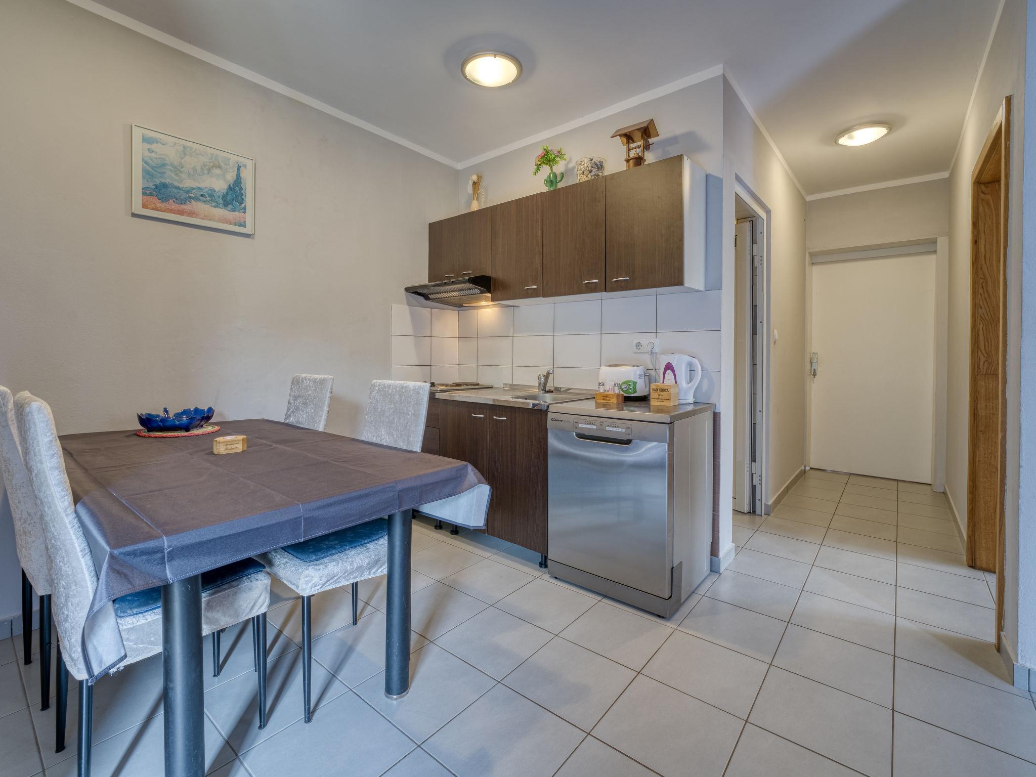 "Radmila 2", 2-room apartment 42 m2, on the ground floor. Dining room with air conditioning. Exit to the terrace. 1 room with 2 beds (90 cm, length 200 cm), 1 french bed (180 cm, length 200 cm), satellite TV (flat screen). Exit to the patio. Kitchenette (2 hot plates, dishwasher, toaster, kettle, microwave, freezer). Shower/WC. Forced-air heating. Small terrace 10 m2, roofed. Terrace furniture. Facilities: Internet (WiFi). Please note: suitable for families. Non-smokers only. Maximum 2 pets/ dogs allowed. Fire extinguisher.