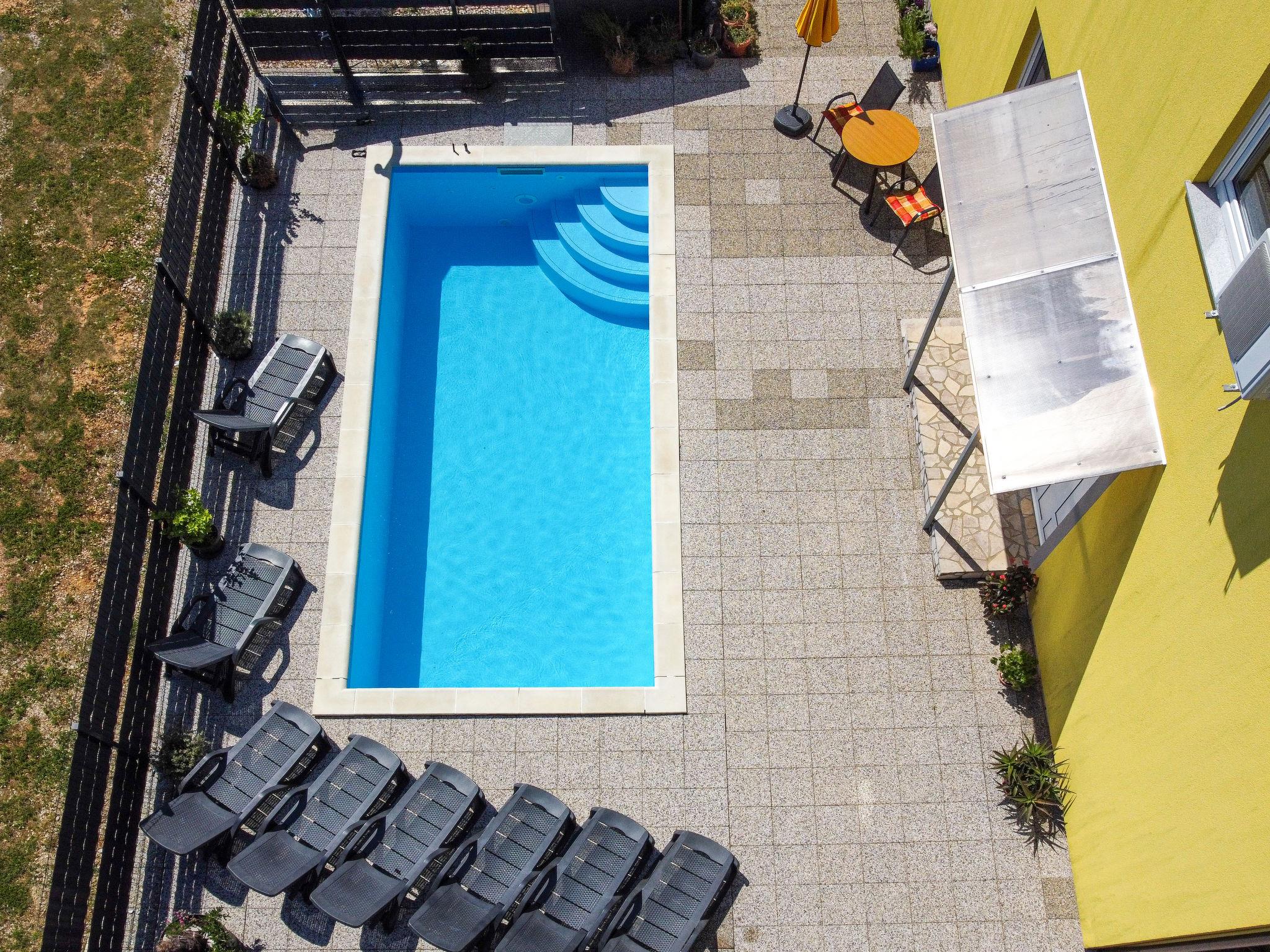 Semi-detached house "Radmila", 2 storeys. In the hamlet Županje 3 km from the centre of Šilo, 3000 km from the centre of Vrbnik, 3 km from the sea, 3 km from the beach, in a cul-de-sac, in the countryside. For shared use: property 300 m2 (fenced), swimming pool (3 x 7 m, depth 130 cm, seasonal availability: 01.May. - 01.Oct.). Pool maintenance by the owner/gardener. In the house: internet access, table football, trampoline. Parking at the house. Shop 1.4 km, restaurant 3 km, bus stop 3.5 km, pebble beach 4 km, shingle beach 3 km. Please note: the owner lives on the same property. Airfield 16 km from the property.