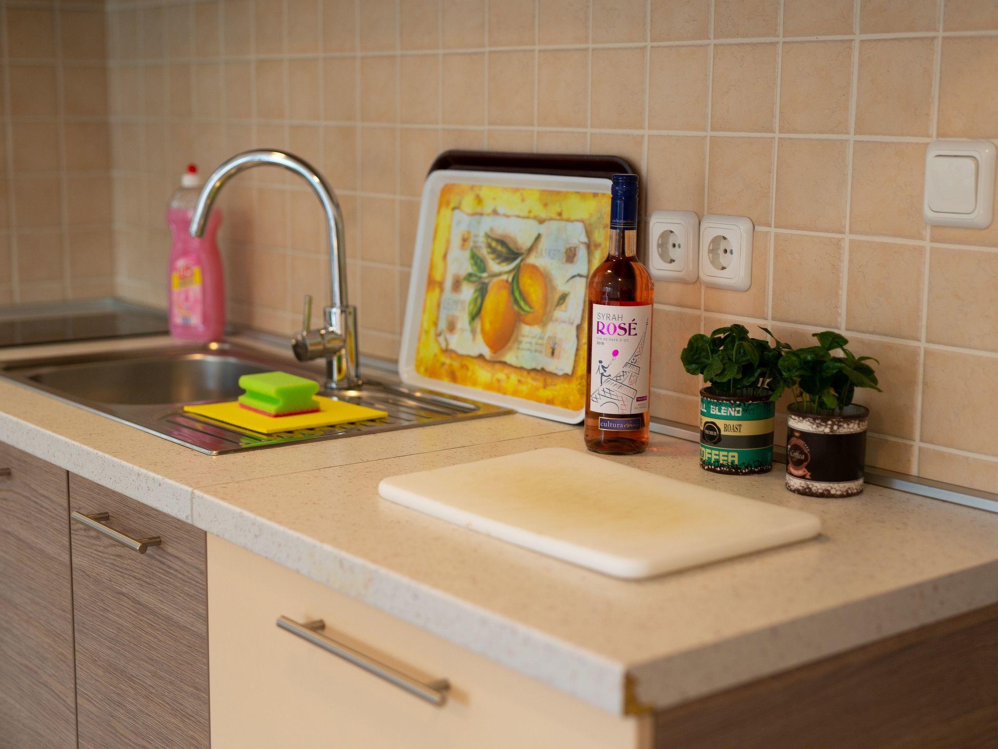 The apartment is equipped with a large double bed, bathroom with shower and dining room with a well-equipped kitchen which includes: a table for four persons, a fridge, a microwave, a coffee maker, a stove and an oven.