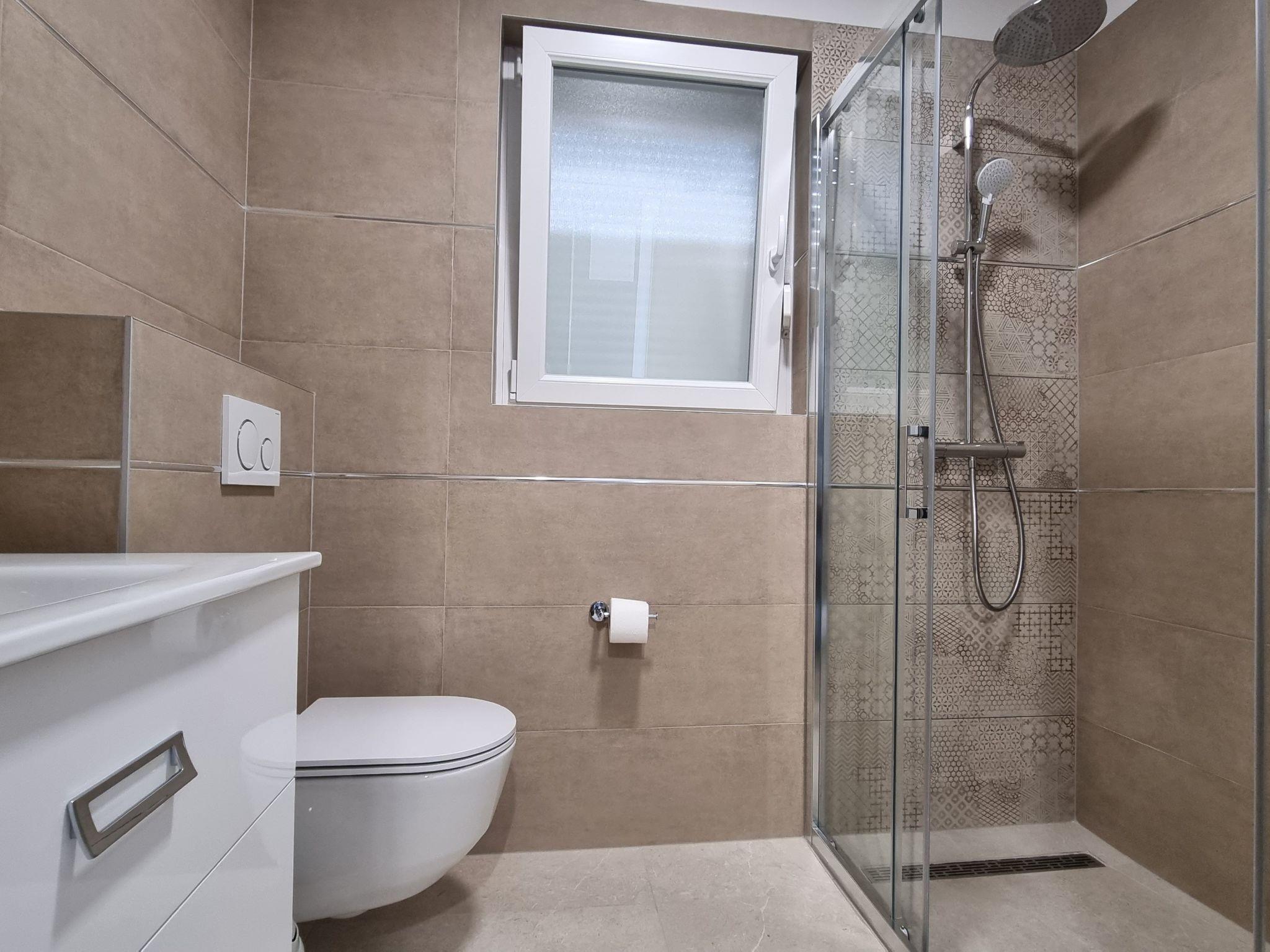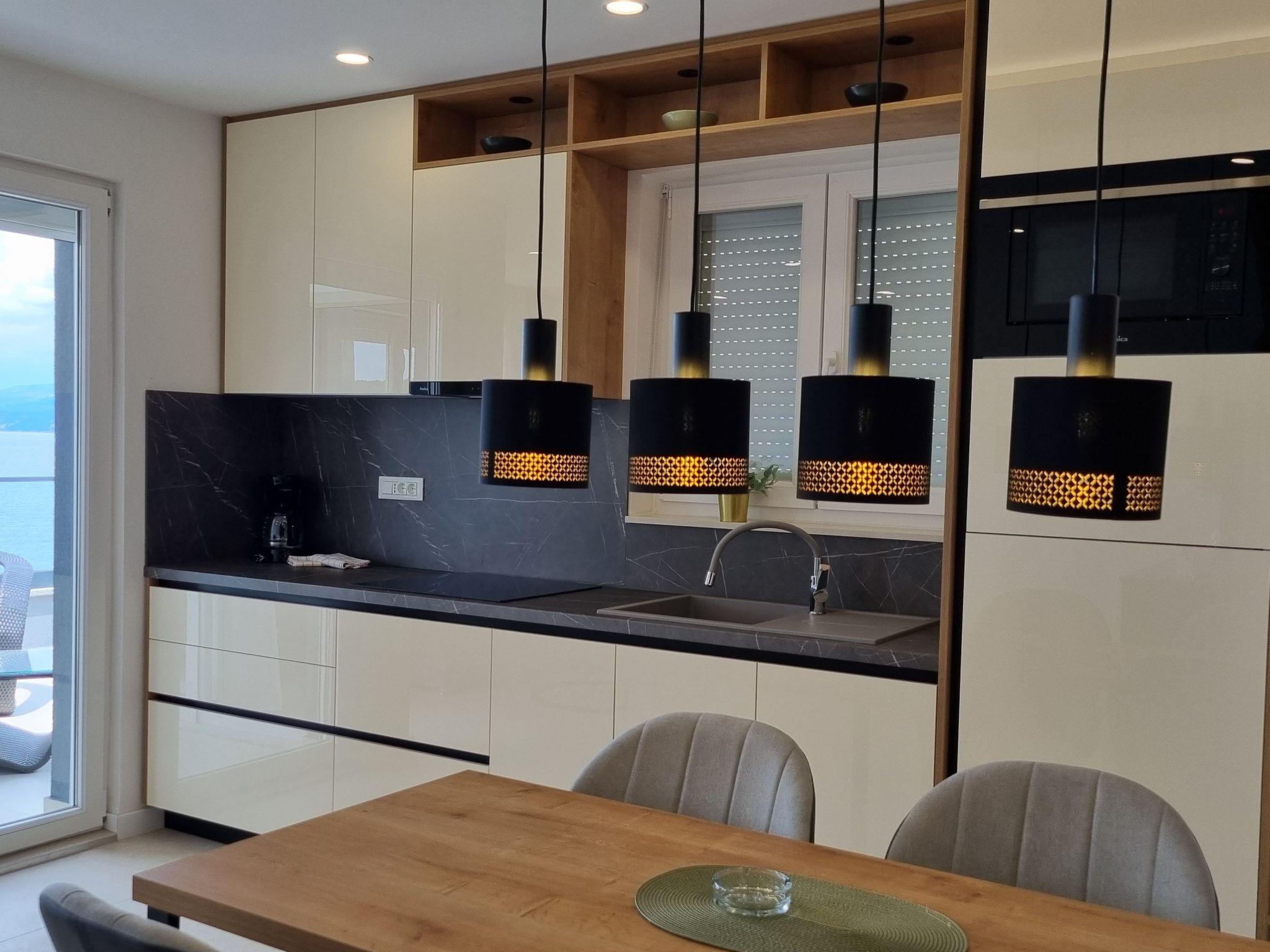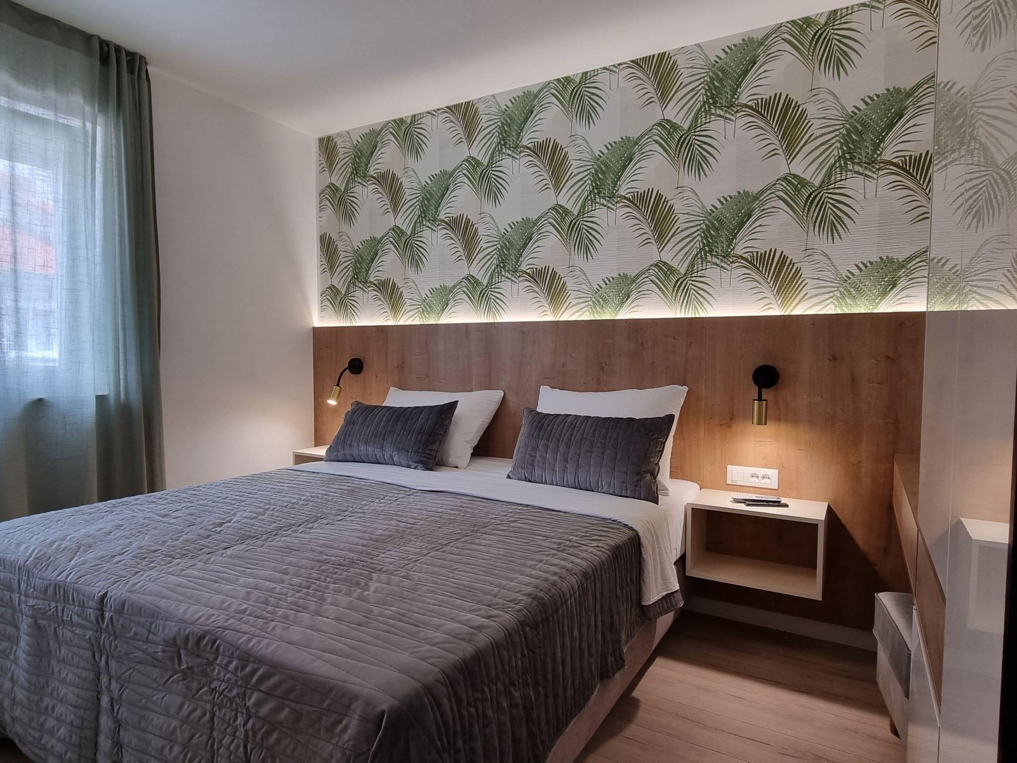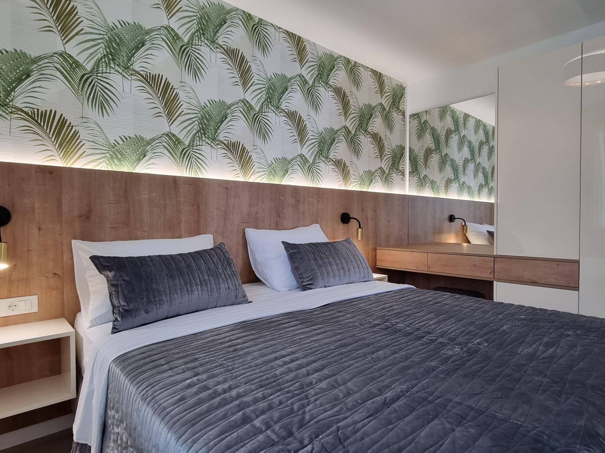 This luxurious and modern flat is located in a quiet apartment complex just 30 metres from the sea, surrounded by nature, many bays, pebble beaches and hiking trails. It offers a communal saltwater pool (36 m2), which is open from May to October and whose temperatures usually reach 20-26 °C. The flat is located on the 2nd floor and has a bedroom with a double bed, a modern kitchen with induction hob, fridge-freezer, kettle, coffee machine, toaster, microwave and dishwasher. The bathroom has a shower and toilet. The dining area and living room offer a cosy space with a sofa and smart TV, while free WiFi is available throughout the building.