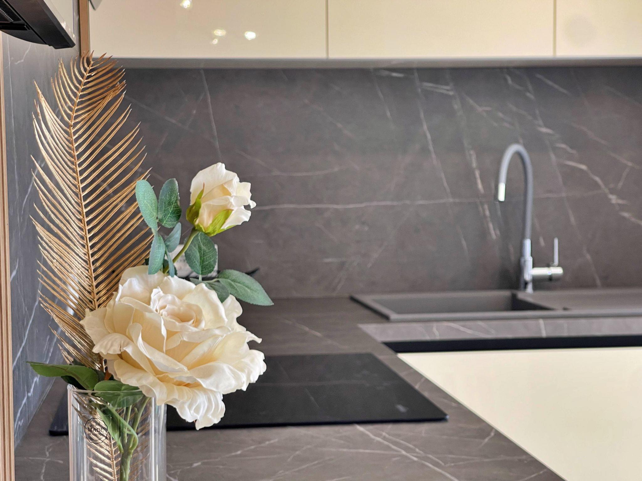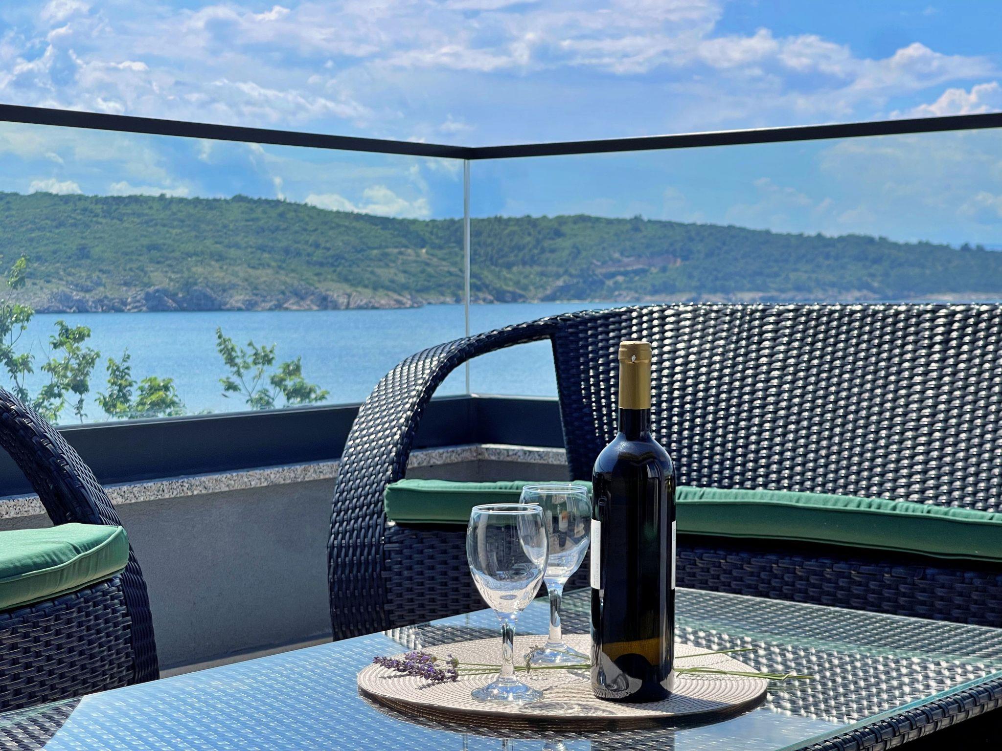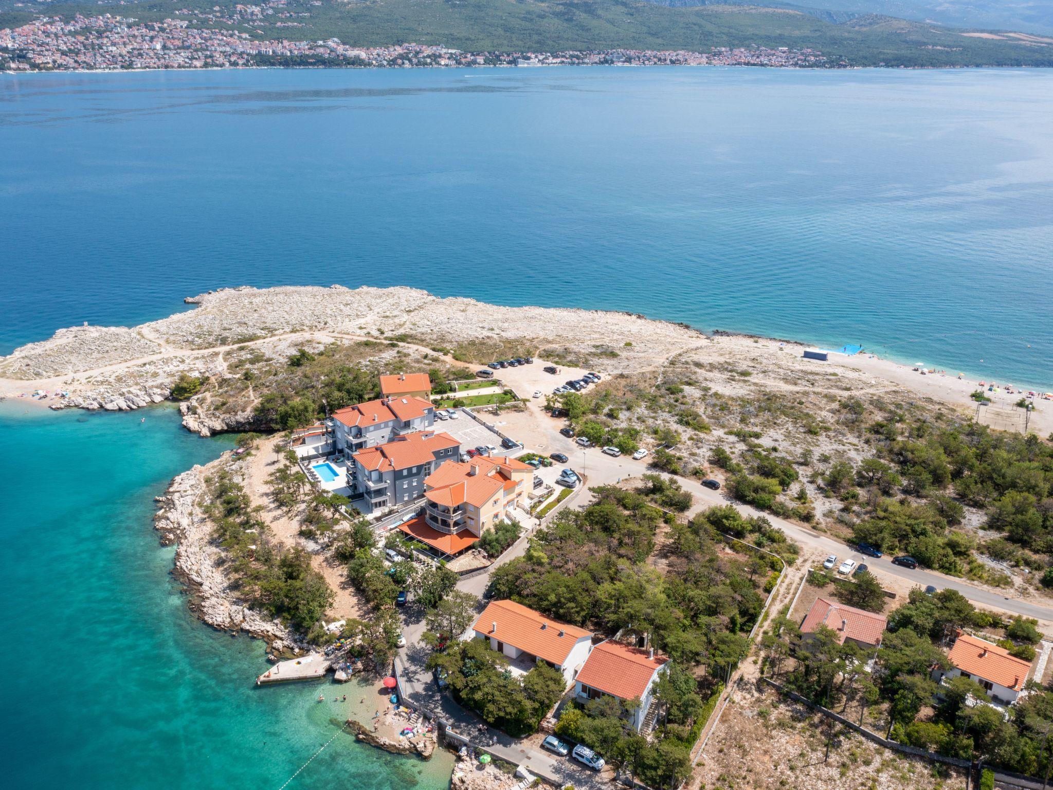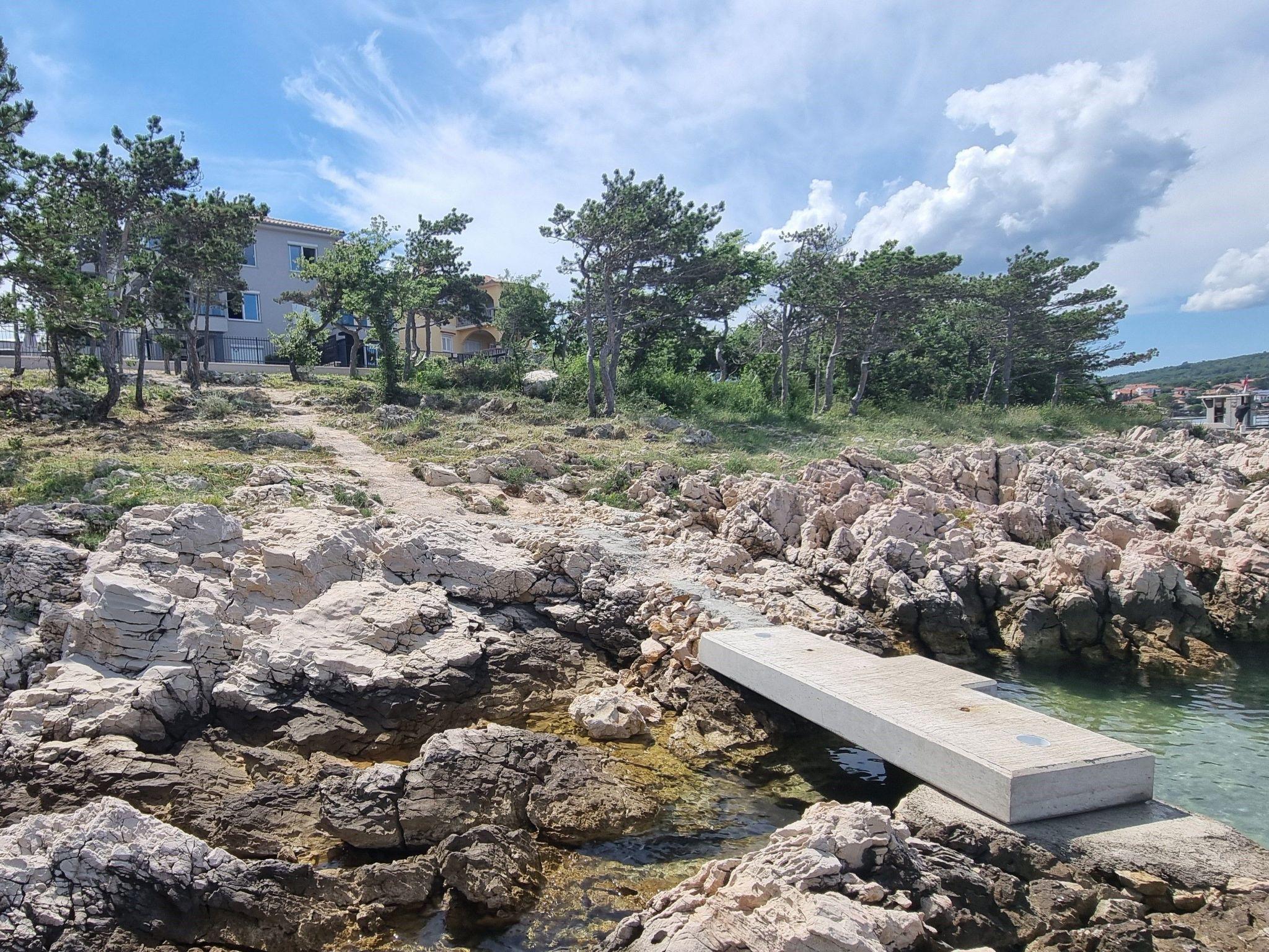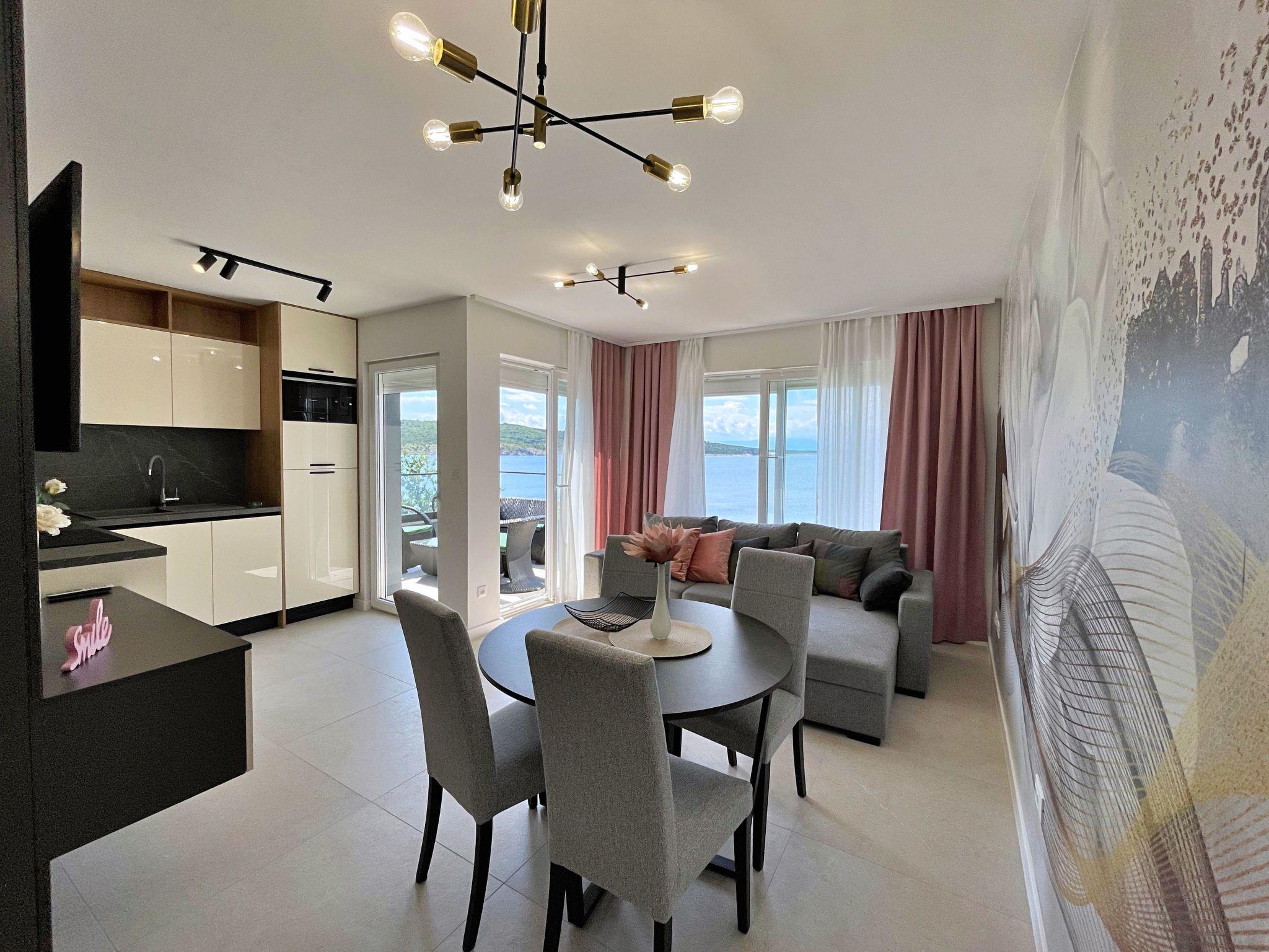 This luxurious, modern seafront flat is located in a quiet apartment complex just 30 metres from the sea, surrounded by nature, secluded coves, pebble beaches and hiking trails. It offers a communal saltwater pool (36 m2), which is open from May to October and whose temperatures usually reach 20-26 °C. The flat is located on the 2nd floor and has two bedrooms, each with a double bed, a modern kitchen with induction hob, fridge-freezer, kettle, coffee machine, toaster, microwave and dishwasher. The bathroom has a shower and toilet. The dining area and living room offer a cosy space with a sofa and smart TV, while free WiFi is available throughout the building.