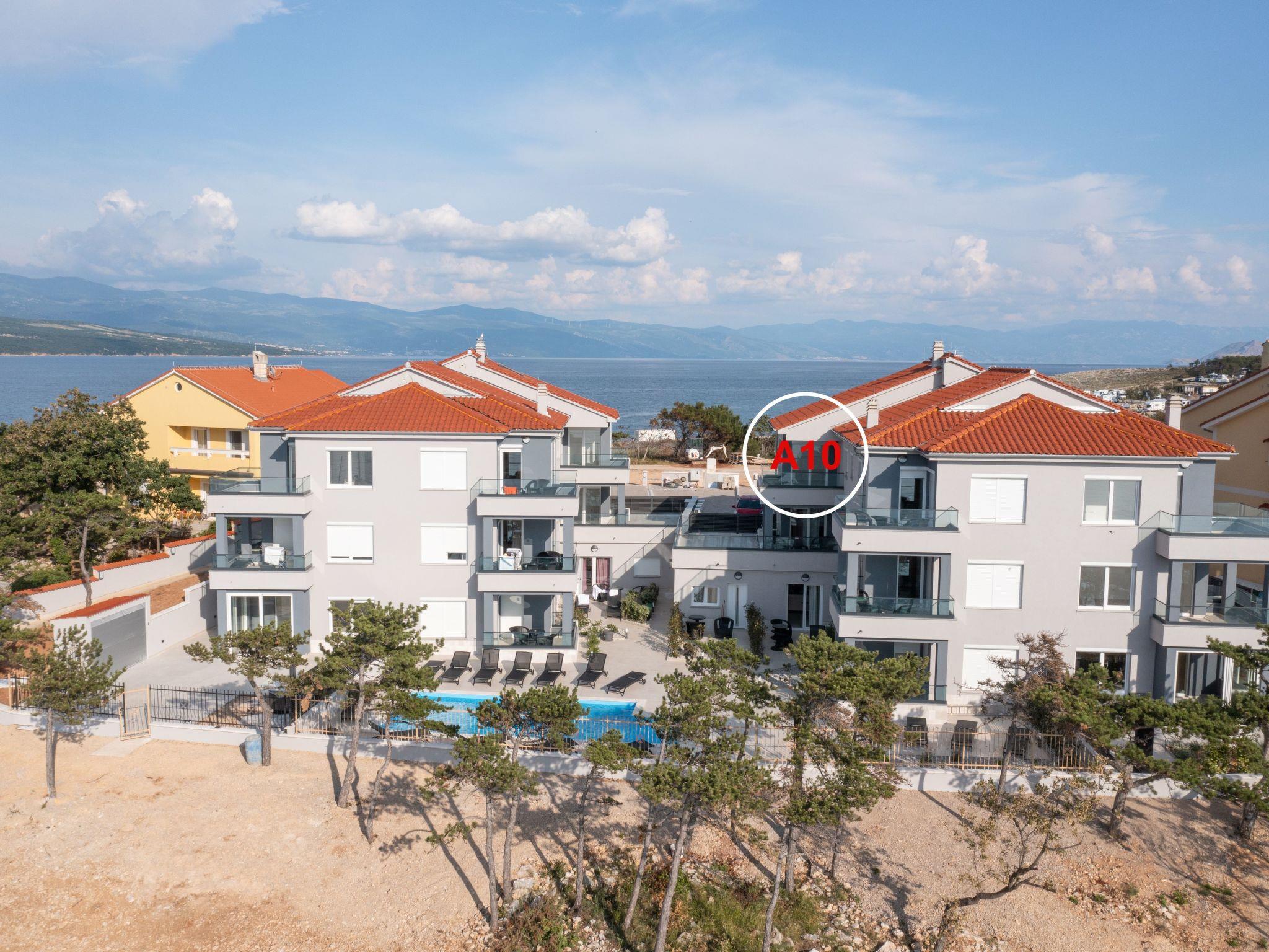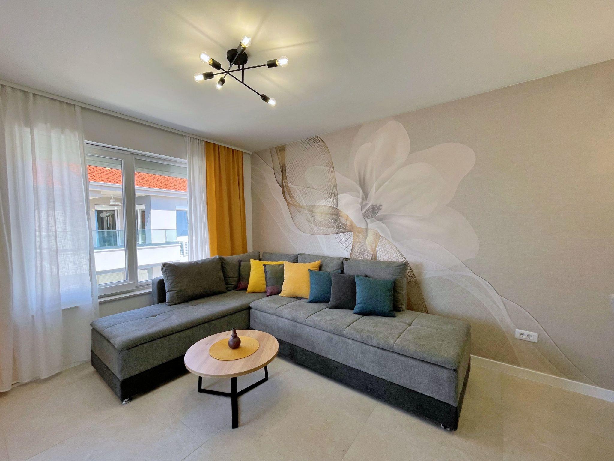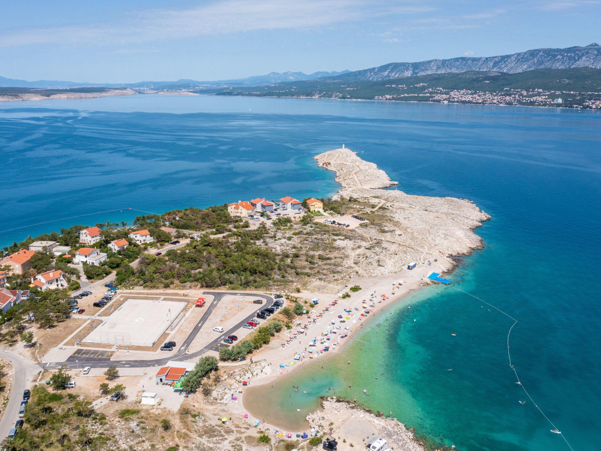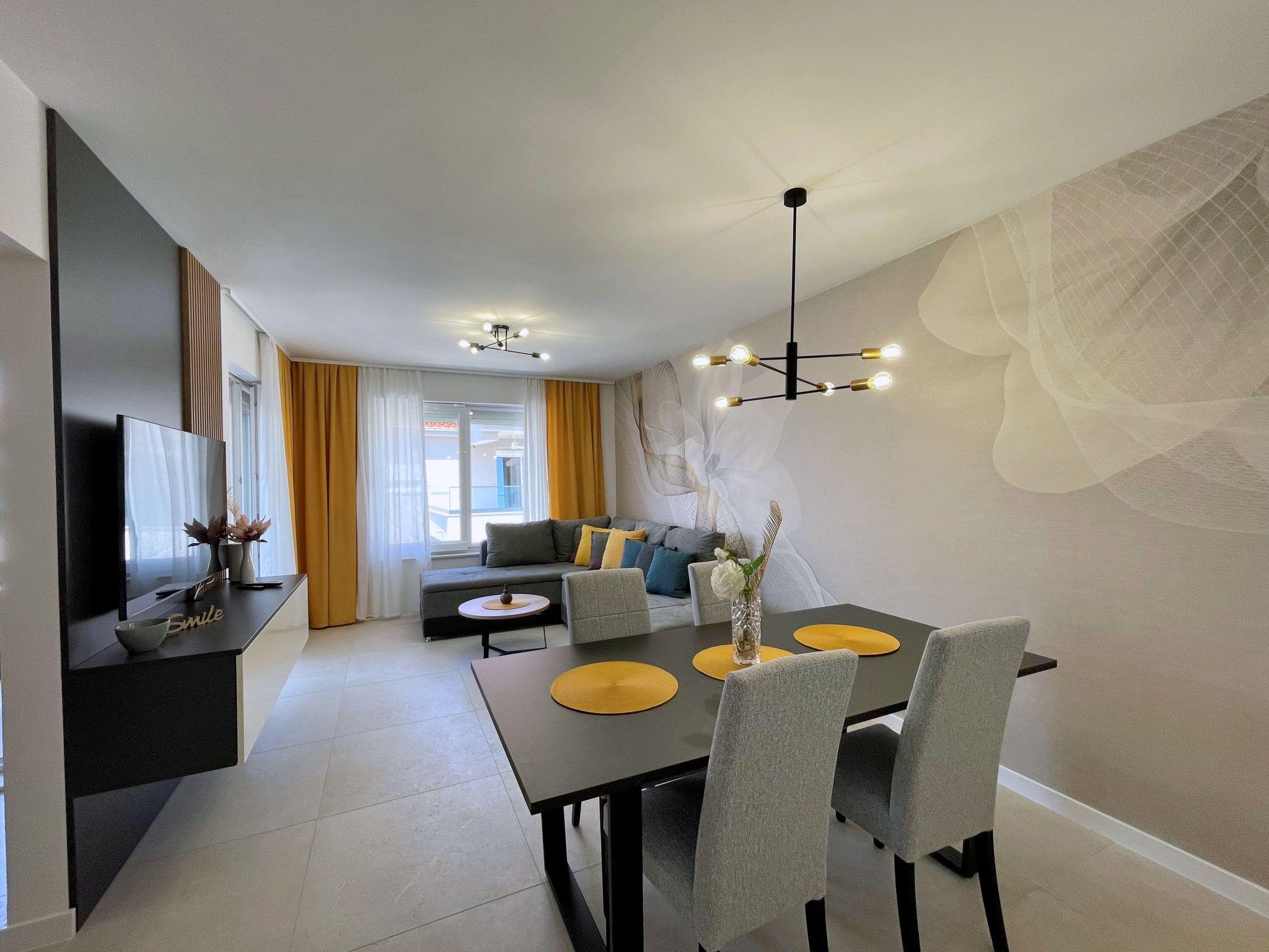 This luxurious, modern seafront flat is located in a quiet apartment complex just 30 metres from the sea, surrounded by nature, secluded coves, pebble beaches and hiking trails. It offers a communal saltwater pool (36 m2), which is open from May to October and whose temperatures usually reach 20-26 °C. The flat is located on the 2nd floor and has two bedrooms, each with a double bed, a modern kitchen with induction hob, fridge-freezer, kettle, coffee machine, toaster, microwave and dishwasher. The bathroom has a shower and toilet. The dining area and living room offer a cosy space with a sofa and smart TV, while free WiFi is available throughout the building.