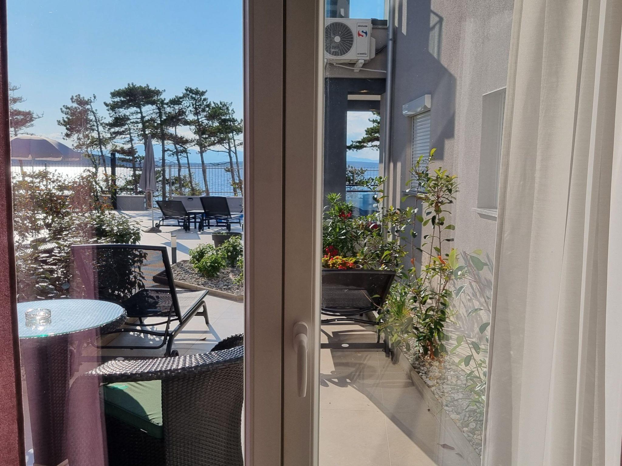 This luxurious and modern flat is located in a quiet apartment complex just 30 metres from the sea, surrounded by nature, many bays, pebble beaches and hiking trails. It offers a communal saltwater pool (36 m2), which is open from May to October and whose temperature usually reaches 20-26 °C. The flat is located on the ground floor and has a bedroom with a double bed, a modern kitchen with induction hob, fridge-freezer, kettle, coffee machine, toaster, microwave and dishwasher. The bathroom has a shower and toilet. The dining area and living room offer a cosy space with a sofa and smart TV, while free WiFi is available throughout.