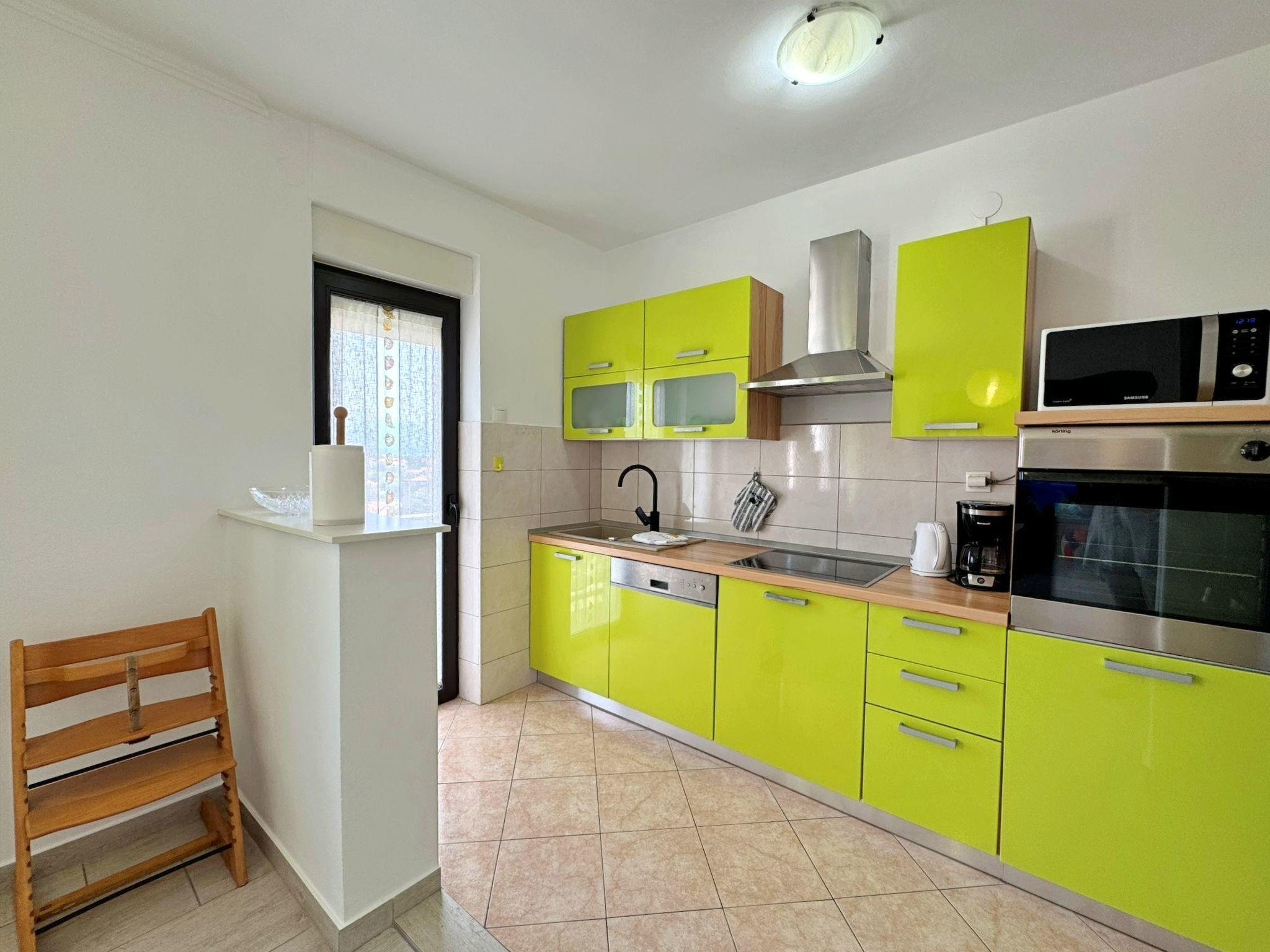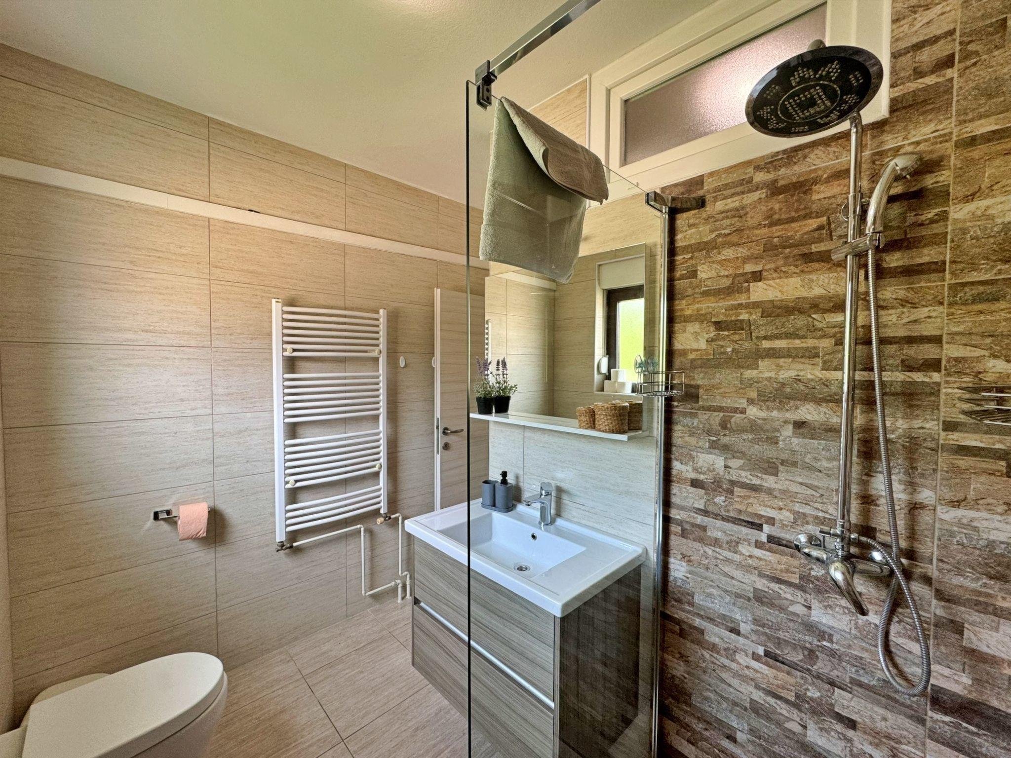 This flat is located just 260 metres from the sea, beach and town centre and is ideal for families. It has two bedrooms with double beds, a bathroom with shower and toilet and a bathroom with washbasin and toilet only. The well-equipped kitchen includes a ceramic hob with 4 hotplates, an oven, a dishwasher, a fridge with freezer compartment, a coffee machine, a kettle, a blender, a juicer and a toaster, as well as a spacious dining area. The living room has a pull-out sofa for two people, a smart TV, air conditioning and WiFi. Step out onto the 17 m2 balcony, which is equipped with garden furniture and an awning, and enjoy the breathtaking view of the sea and the city. Bed linen, towels, a baby cot and a high chair are at your disposal. A washing machine is available in a room on the ground floor and there is a barbecue in the backyard. This modern flat is fully equipped for an unforgettable family holiday!