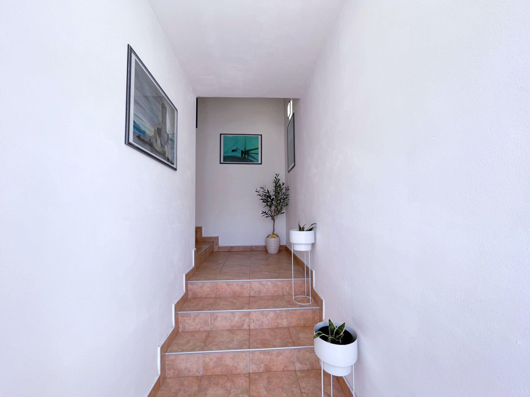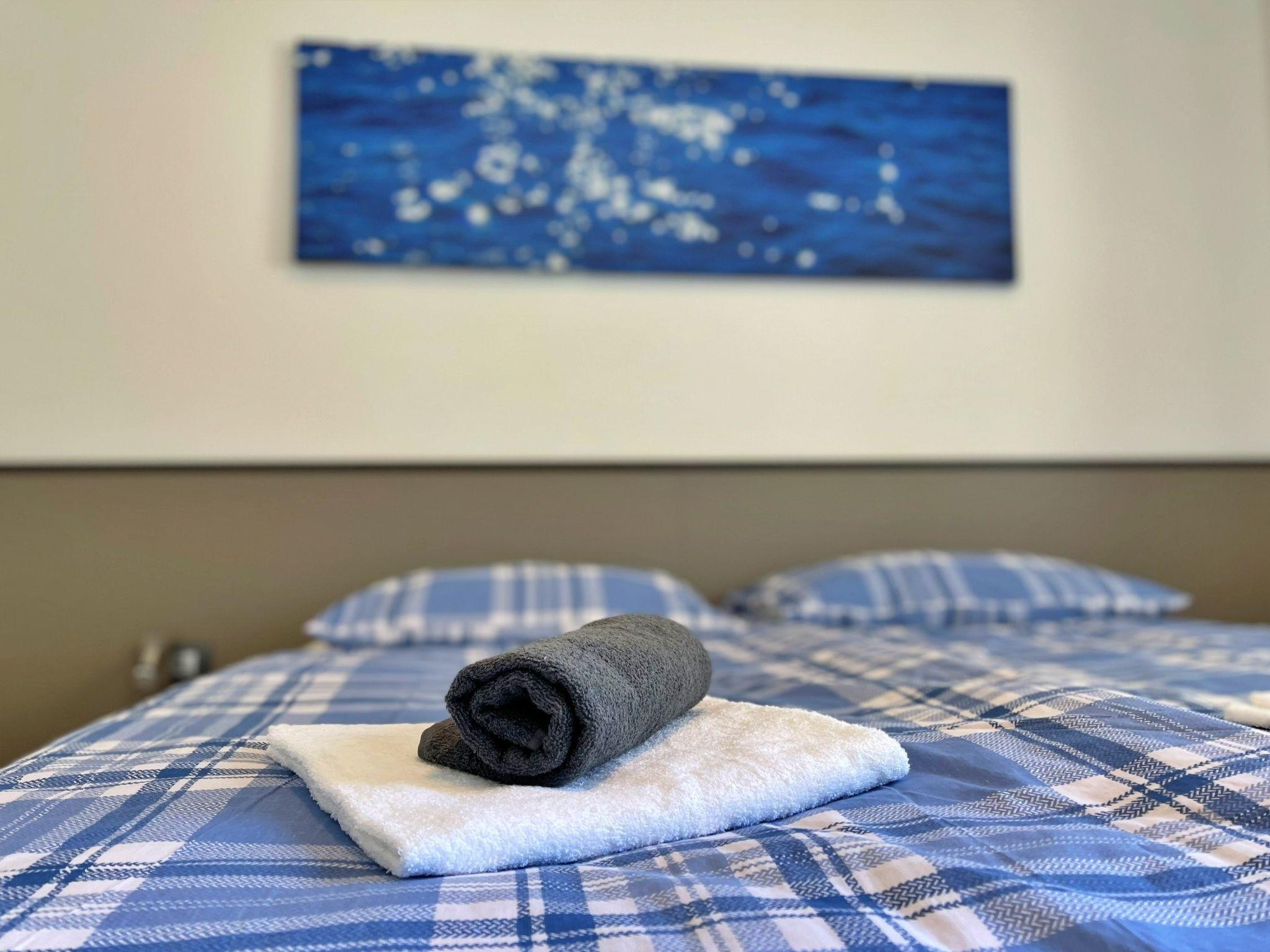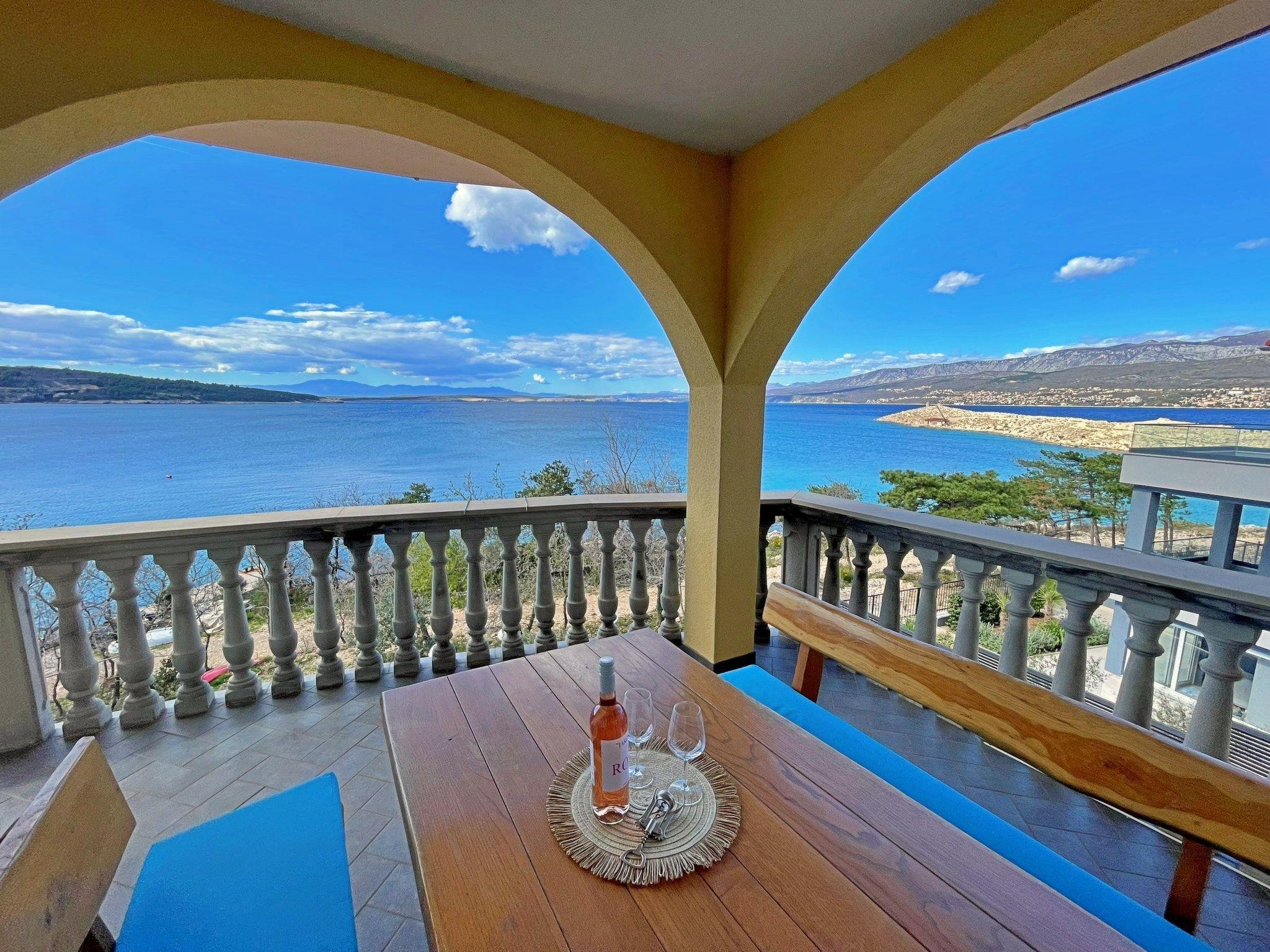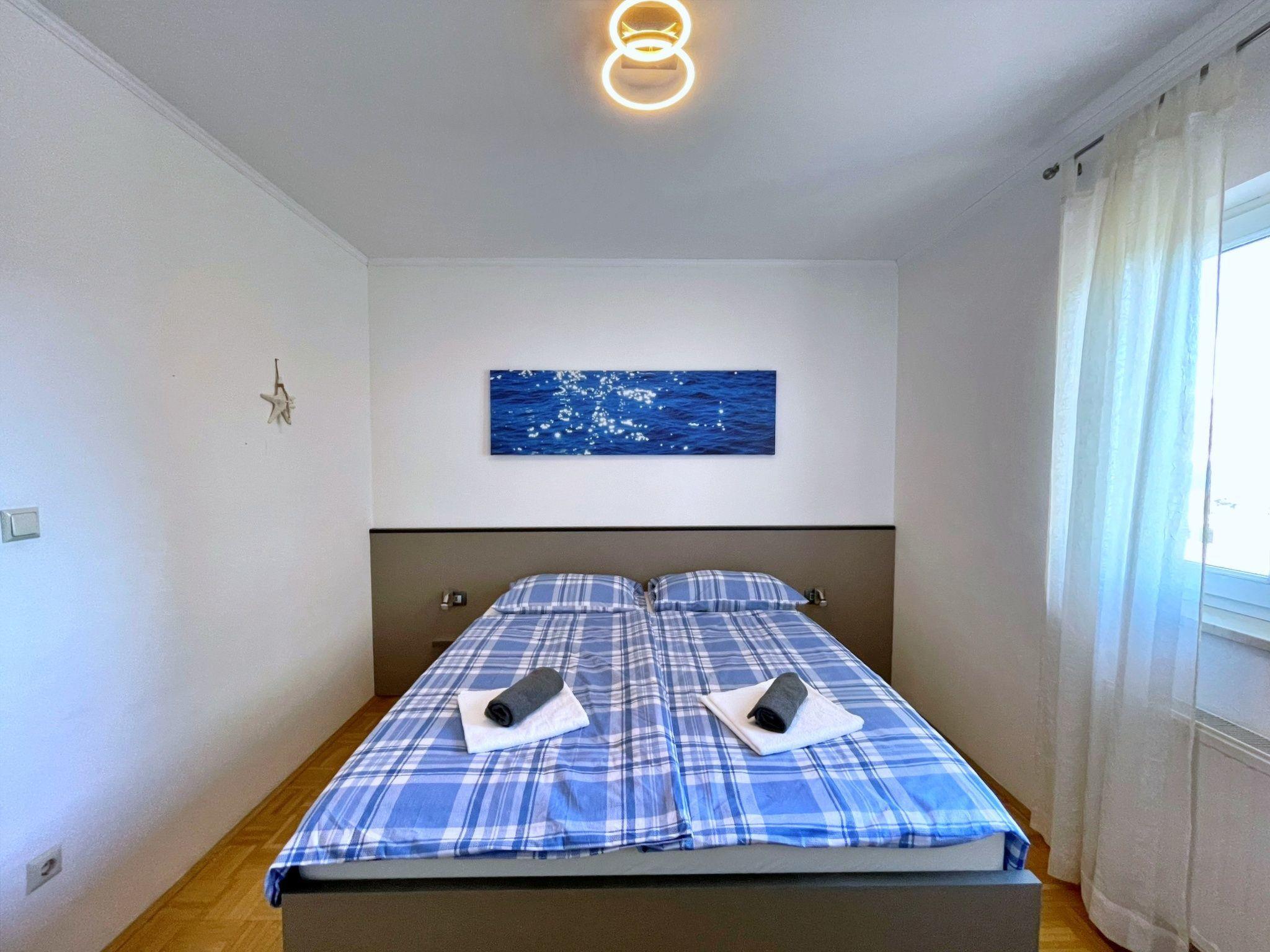 This flat, just 20 metres from the sea and beach, is located on the first floor and has two bedrooms - one with a double bed and the other with two single beds. The open-plan living, dining and kitchen area has a sofa bed, air conditioning and satellite/cable TV. The kitchen is equipped with an induction hob (4 hotplates), a fridge with freezer compartment, a coffee machine, a kettle and a toaster. The bathroom has a shower and toilet. Step out onto your private terrace (10 m2) with garden furniture and enjoy the breathtaking view of the blue sea. Bed linen, towels, free Wi-Fi and a car park are provided. A popular local bistro and diving centre are located directly on the ground floor, offering traditional Mediterranean cuisine and underwater adventures. At the diving centre you can arrange a dive from the boat or from the shore.