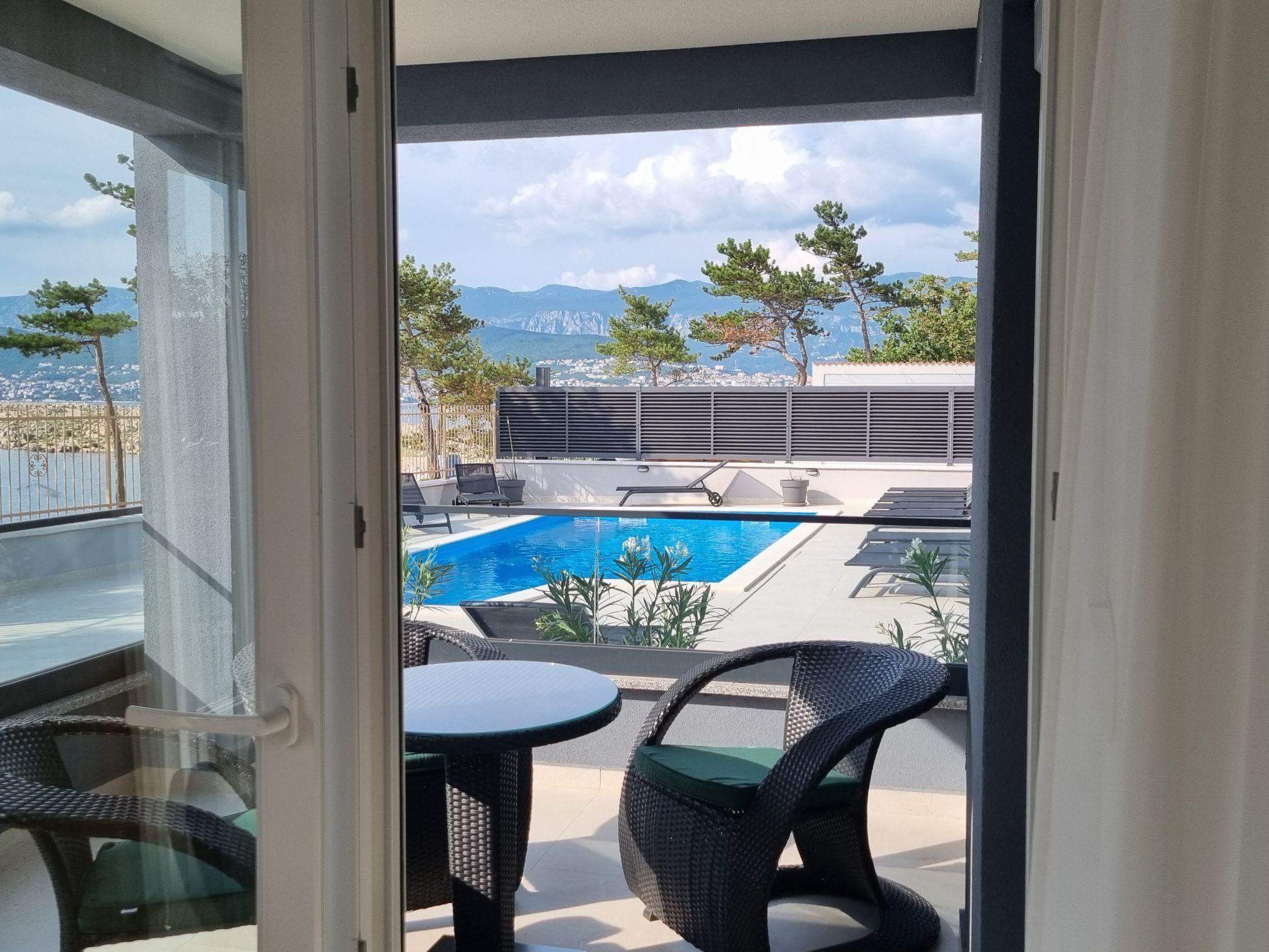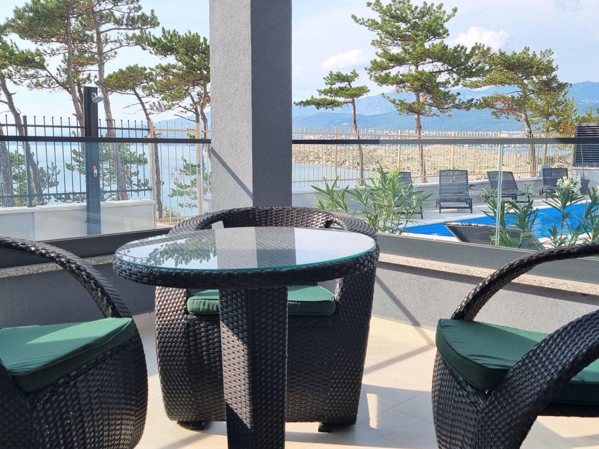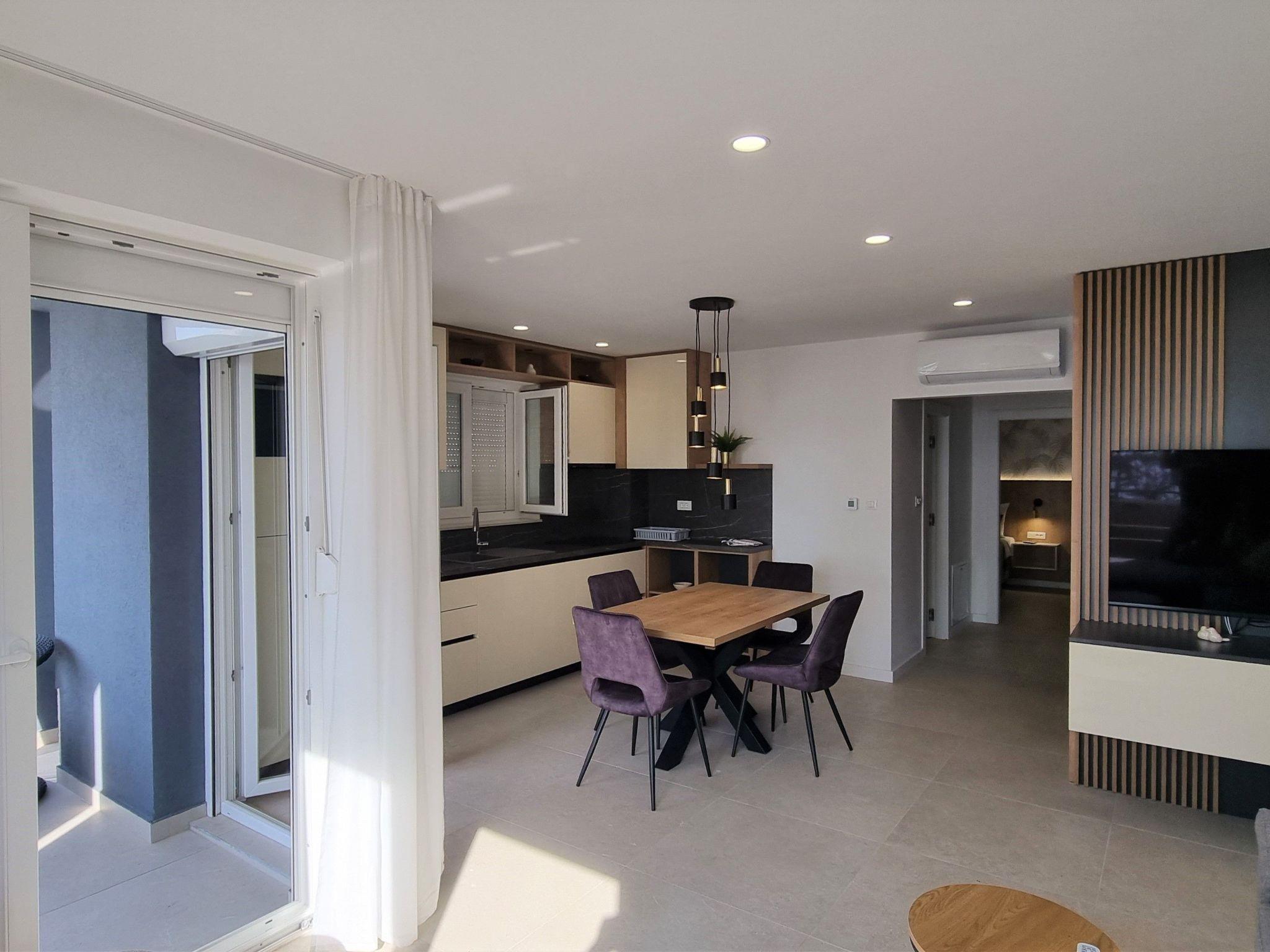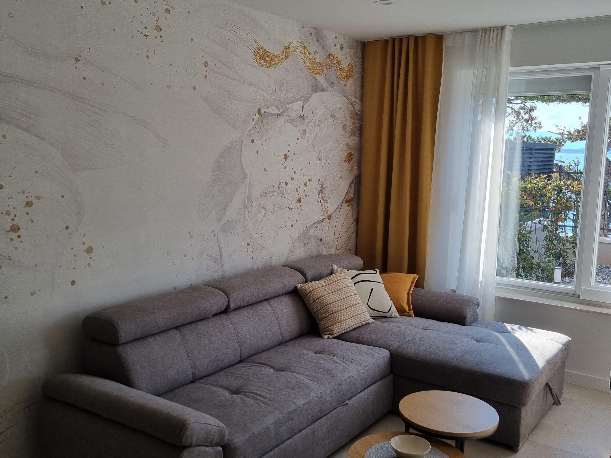 This luxurious and modern flat is located in a quiet apartment complex just 30 metres from the sea, surrounded by nature, many bays, pebble beaches and hiking trails. It offers a communal saltwater pool (36 m2), which is open from May to October and whose temperatures usually reach 20-26 °C. The flat is located on the ground floor and has a bedroom with a double bed, a modern kitchen with induction hob, fridge-freezer, kettle, coffee machine, toaster, microwave and dishwasher. The bathroom has a shower and toilet. The dining area and living room offer a cosy space with a sofa and smart TV, while free WiFi is available throughout the building.