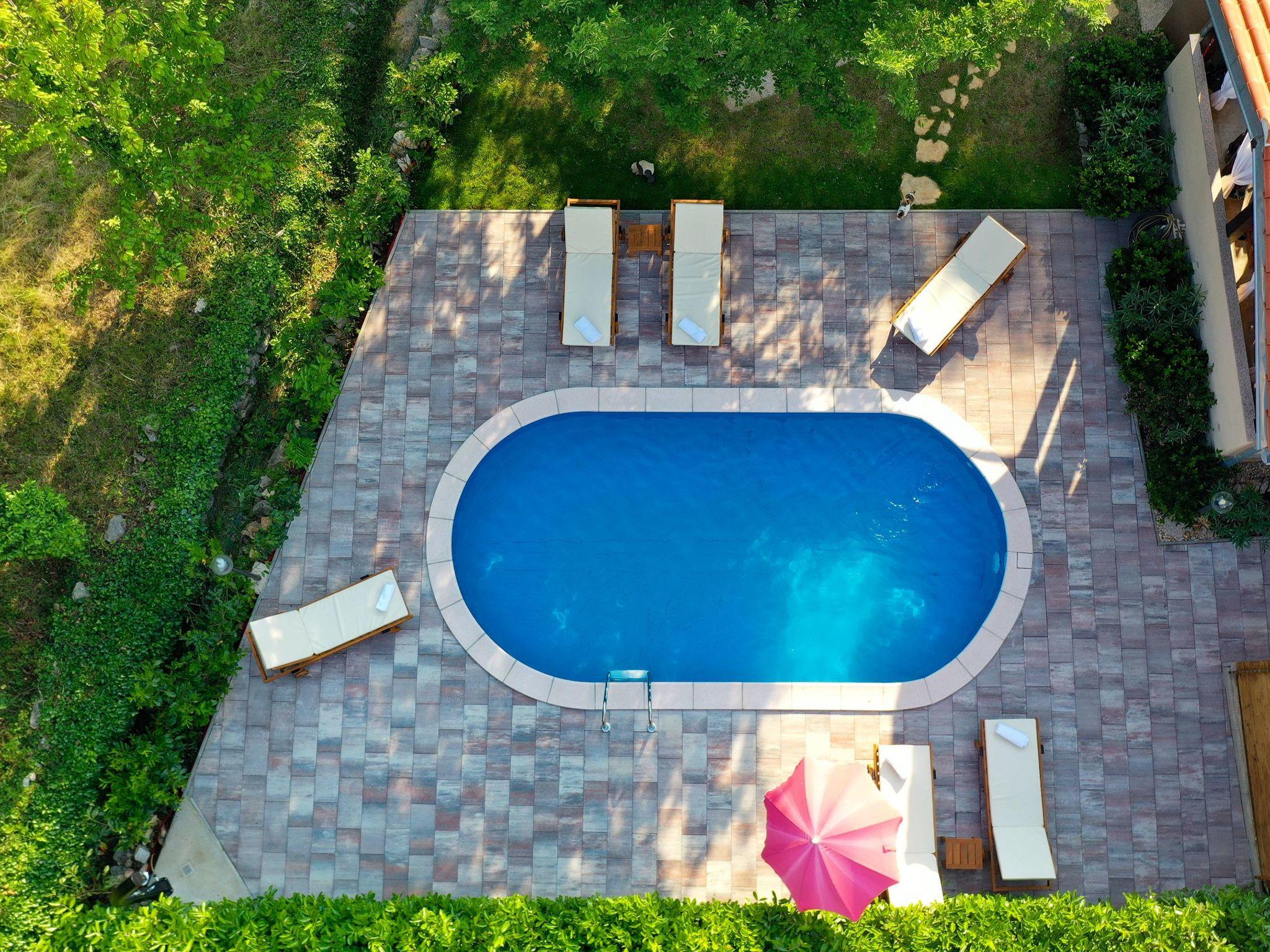 The outdoor area of this property exudes as much charm and utility as its interior. Beyond the heated pool, guests can enjoy a lovely garden on the ground floor, complete with a grill for delightful BBQ evenings. The convenience extends to parking, with a private space readily available by the house, ensuring peace of mind for those traveling by car.