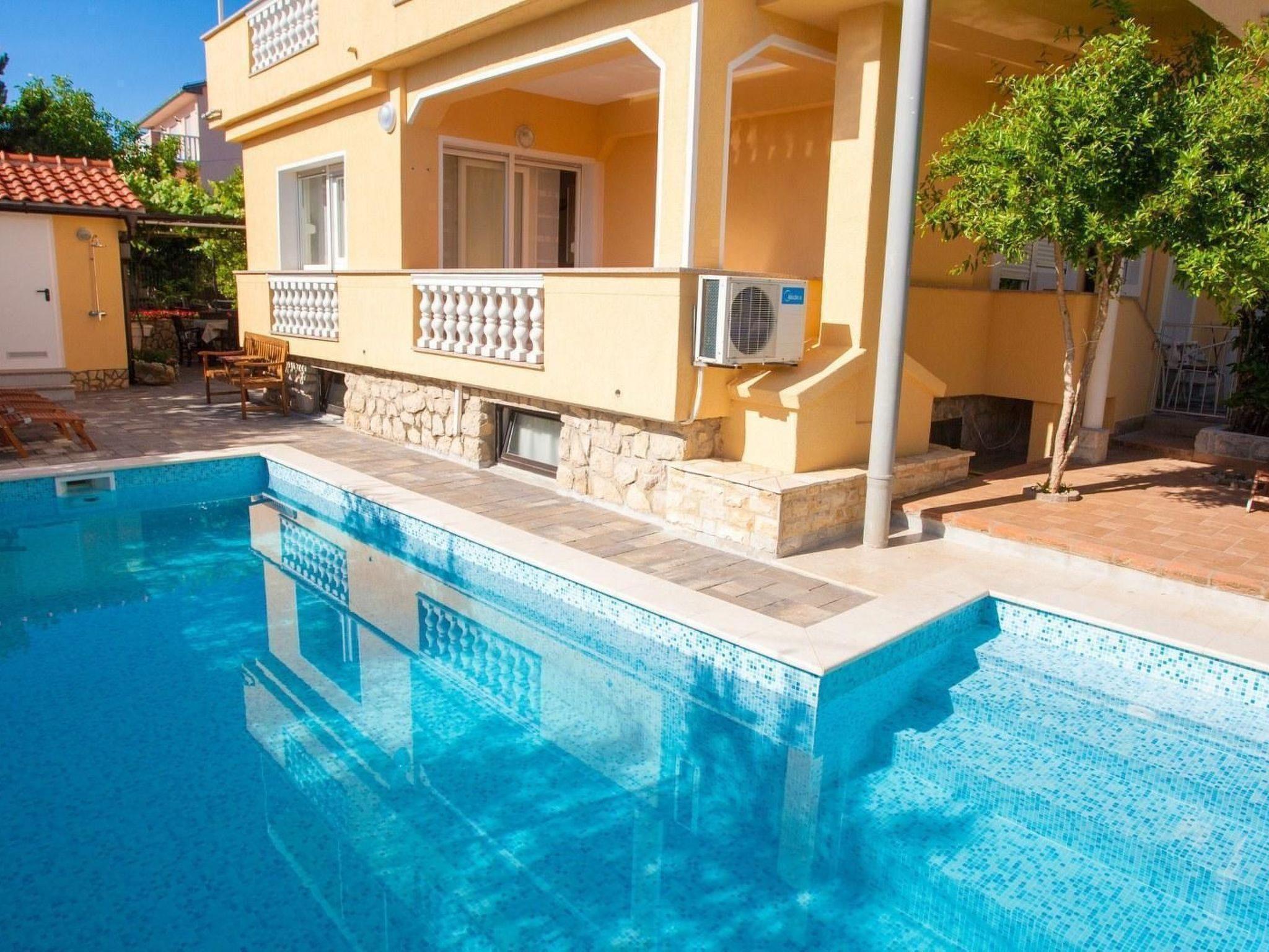 Each apartment has a balcony and free Wi-Fi , air-conditioned and have satellite TV . The apartments are equipped for self-catering , and the hosts are always at your disposal . All guests can enjoy at the outdoor swimming pool and sun terrace in the garden . The courtyard is completely enclosed by a fence and provides guests with privacy . In addition to the pool there is a barbecue , and the back yard playground and table tennis .