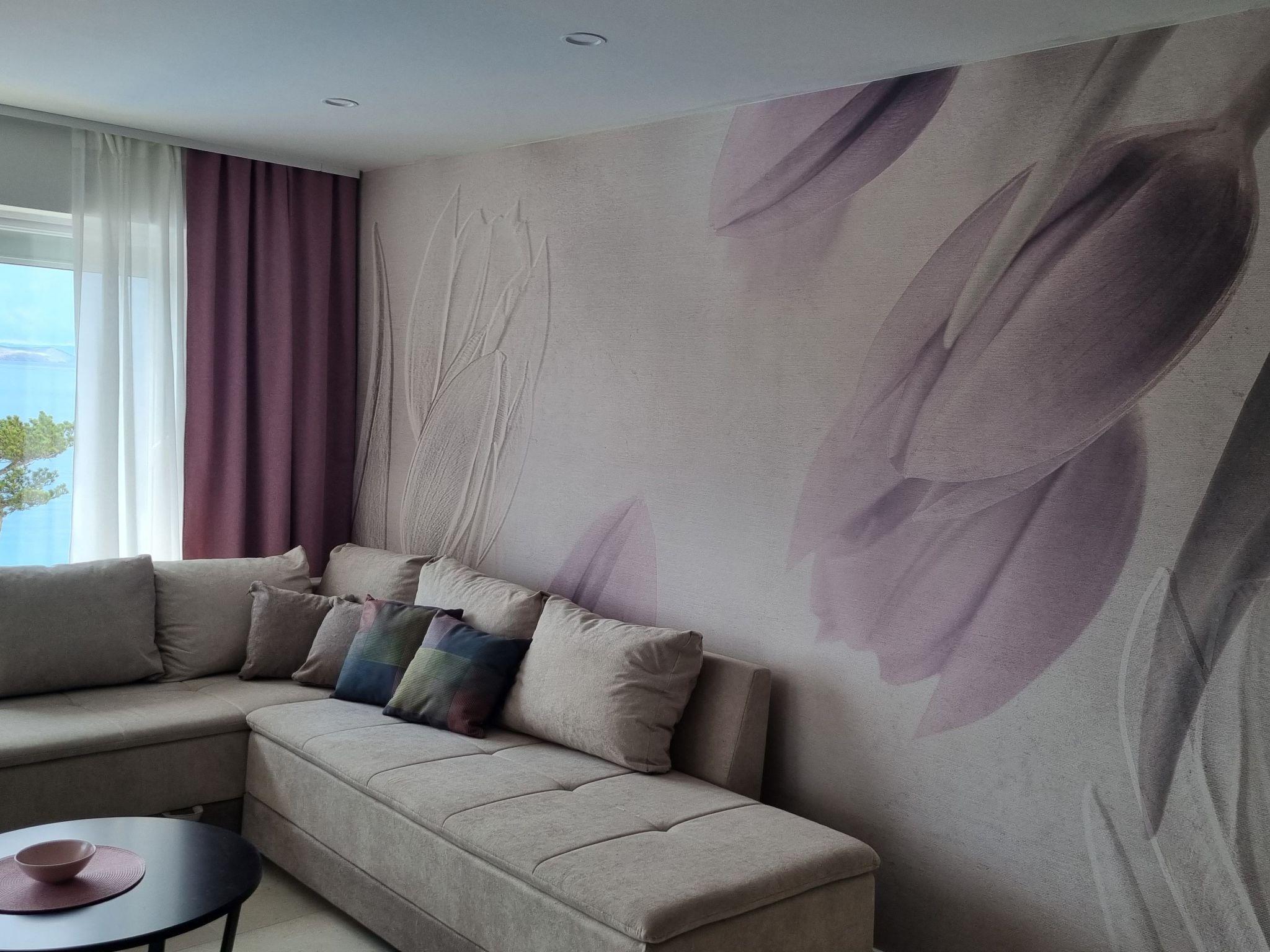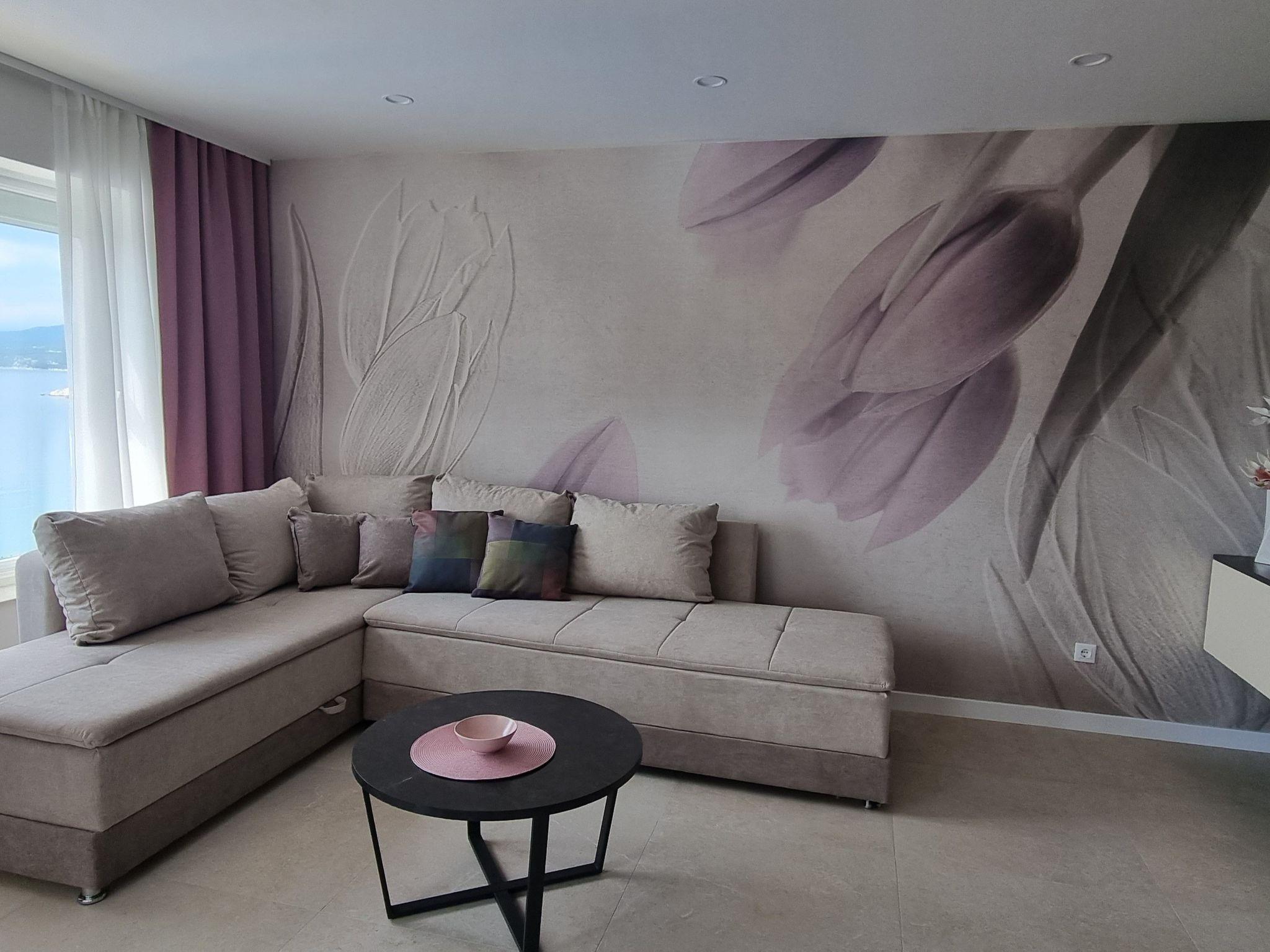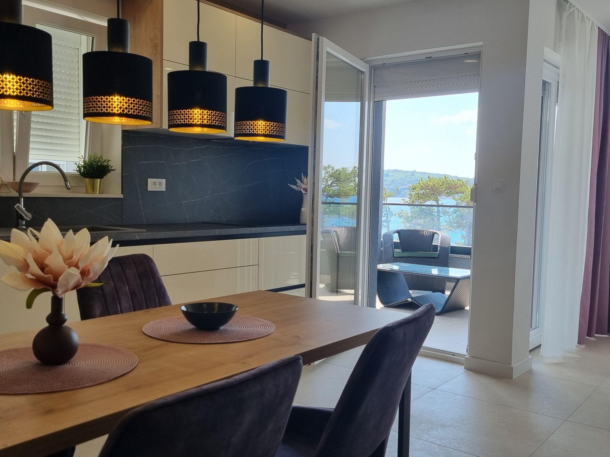 This luxurious and modern flat is located in a quiet apartment complex just 30 metres from the sea, surrounded by nature, many bays, pebble beaches and hiking trails. It offers a communal saltwater pool (36 m2), which is open from May to October and whose temperatures usually reach 20-26 °C. The flat is located on the 1st floor and has a bedroom with a double bed, a modern kitchen with induction hob, fridge-freezer, kettle, coffee machine, toaster, microwave and dishwasher. The bathroom has a shower and toilet. The dining area and living room offer a cosy space with a sofa and smart TV, while free WiFi is available throughout the building.