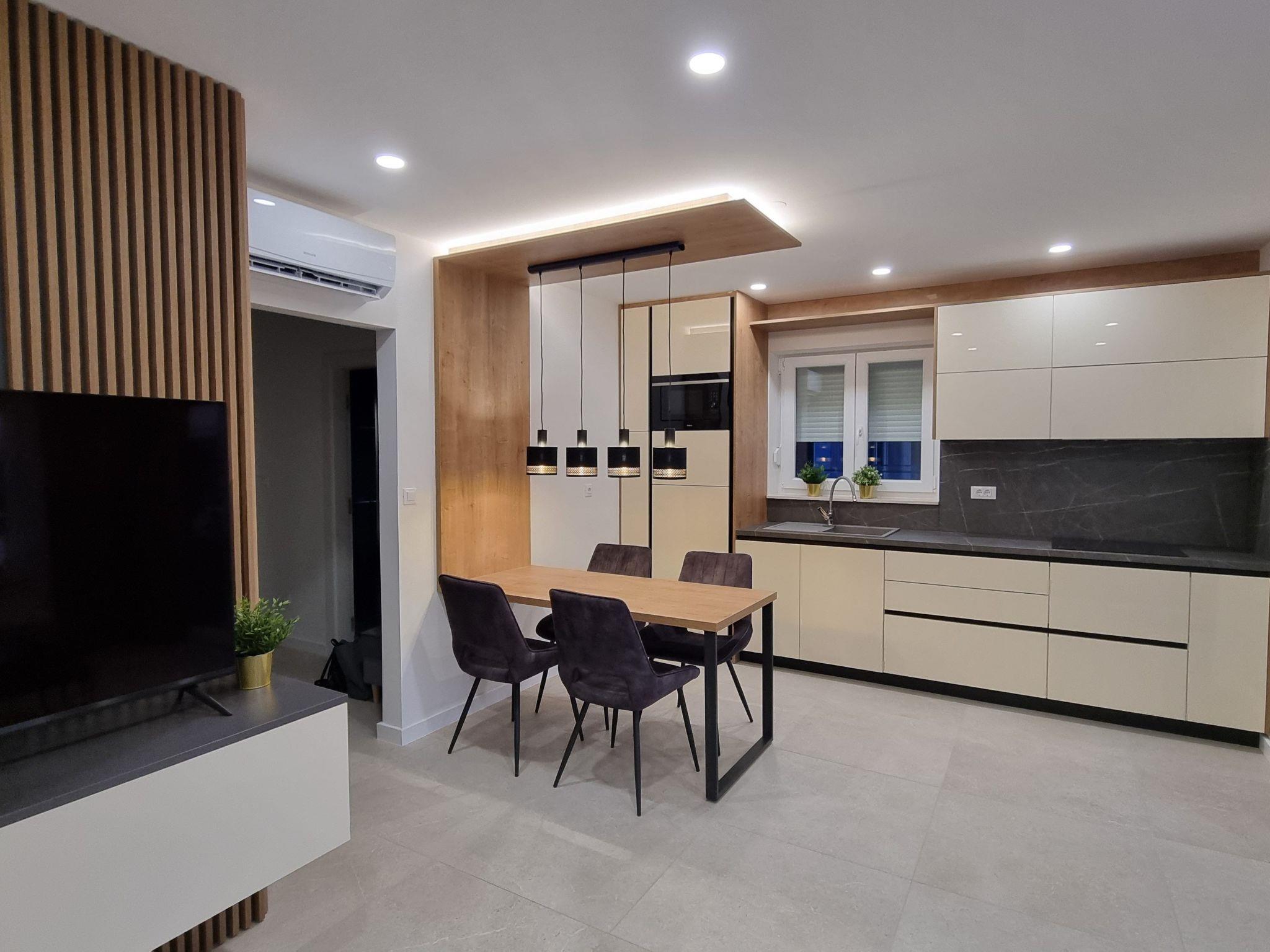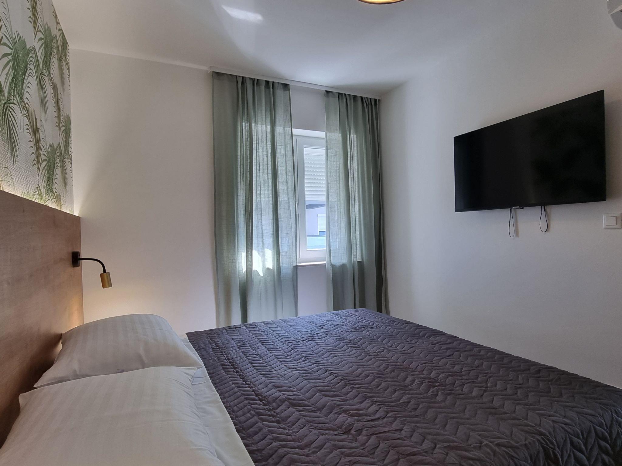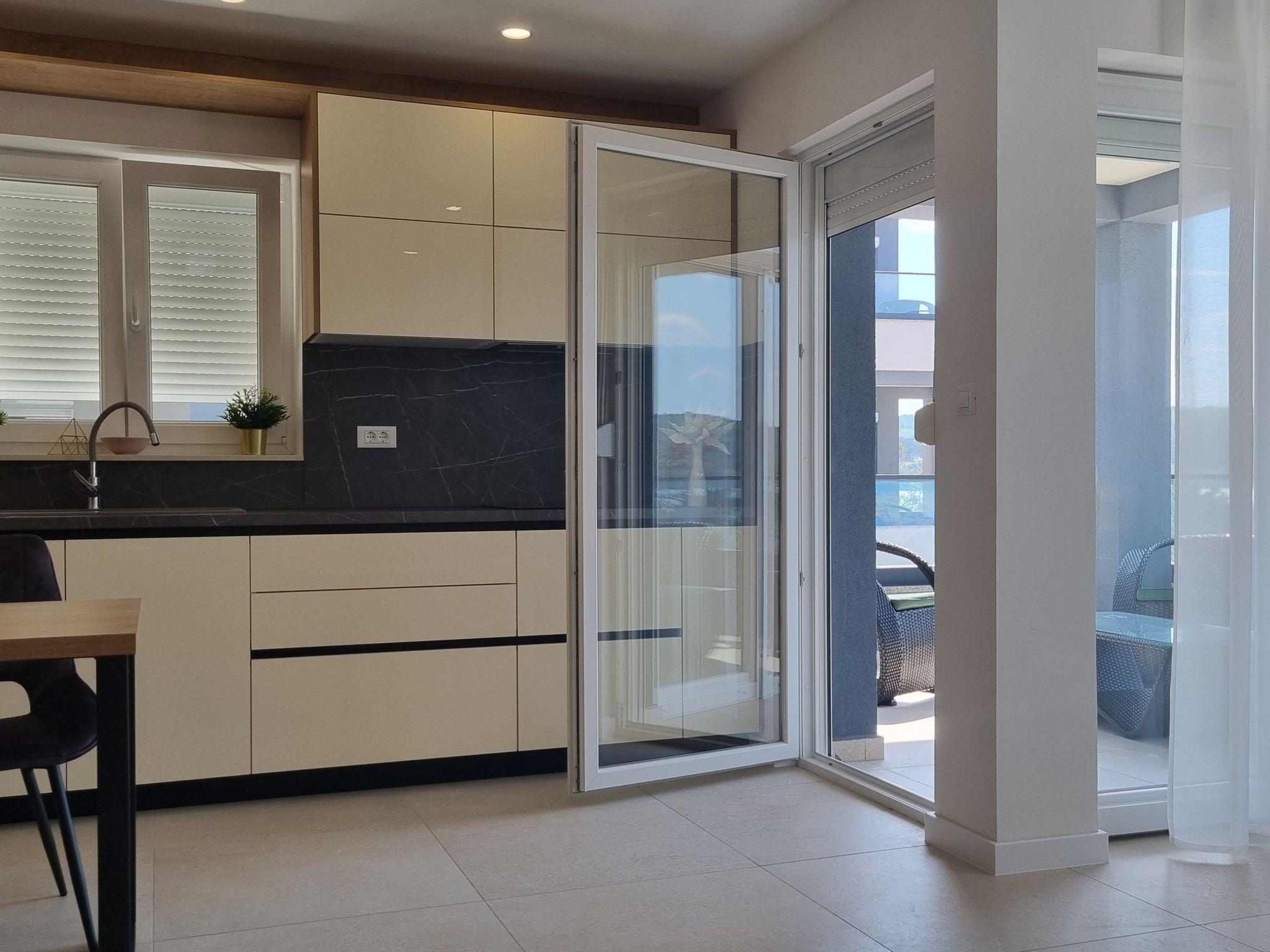 This luxurious and modern flat is located in a quiet apartment complex just 30 metres from the sea, surrounded by nature, many bays, pebble beaches and hiking trails. It offers a communal saltwater pool (36 m2), which is open from May to October and whose temperatures usually reach 20-26 °C. The flat is located on the 1st floor and has a bedroom with a double bed, a modern kitchen with induction hob, fridge-freezer, kettle, coffee machine, toaster, microwave and dishwasher. The bathroom has a shower and toilet. The dining area and living room offer a cosy space with a sofa and smart TV, while free WiFi is available throughout the building.