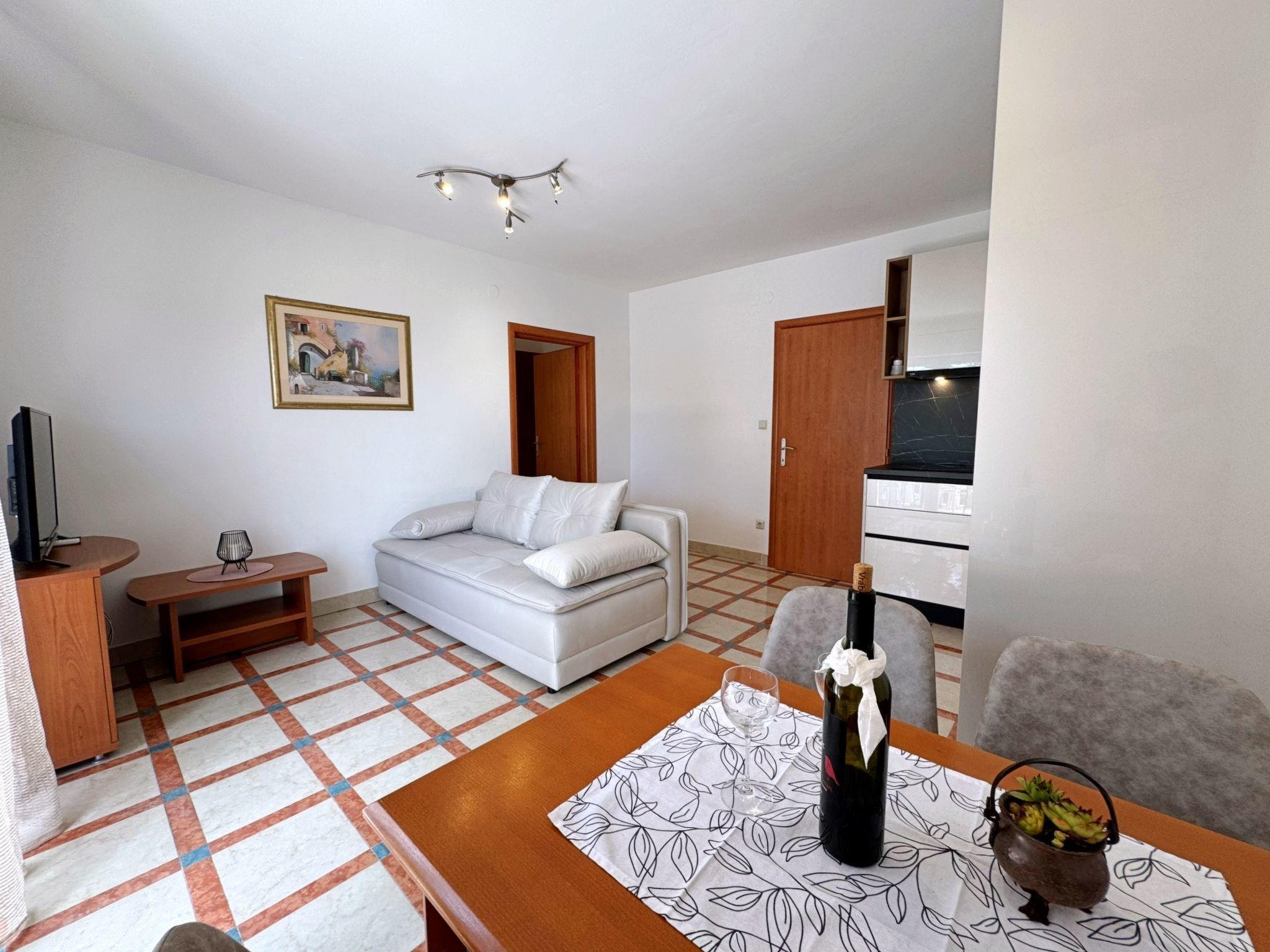 The location of the flat is simply unsurpassable. Just a few steps separate you from the clear sea and the sandy beach, which is only 30 metres away. The dog beach, which is interesting for dog lovers, is also just 700 metres away. The proximity to the centre of Šilo (400 metres) allows you to take a relaxing stroll to local shops, charming cafés and restaurants, while a grocery store just 500 metres away provides for your daily needs.