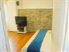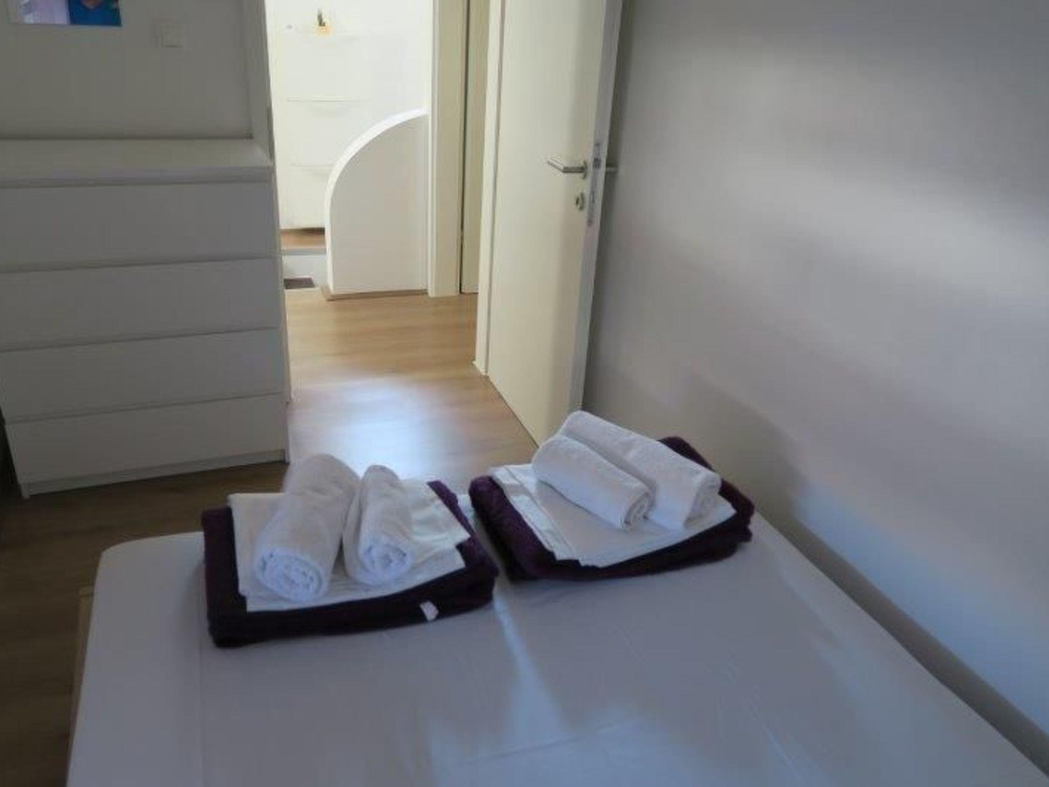 The three-storey house provides 95m² of living space, with each floor around 35m². The ground floor has an open kitchen, fully-equipped with a stove, oven, fridge, microwave, dishwasher and kettle. It has a nice counter with four modern bar stools, where you can enjoy meals. The kitchen has an adjoining living room with a flatscreen TV, stereo system and double sofa bed. The sofa measures 90 x 200cm and 180 x 200cm when pulled out. The ground floor also has a bathroom with a shower, WC, hairdryer and washbasin with a cupboard underneath and small secon bathroom is on the first floor. The second floor has a bedroom with a double bed (180 x 200cm) and up on the third floor there are two further little bedrooms, each with a bed measuring 140 x 200cm. All the rooms in the house have air conditioning. Internet access is available.