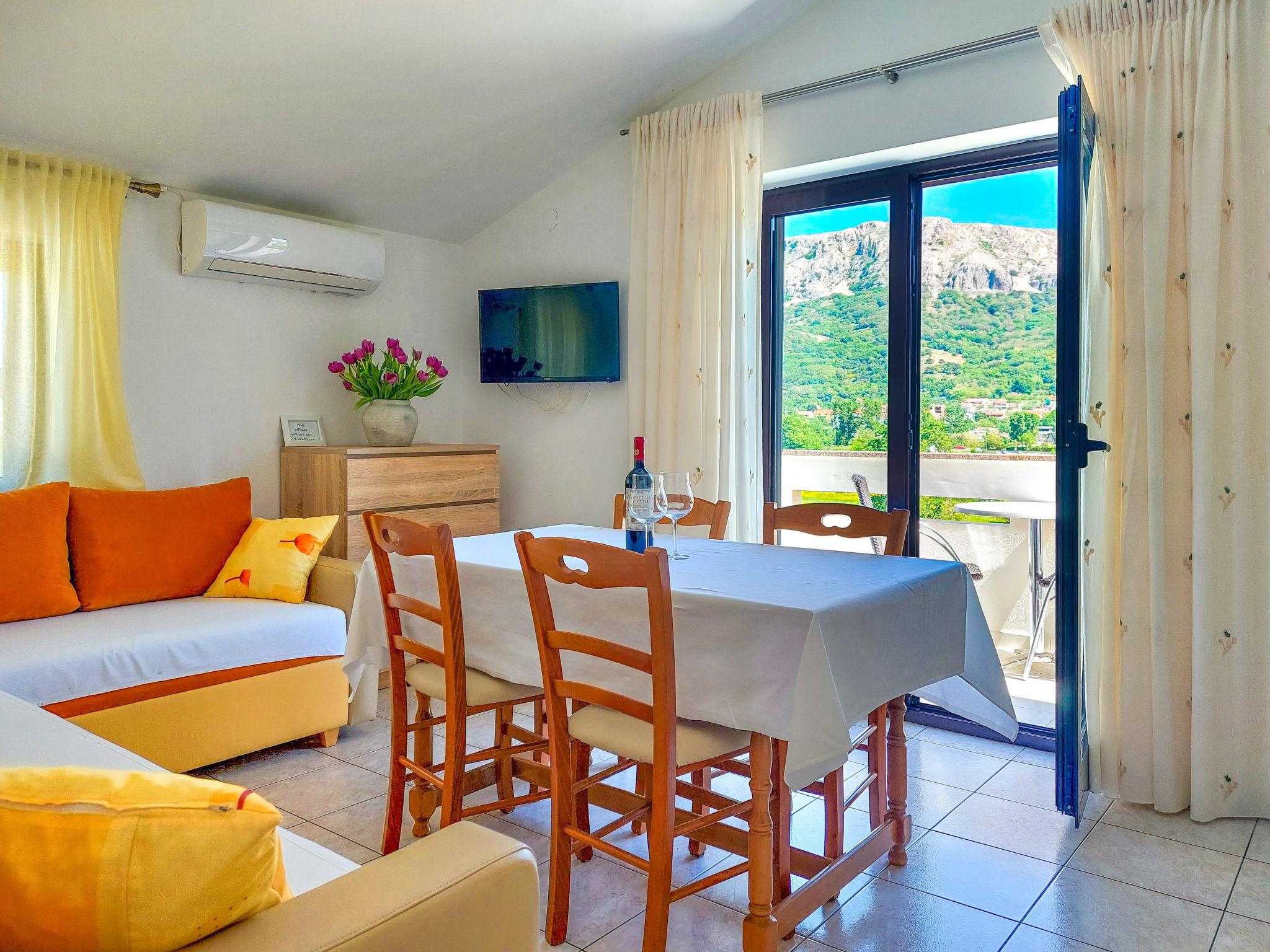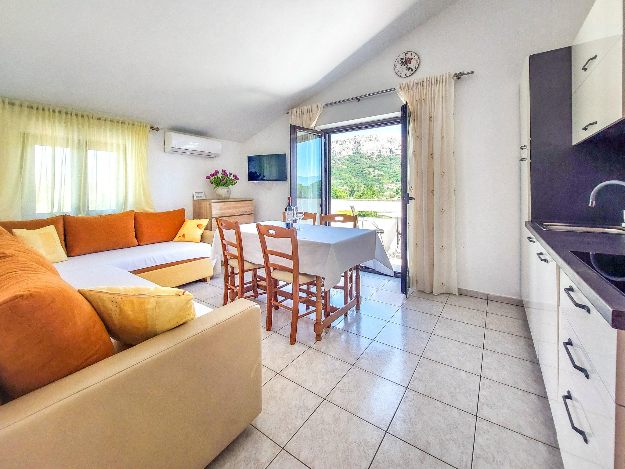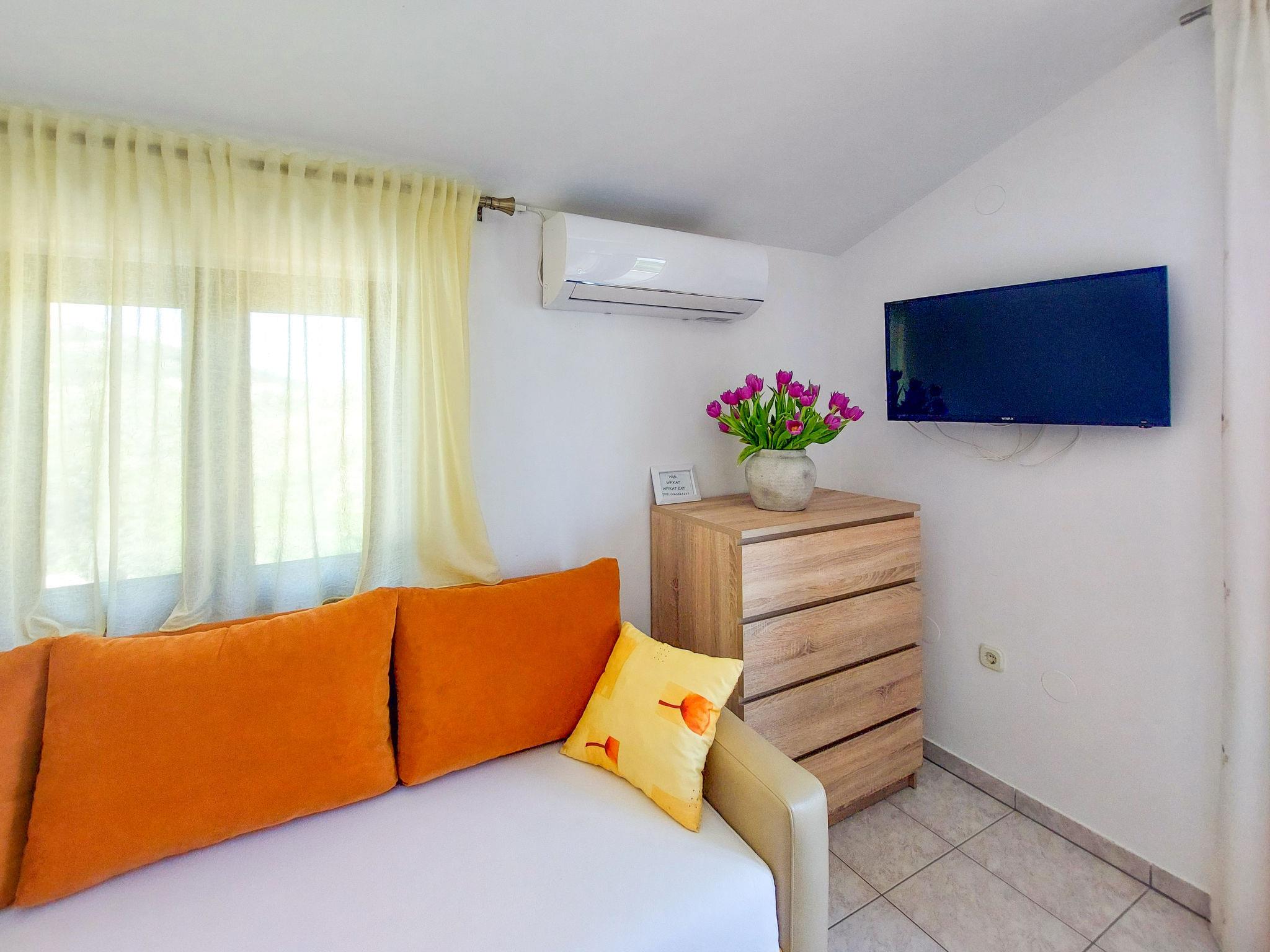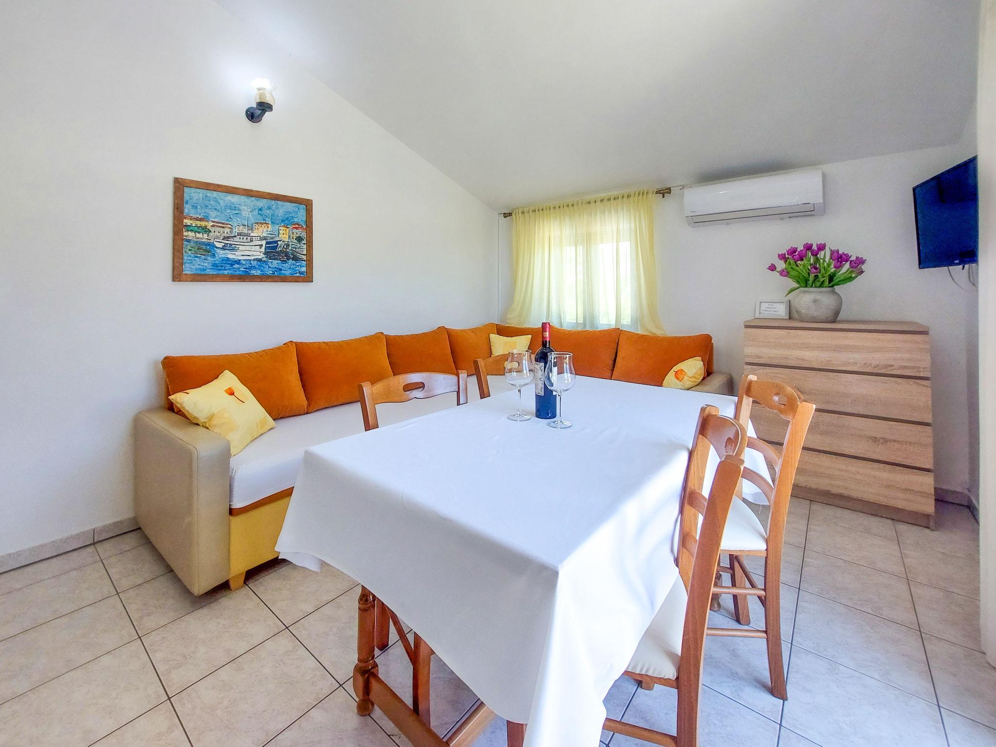 "Marija", 3-room apartment 45 m2 on 2nd floor. Living/dining room with satellite TV and air conditioning. Exit to the balcony. 1 room with 1 french bed (160 cm, length 200 cm). 1 room with 2 beds (80 cm, length 200 cm). Open kitchen (4 hot plates, oven, dishwasher, toaster, kettle, freezer, electric coffee machine). Bath/WC. No heating option. Balcony 3 m2. Balcony furniture. Facilities: washing machine. Internet (WiFi, free). Please note: non-smoking house. Maximum 2 pets/ dogs allowed.