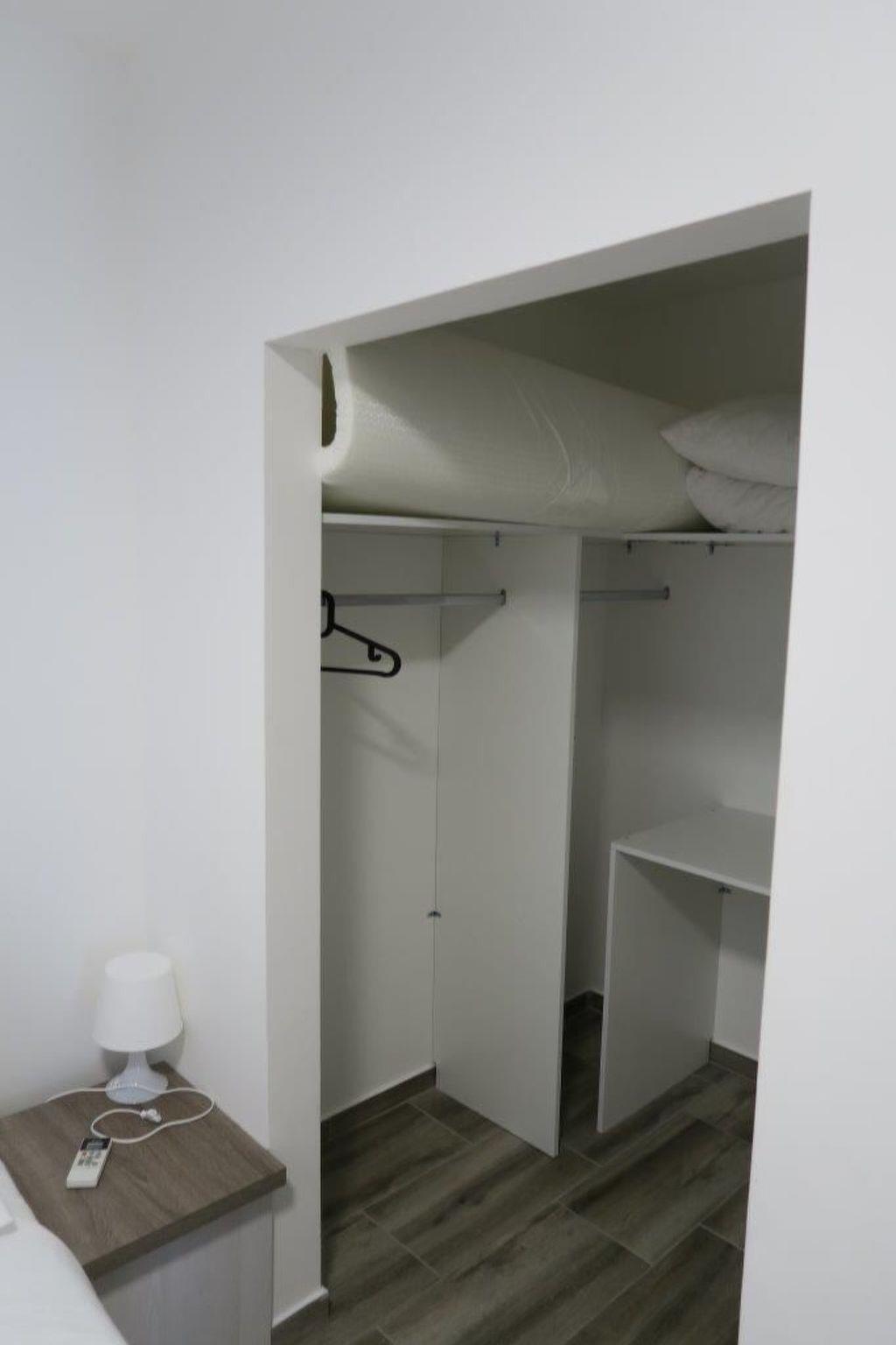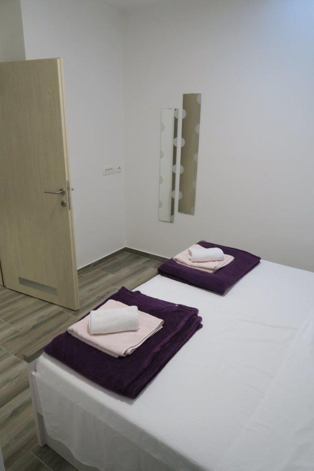 2 bathrooms with a shower, WC, hairdryer and washbasin with a cupboard underneath and washingmachine. The apartment has a 1 big bedroom with a double bed (180 x 200cm) and one bedroom with 2 beds measuring 90 x 200cm. In all roomsm are cupboards. All the rooms in the apartment have air conditioning. Internet access is available in whole apartment.
