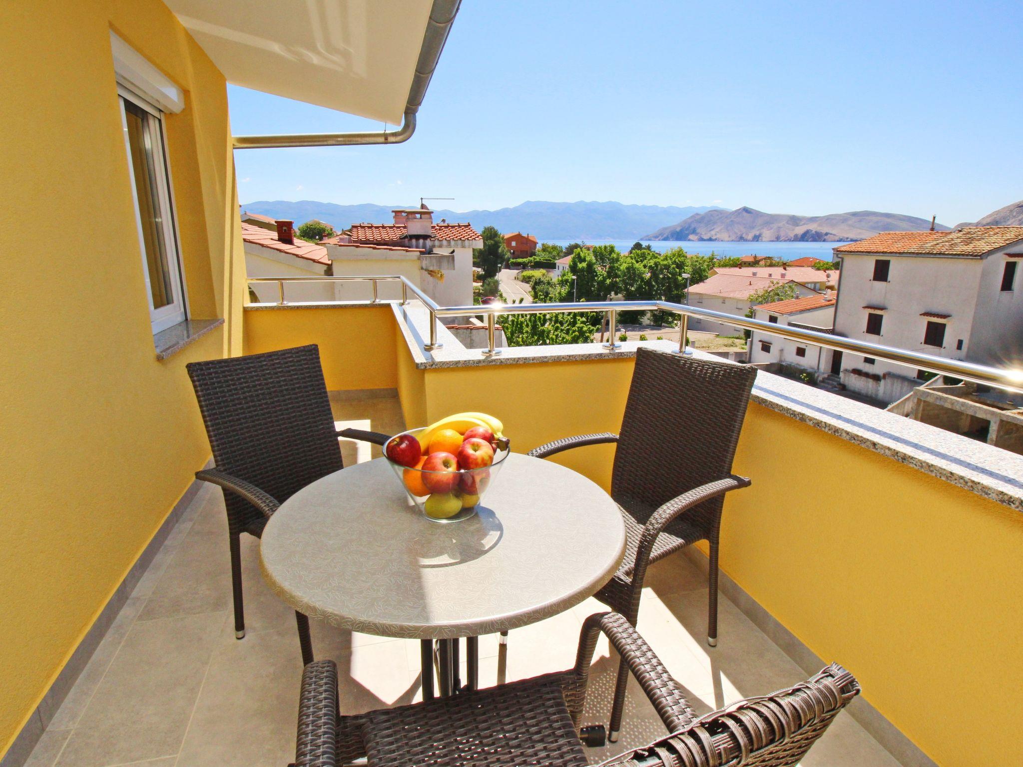 No. of persons: 2 Surface area:35 m2 (2nd floor) Apartment facilities: Bedroom : double room , double bed Living area : living room, dining room and kitchen are one unit; dining table and seating for all persons; with balcony; tiled Kitchen : kitchenette, dishes, cooking pots, cutlery, etc. are available, dish towels available, electric cooker, number of hotplates: 2, fridge-freezer, coffee machine Bathroom : bathroom with WC, with shower Special features of the accommodation unit : air conditioning, air conditioning included in price: Anzahl 1, Sat-TV, Bed linen provided in weekly change, Towels available (2 small/person and week), One pet allowed (up to 45 cm shoulder height), The prices include the following additional costs: Change of bed linen (weekly), final cleaning as well as the consumption of electricity, gas and water, free Wi-Fi Balcony : private balcony, balcony with sea view, table and chairs for the balcony are available, balcony area: 12sqm Outdoor area : barbecue, free parking space