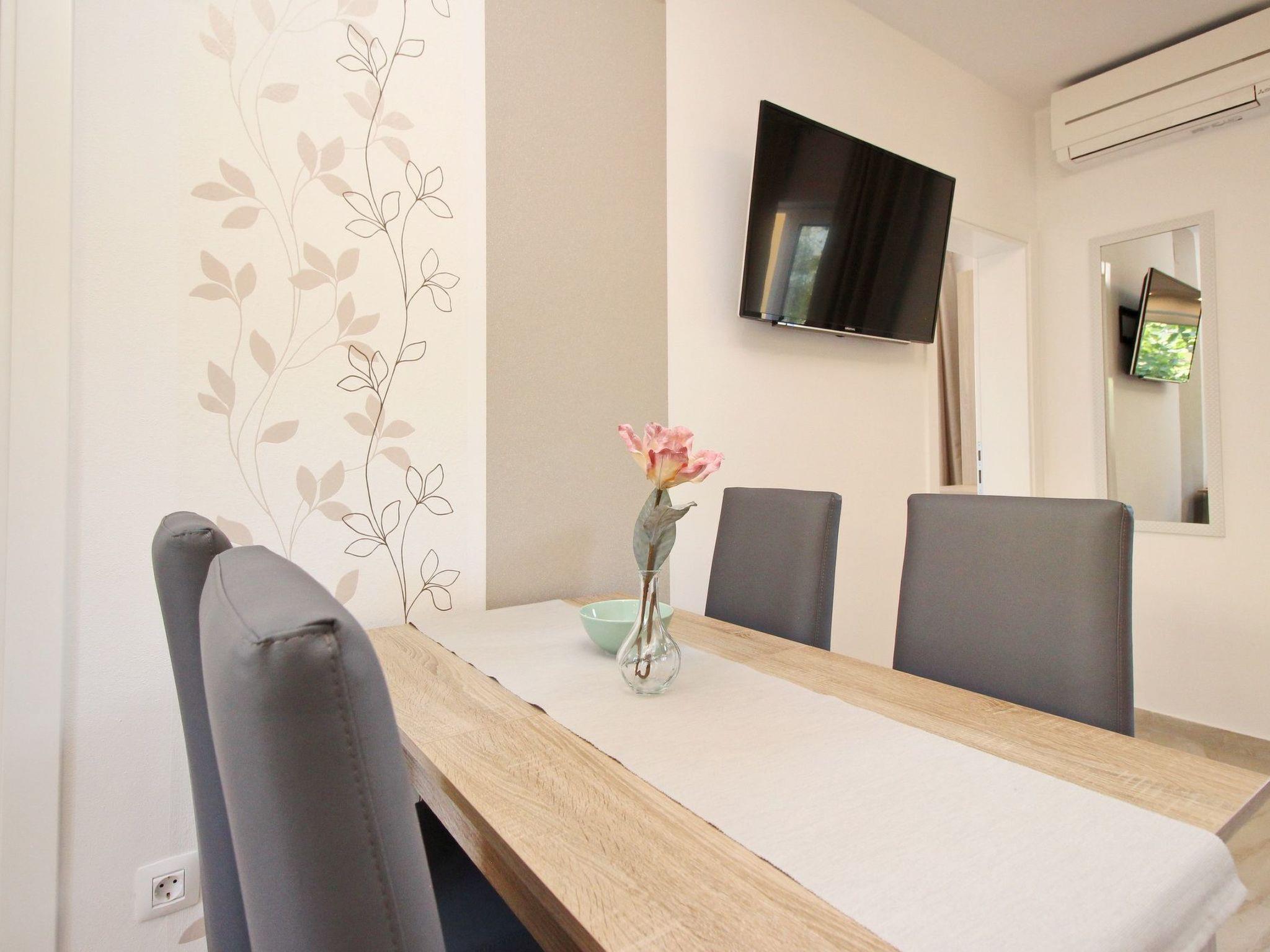 No. of persons: 4 Places: 45 m2 (2nd floor) Balcony: a private balcony, covered, tables and chairs for the balcony are available. Info: satellite TV, Wi-Fi, bed linen is provided once a week, towels available (1 large, 1 small / per person per week), use of air conditioning is included in the price of the accommodation. Flat facilities: Bedroom 1: double room, double bed Bedroom 2: double room, double bed