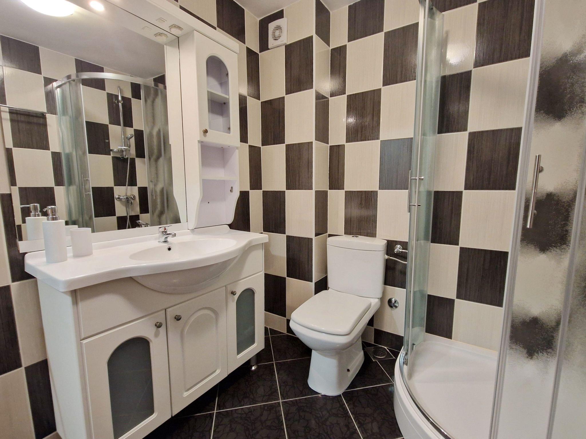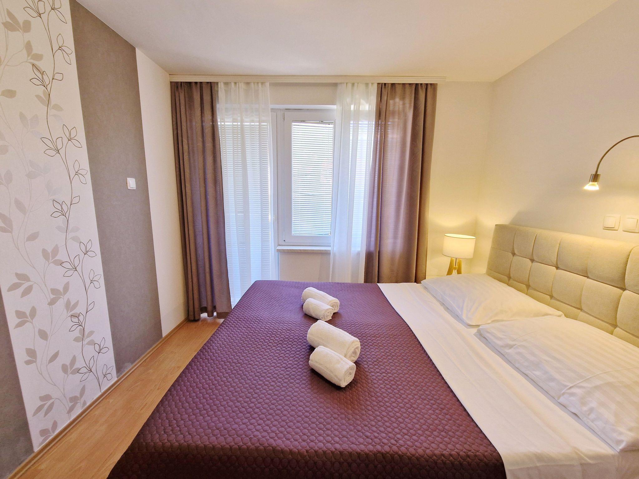 No. of persons: 4 Places: 65 m2 (1st floor) Balcony : a private balcony (approx. 7 square metres), covered, overlooking the sea, tables and chairs for the balcony are available. Free Wi-Fi, pets are not allowed, car park in the yard. Flat facilities: Bedroom no.1 : double bed , with balcony , laminate Bedroom no.2 : double bed , with balcony , laminate Bathroom : bathroom with toilet, with shower Living area : living room, dining room and kitchen are one unit ; dining table and seating for all persons ; with balcony ; tiled kitchen : kitchenette, dining table and seating for all persons, crockery, pots and pans, cutlery etc. are available, tea towels available, electric cooker, number of hotplates: 4, fridge without freezer compartment, coffee machine. Car park at the house.