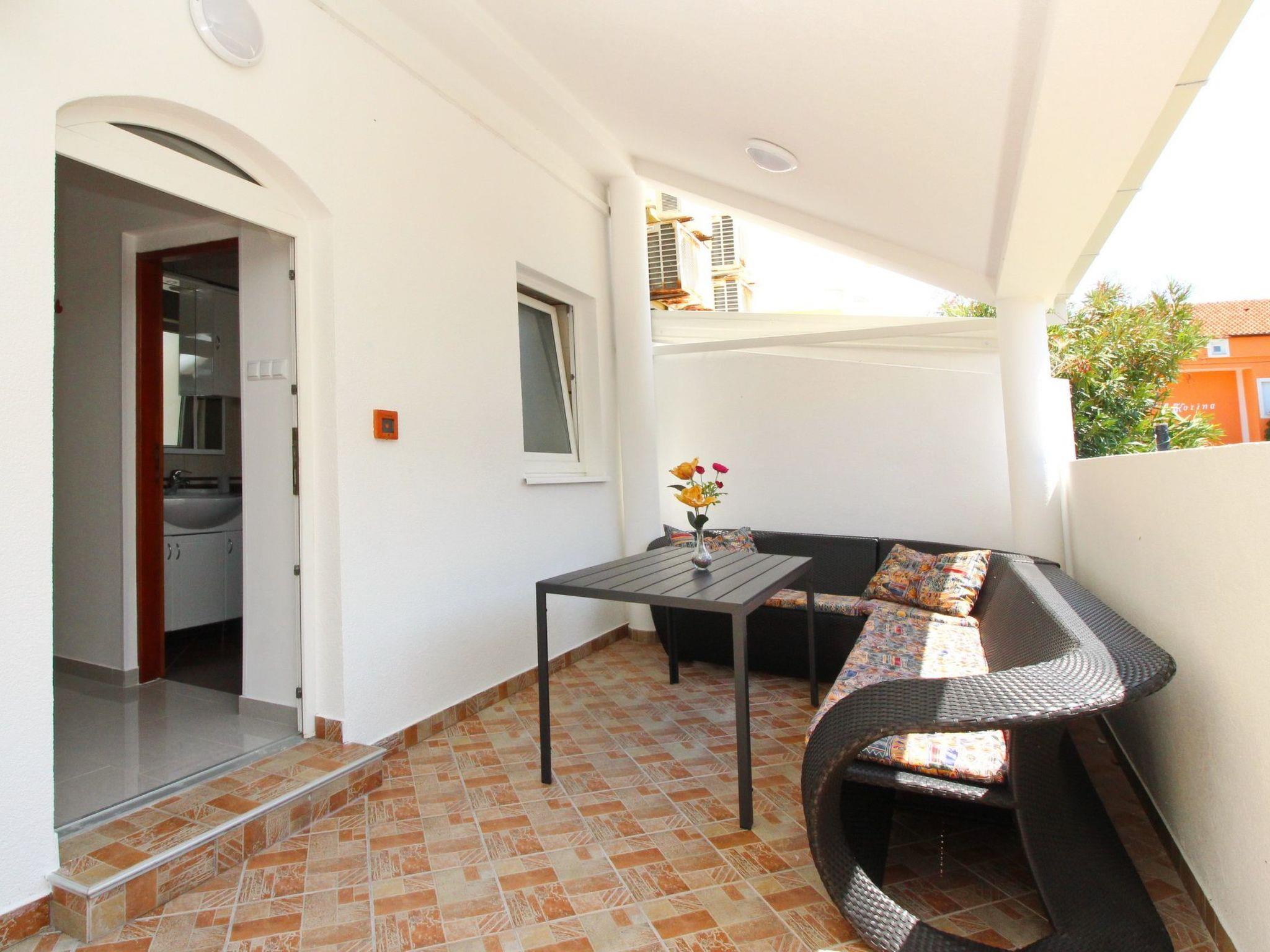 No. of persons: 2-3 Surface area : 35 m2 (ground floor) Apartment facilities: Bedroom : double room , queen-size bed , tiled Living area : living room, dining room and kitchen are one unit; dining table and seating for all persons; one additional sleeping possibility on a sofa bed; with terrace; tiled Kitchen : kitchen utensils, crockery, pots and pans, cutlery etc. are available, tea towels provided, electric cooker, no. of hotplates: 4, oven, tiled. on a sofa bed; with terrace; tiled kitchen : kitchenette, dishes, cooking pots, cutlery, etc. are available, dish towels available, electric cooker, number of hotplates: 4, oven, refrigerator with freezer compartment, coffee machine Bathroom : bathroom with WC, with shower Special features of the accommodation unit : air conditioning, air conditioning included in price: Anzahl 1, Sat-TV, Bed linen provided in weekly change, Towels available (2 small/person and week), One pet allowed (up to 45 cm shoulder height), The prices include the following additional costs: change of bed linen (weekly), final cleaning as well as the consumption of electricity, gas and water. Terrace : private terrace, table and chairs for the terrace are available, Surface of the terrace: 15qm Outdoor area : free car park