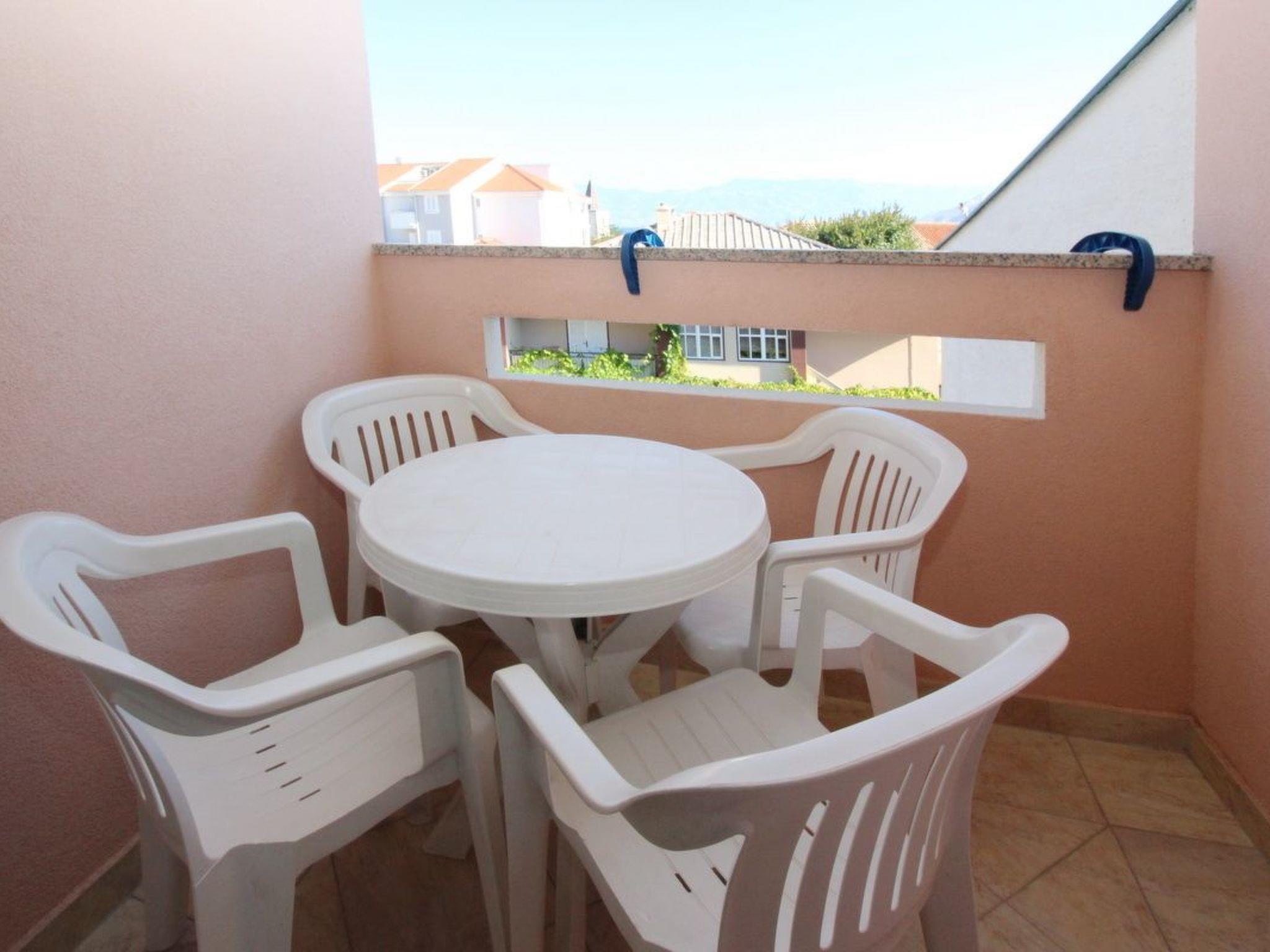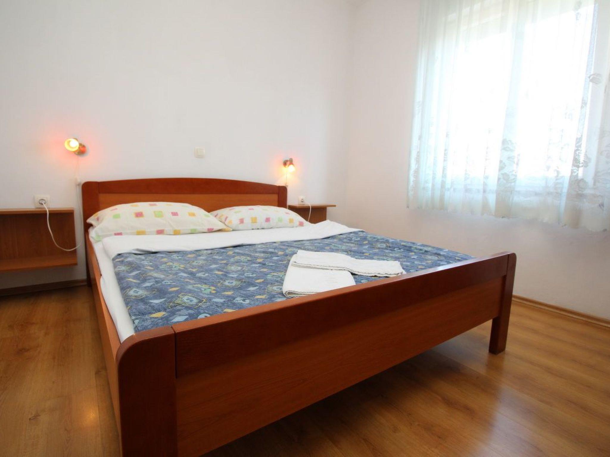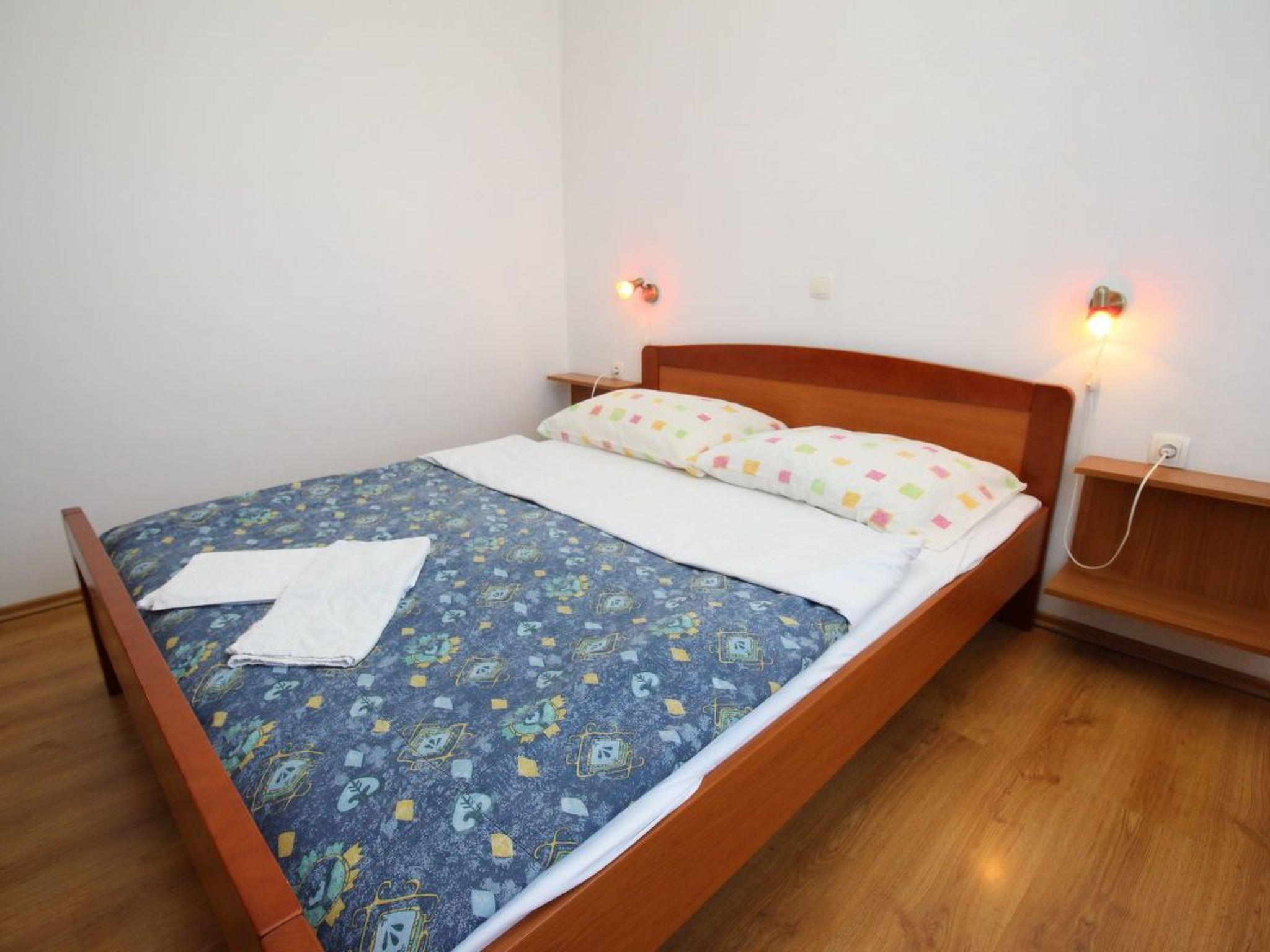 No. of persons: 4-5 places: 50 m2 (2nd floor) Balcony : a private balcony, covered, tables and chairs for the balcony are available. Info: Satellite TV, bed linen is provided once a week, towels available (1 large, 1 small / per person and week), use of air conditioning is included in the price of the accommodation, pets are not allowed. Equipment holiday flat: bedroom no.1 : double room , double bed , laminate bedroom no.2 : double room , double bed , laminate living room, dining room and kitchen are one unit ; dining table and seating for all persons ; one additional sleeping possibility on a sofa bed ; with balcony ; tiled floor