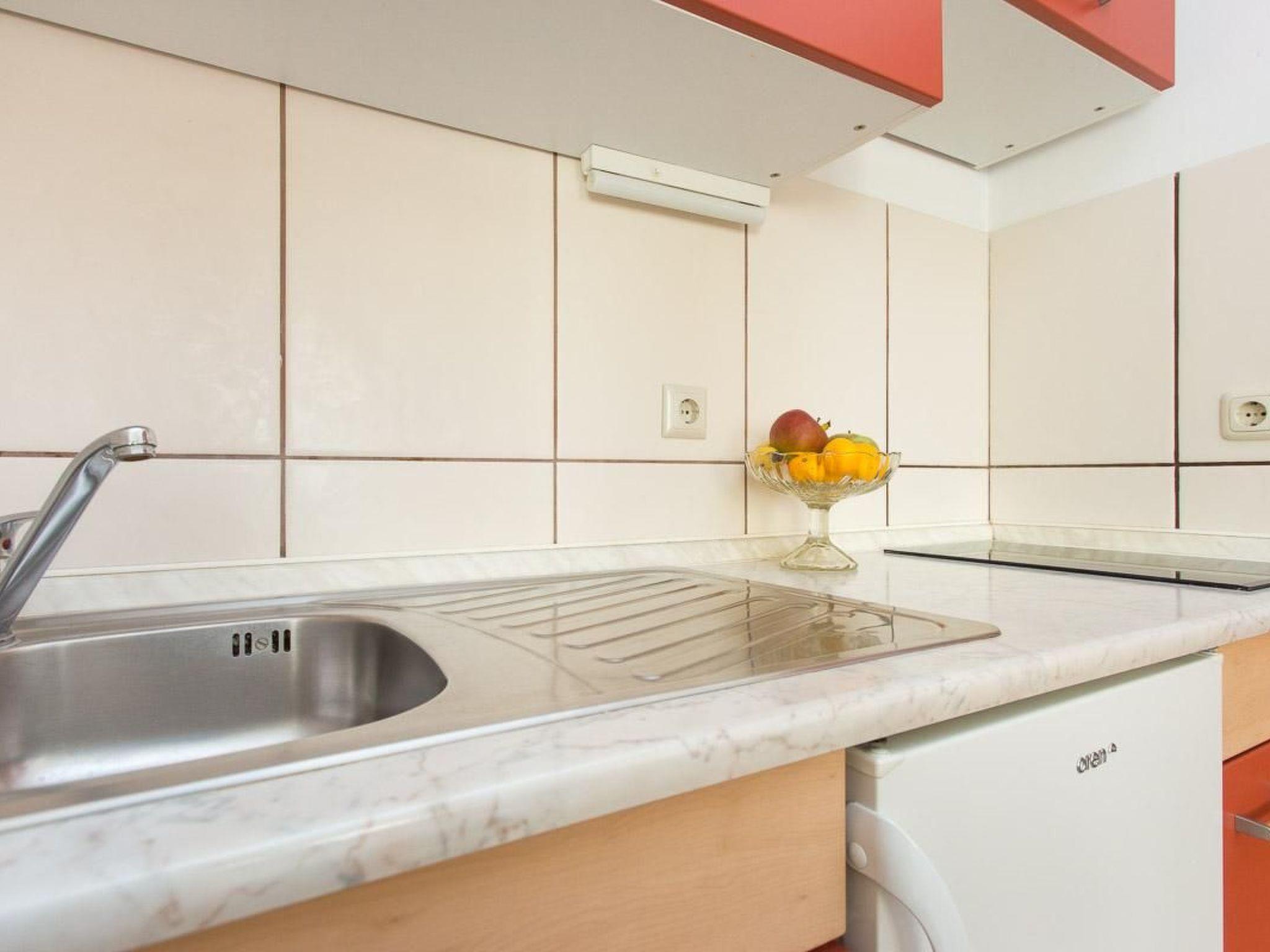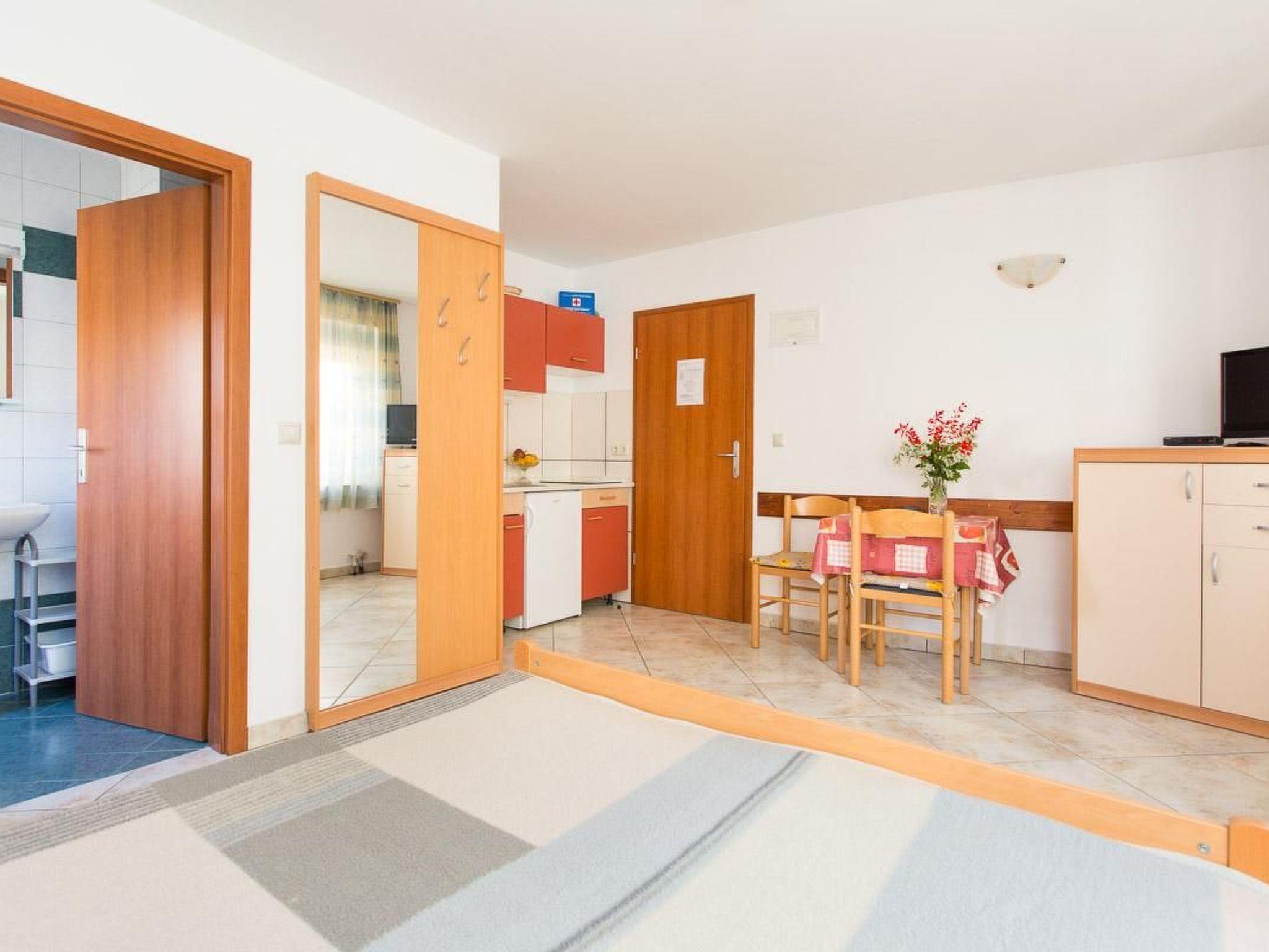 ZIC-MRAKOVCIC br.1 S2K1 without balcony / no. of persons: 2 places : 25 m2 (1st floor) Equipment flat: studio flat: (sleeping, living and cooking area are one room), tiled, French bed kitchenette: dining table and seating for all persons, crockery, pots, cutlery, etc. are available, tea towels available, electric cooker, number of hotplates: 2, refrigerator, coffee maker bathroom : bathroom with toilet, with shower Special features of the accommodation unit : air conditioning included in the price: Anzahl 1, Sat-TV, Bed linen provided in weekly change, Towels available (2 small/person and week), One pet allowed (up to 45 cm shoulder height), The prices include the following additional costs: change of bed linen (weekly), final cleaning as well as the consumption of electricity, gas and water. Outside : barbecue, free car park