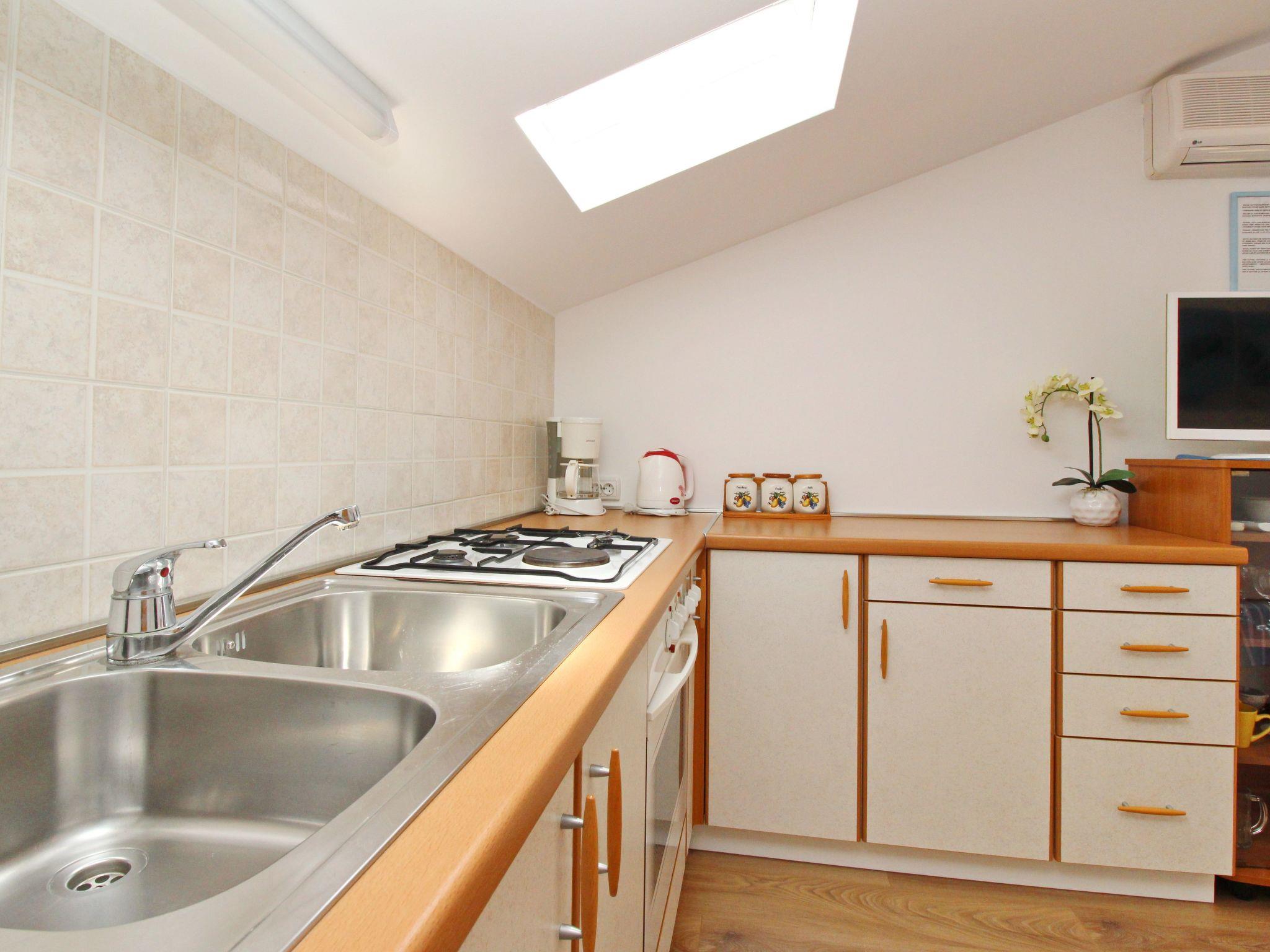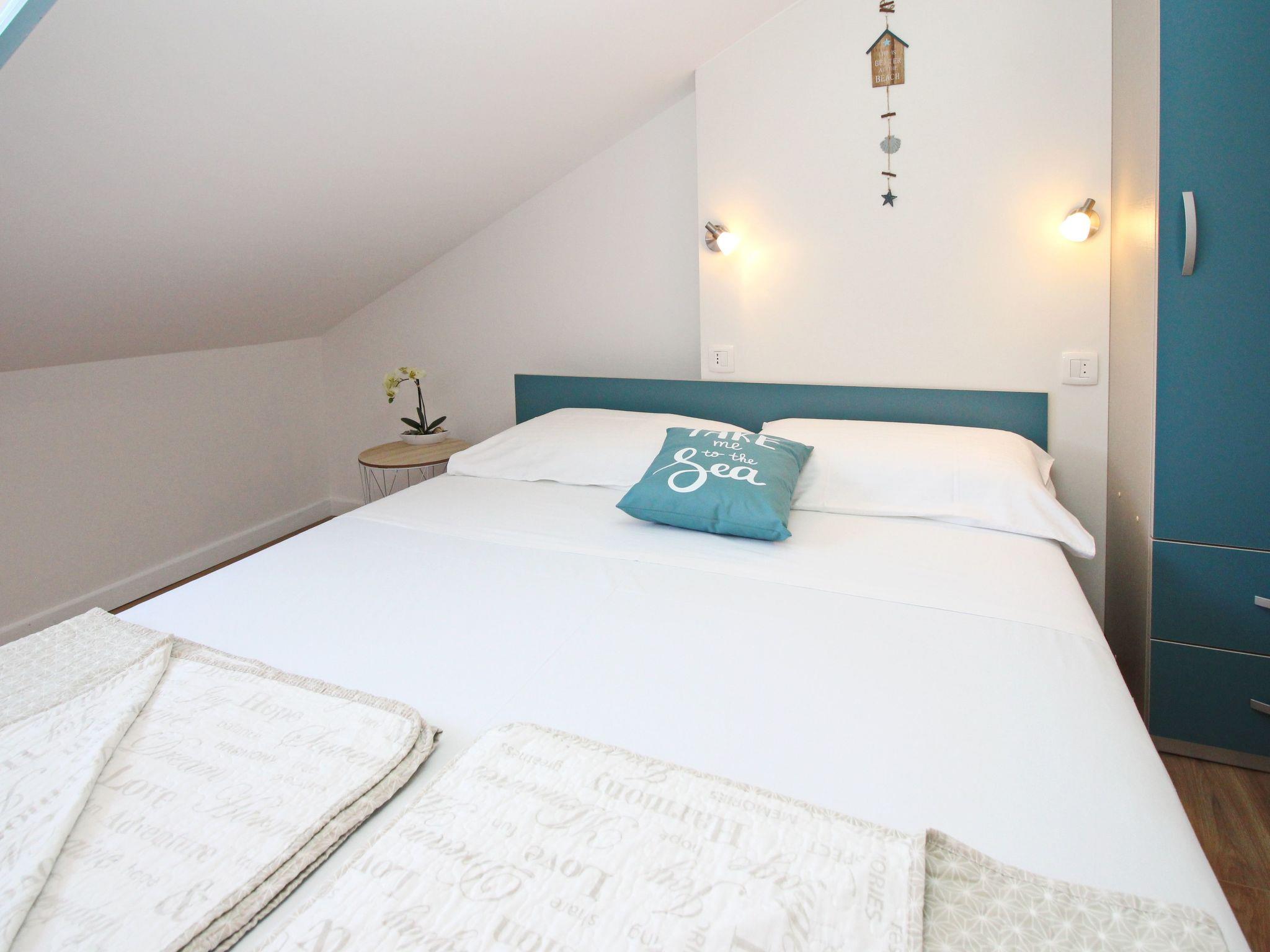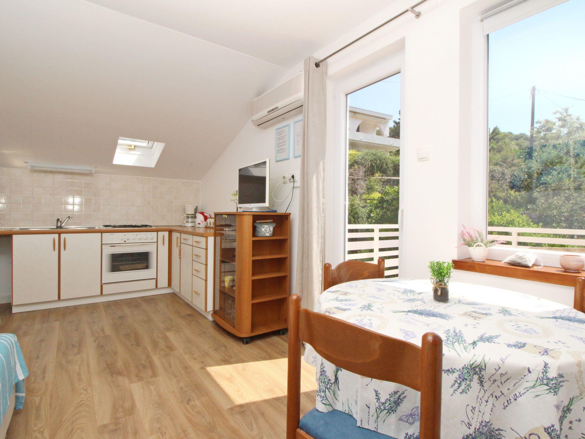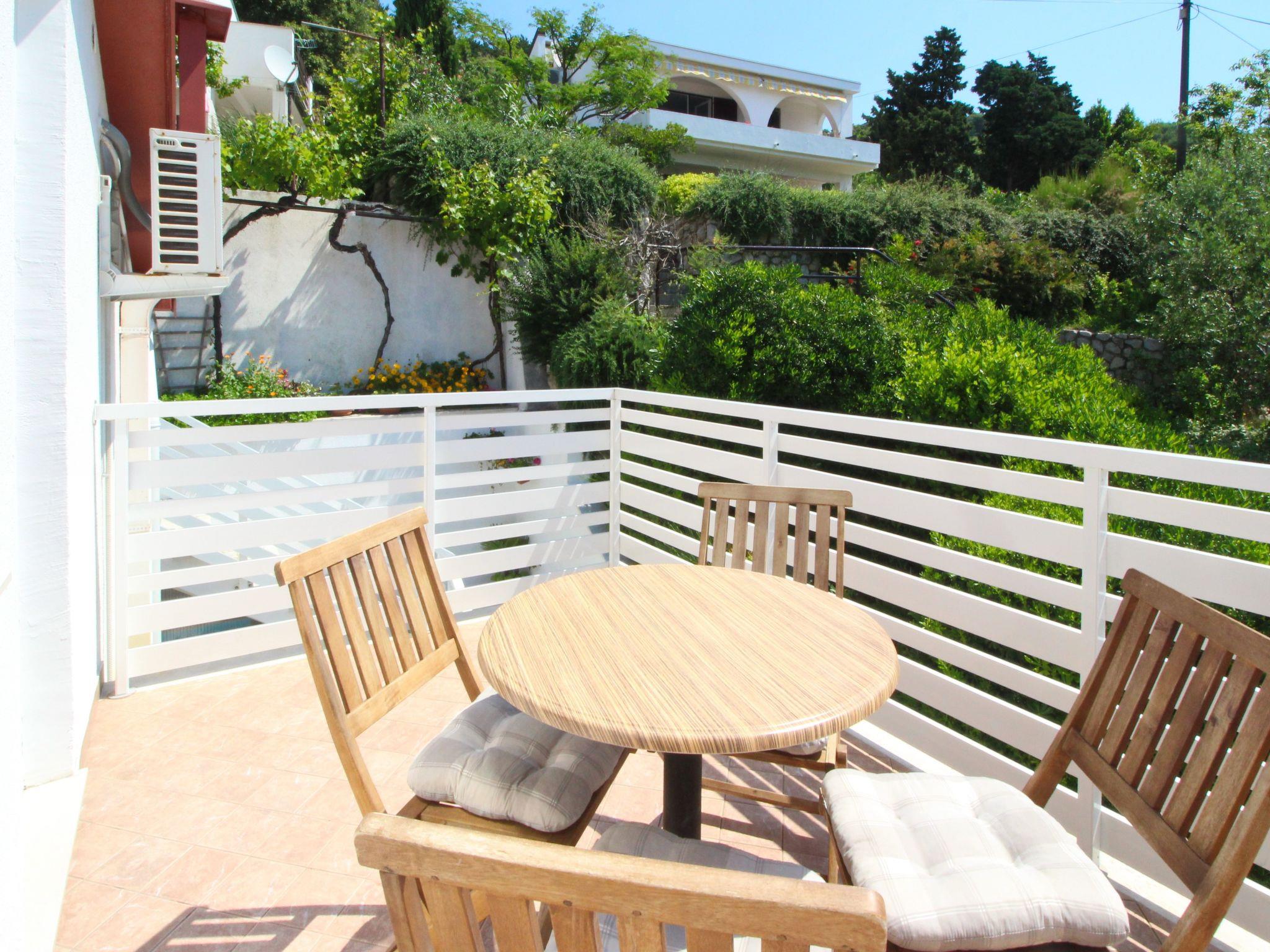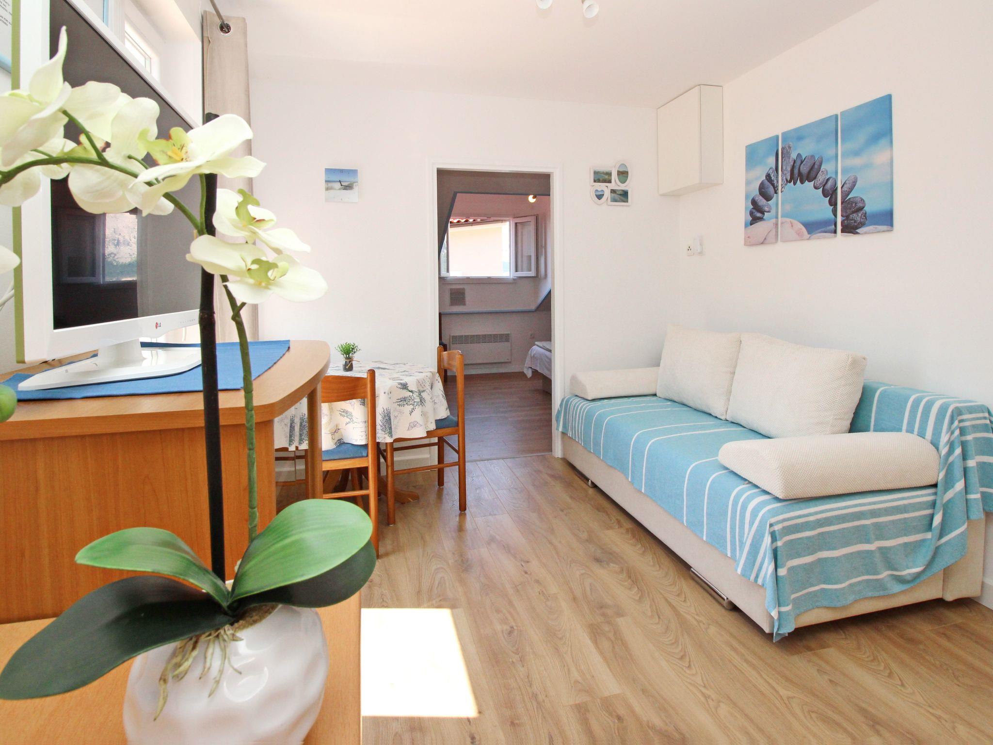 No. of persons: 2-3 Places: 34 m2 (2nd floor) Balcony : a private balcony, tables and chairs for the balcony are available. Info: Satellite TV, bed linen is provided once a week, towels available (1 large, 1 small / per person and week), use of air conditioning is included in the price of the accommodation, pets are not allowed. Environment: car park secured nearby at no extra charge. Flat facilities: Bedroom : Double room , French bed , one single bed ; Living area Living room, dining room and kitchen are one unit ; Dining table and seating for all persons ; with balcony ; Tiled