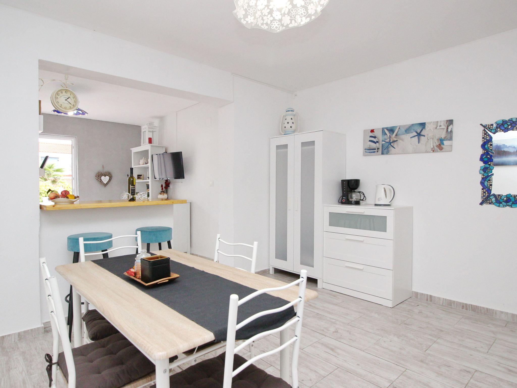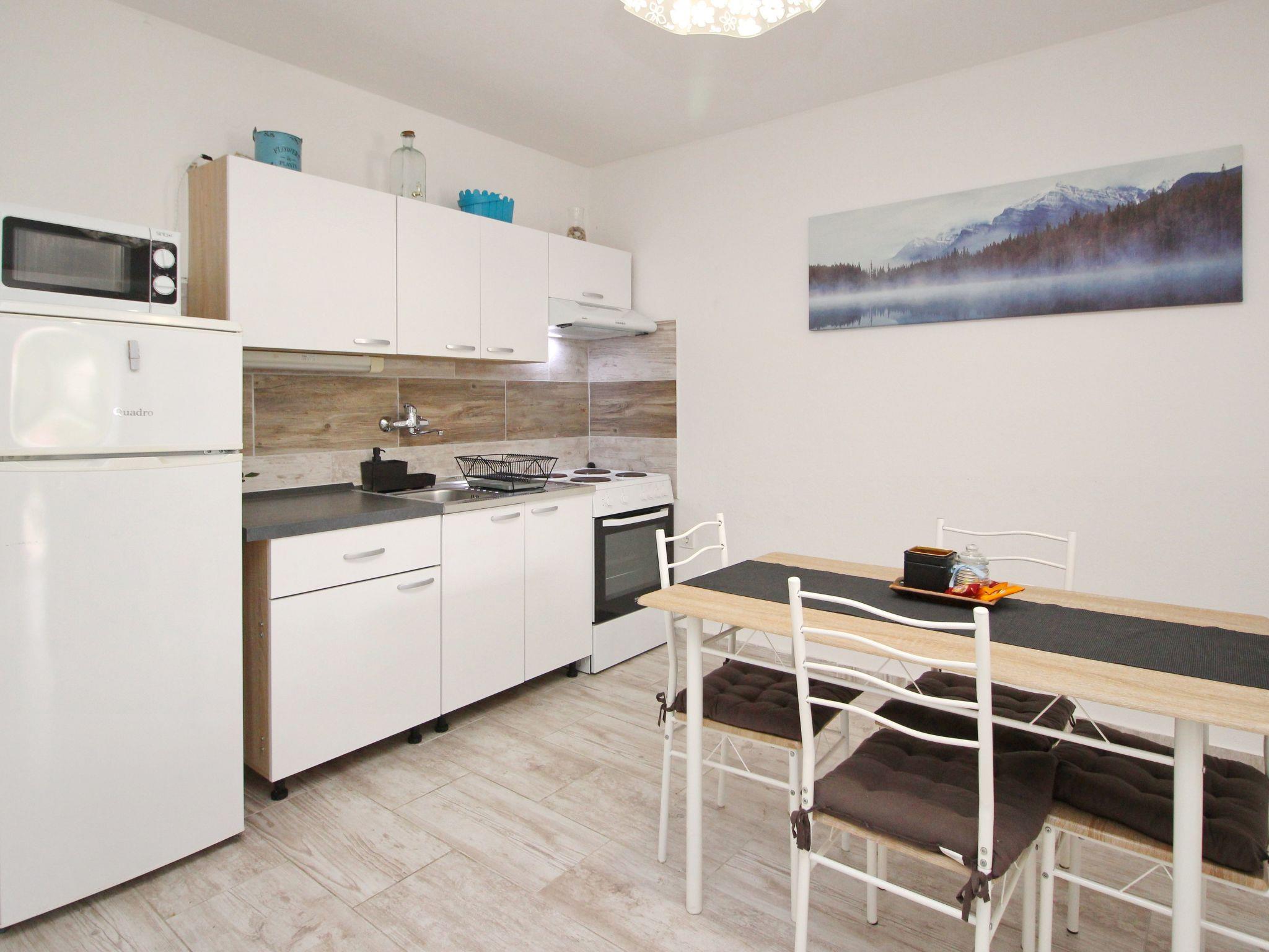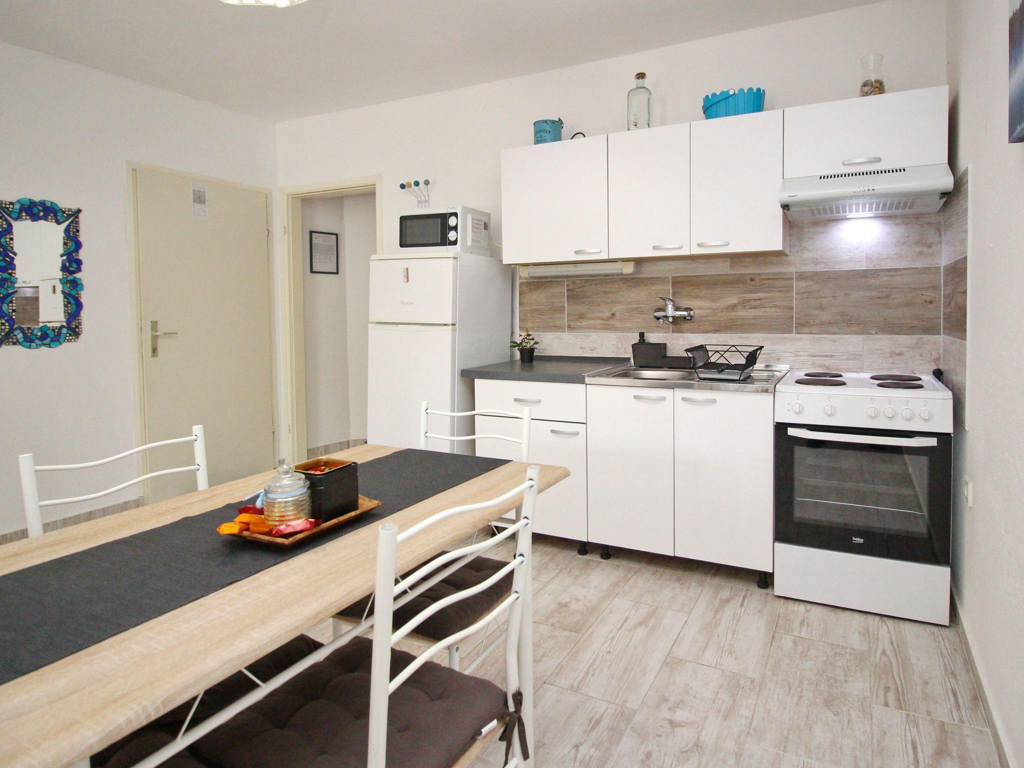 Holiday flat : 2+2 persons, ground floor , 35-38 m² , 1 bedroom, air-conditioned Bedroom : double room , double bed Living area : living room, dining room and kitchen are one unit; dining table and seating for all persons; two additional sleeping possibilities on a sofa bed; with terrace; laminate kitchen : kitchenette, dining table and seating for all persons, crockery, pots and pans, cutlery, etc. are available, dish towels available, electric cooker, no. of hotplates: 4, oven, refrigerator with freezer, coffee machine, microwave Bathroom : bathroom with WC, with shower. dishes, cooking pots, cutlery, etc. are available, dish towels available, electric cooker, number of hotplates: 4, oven, fridge with freezer compartment, coffee machine, microwave bathroom : bathroom with WC, with shower special features of the accommodation unit : air conditioning included in price, satellite TV, bed linen provided in weekly change, towels available (1 large, 1 small/person and week), one pet allowed, internet (WLAN), final cleaning included in price. Terrace : private terrace, table and chairs for the terrace are available, surface of the terrace: 10qm outdoor area barbecue, free car park