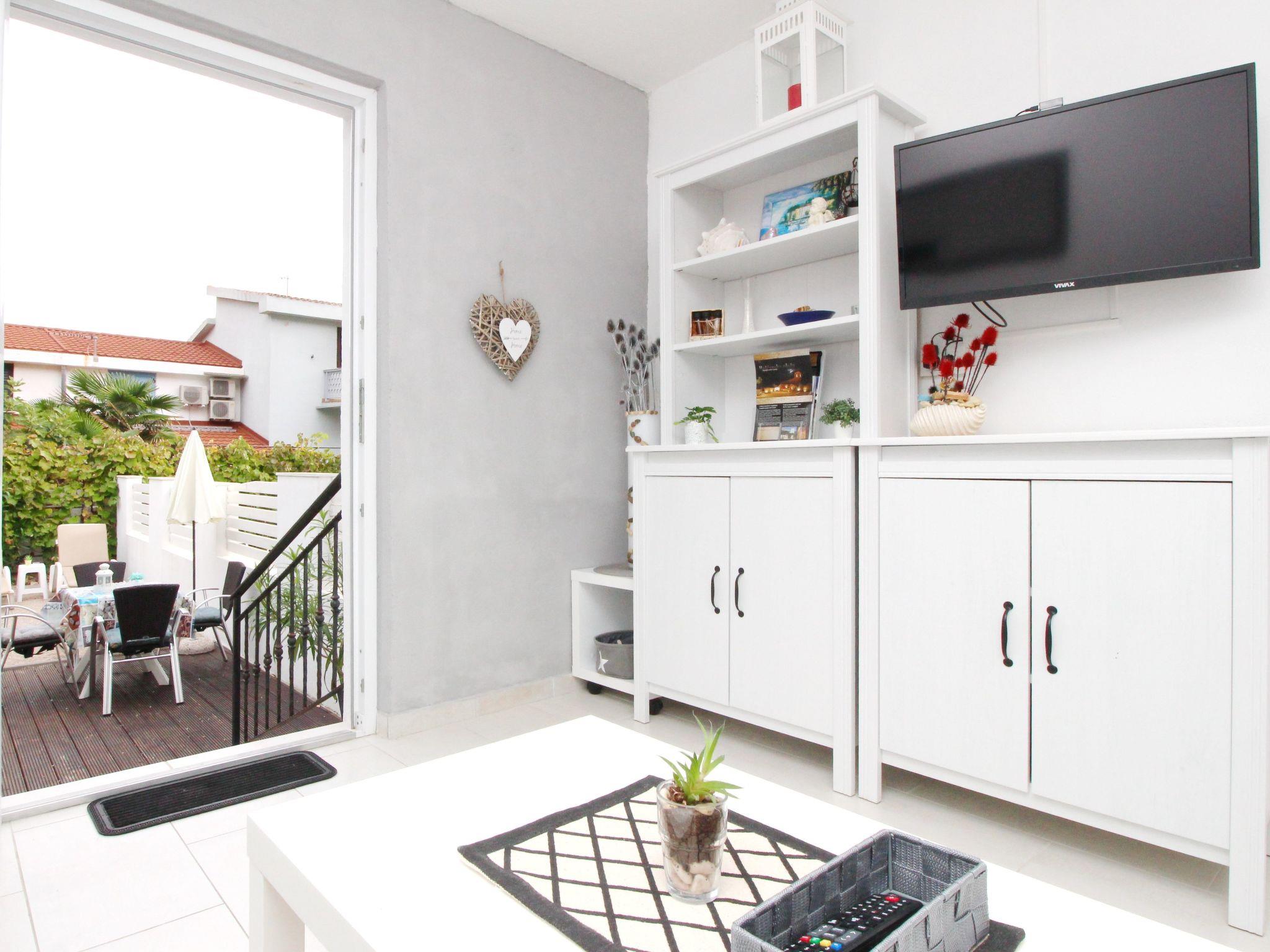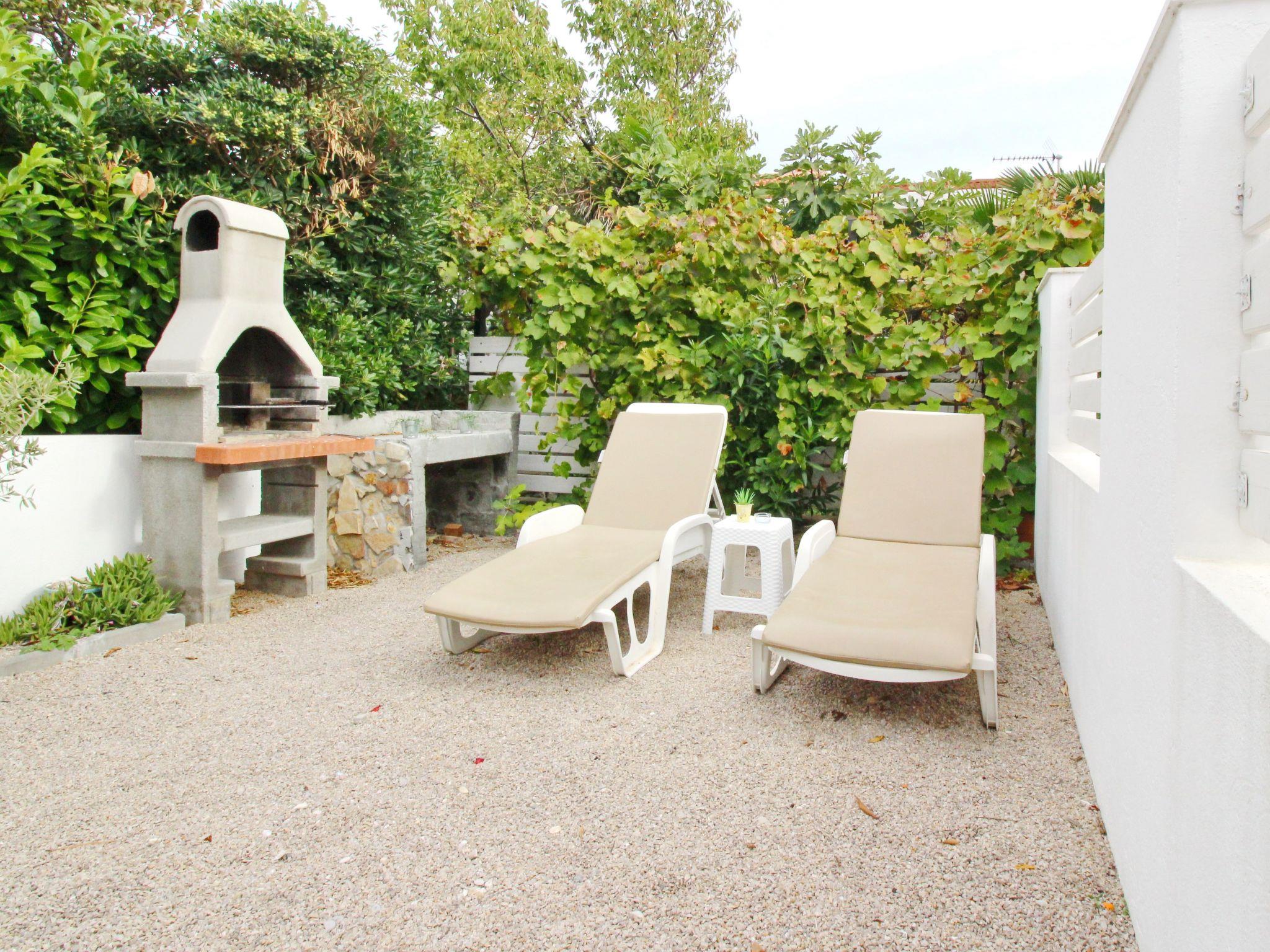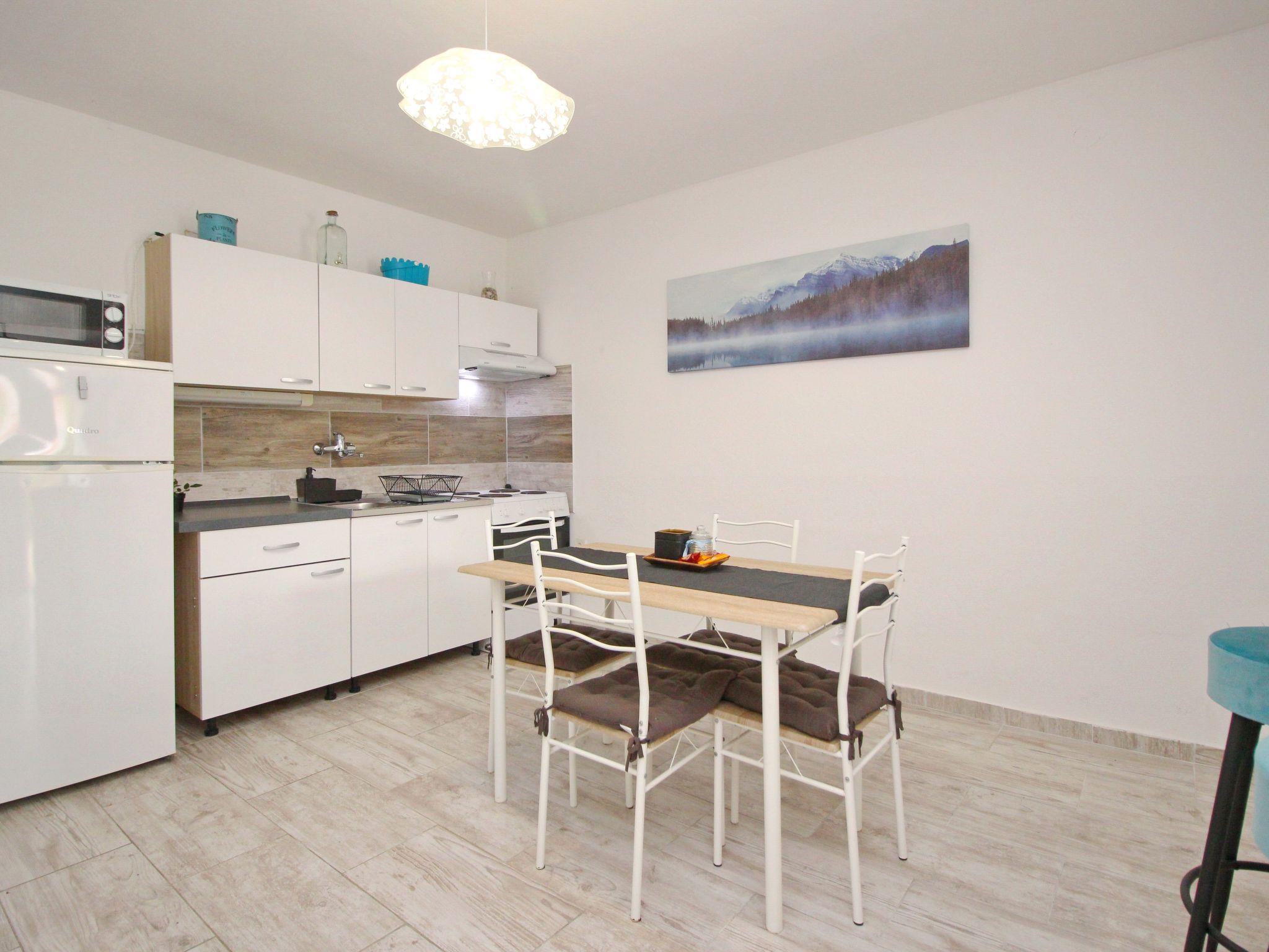 Holiday flat : 2+2 persons, ground floor , 35-38 m² , 1 bedroom, air-conditioned Bedroom : double room , double bed Living area : living room, dining room and kitchen are one unit; dining table and seating for all persons; two additional sleeping possibilities on a sofa bed; with terrace; laminate kitchen : kitchenette, dining table and seating for all persons, crockery, pots and pans, cutlery, etc. are available, dish towels available, electric cooker, no. of hotplates: 4, oven, refrigerator with freezer, coffee machine, microwave Bathroom : bathroom with WC, with shower. dishes, cooking pots, cutlery, etc. are available, dish towels available, electric cooker, number of hotplates: 4, oven, fridge with freezer compartment, coffee machine, microwave bathroom : bathroom with WC, with shower special features of the accommodation unit : air conditioning included in price, satellite TV, bed linen provided in weekly change, towels available (1 large, 1 small/person and week), one pet allowed, internet (WLAN), final cleaning included in price. Terrace : private terrace, table and chairs for the terrace are available, surface of the terrace: 10qm outdoor area barbecue, free car park