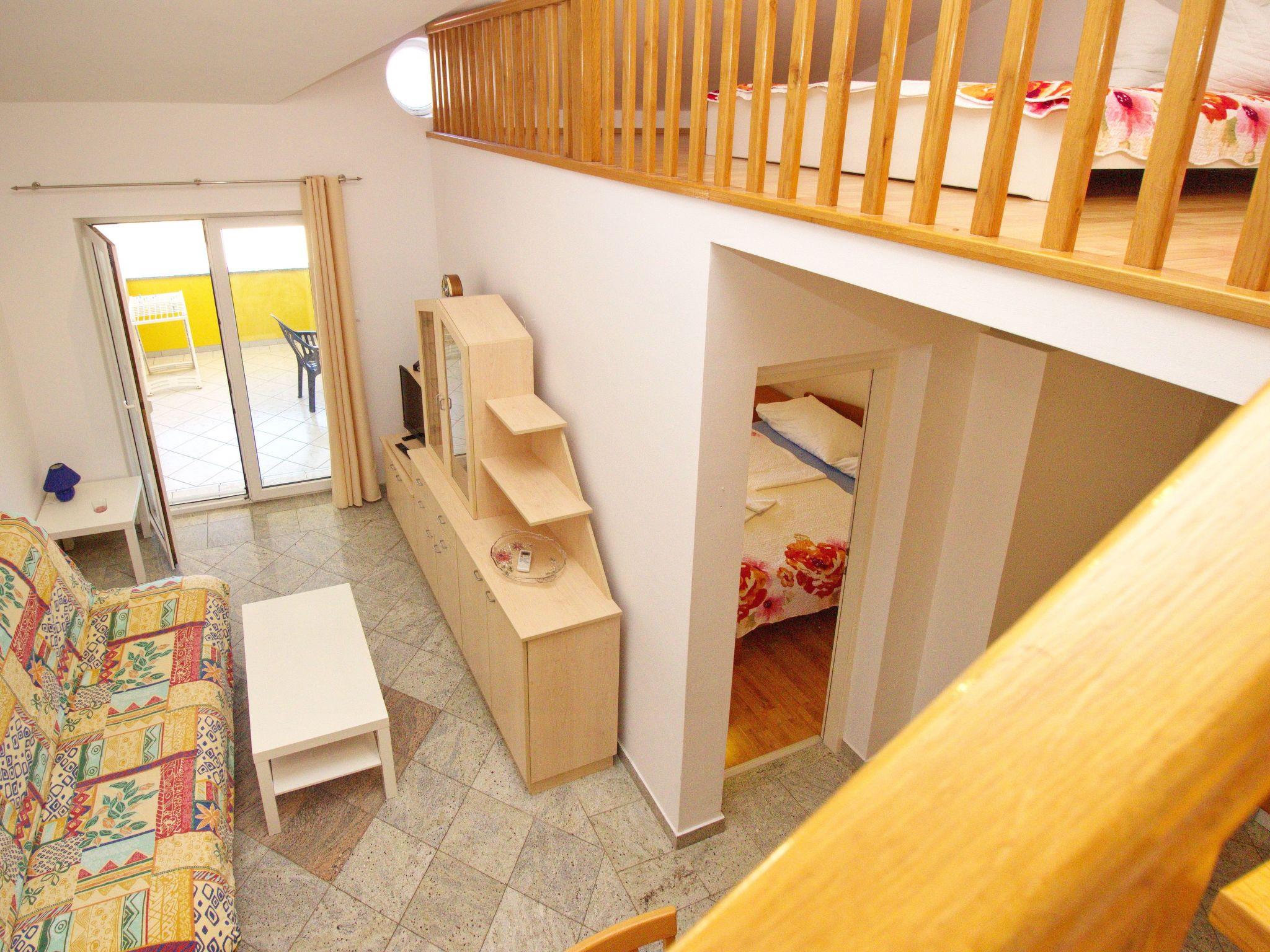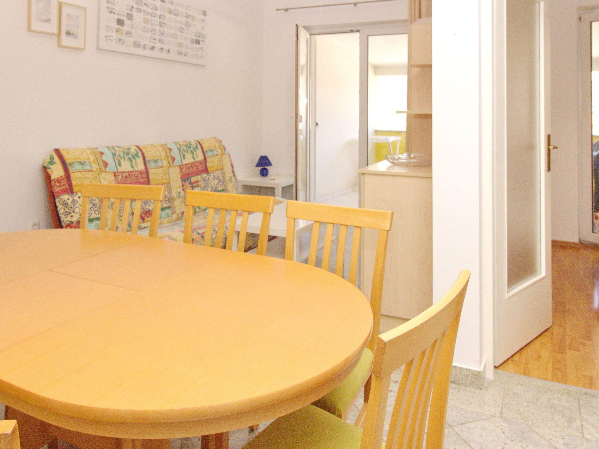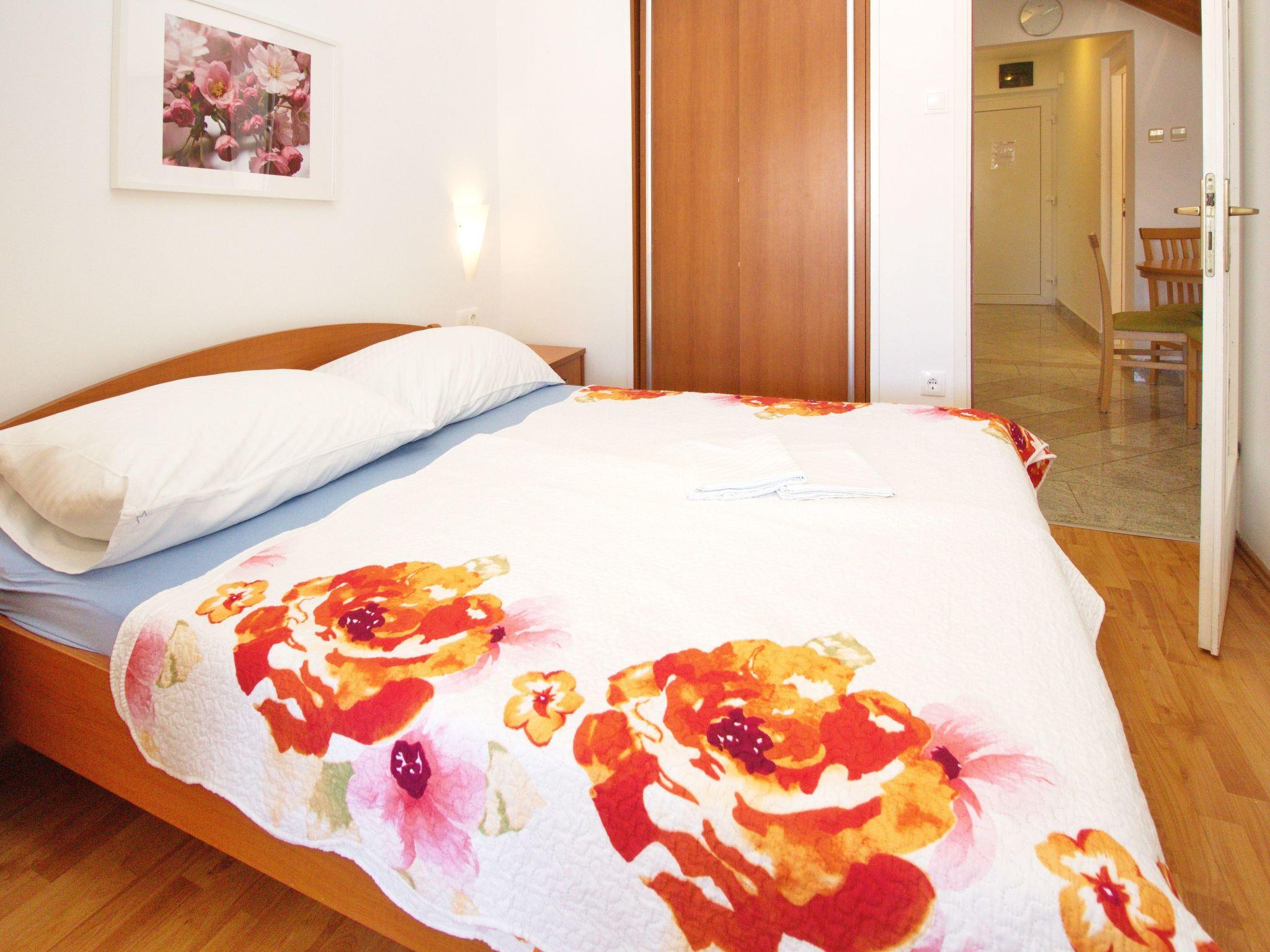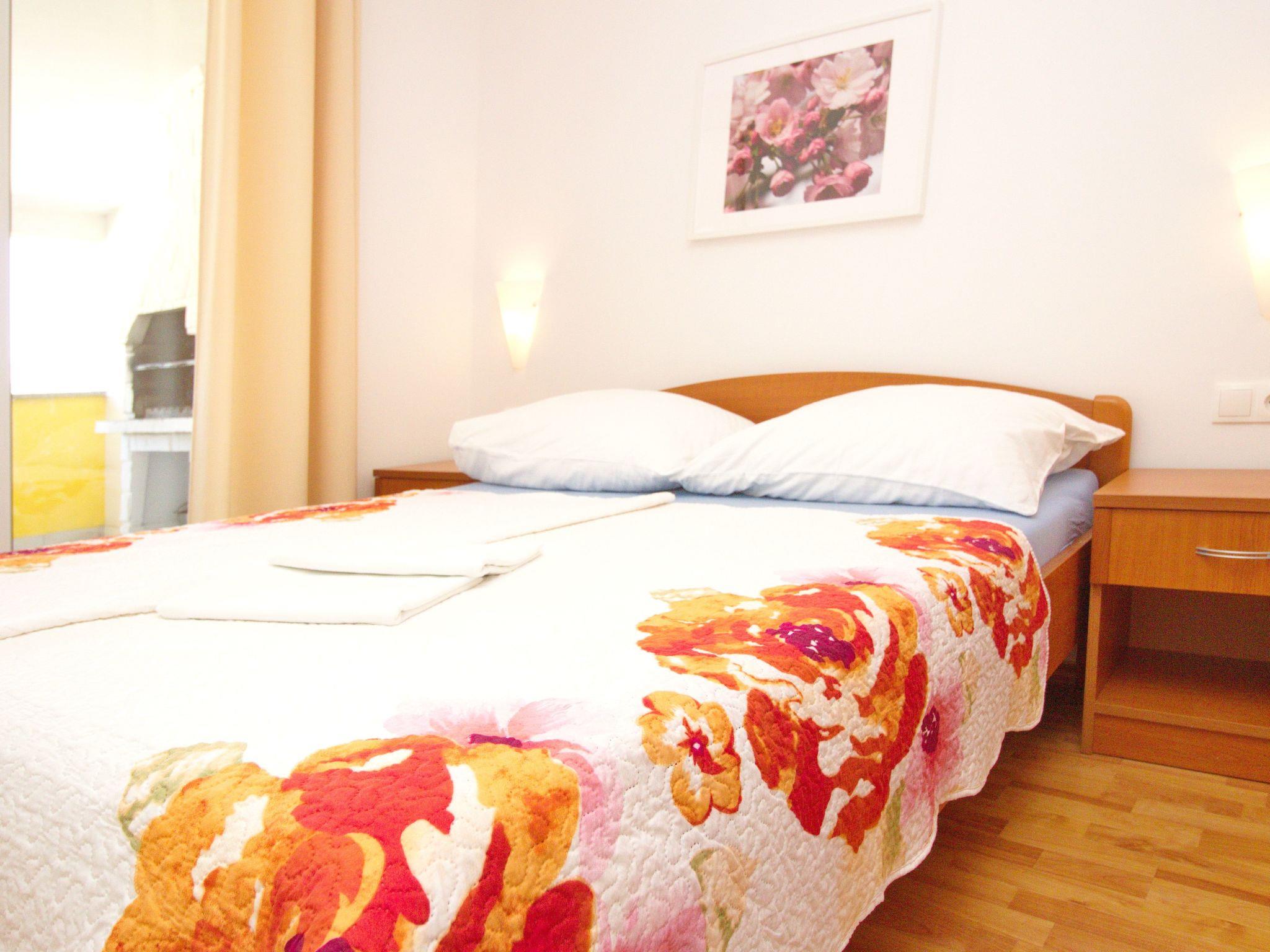Environment: Secure car park nearby at no extra charge. Other options: Pets are allowed on request. No. of persons: 6-8 Places: 100 m2 (1st floor) Balcony : a private balcony, covered, overlooking the sea, tables and chairs for the balcony are available. Info: Satellite TV, bed linen is provided once a week, towels available (1 large, 1 small / per person and week), use of air conditioning is included in the price of the accommodation Apartment facilities: Bedroom no.1 : double room , double bed, laminate Bedroom no.2 : double room , double bed, laminate Gallery : 2 x French bed, laminate