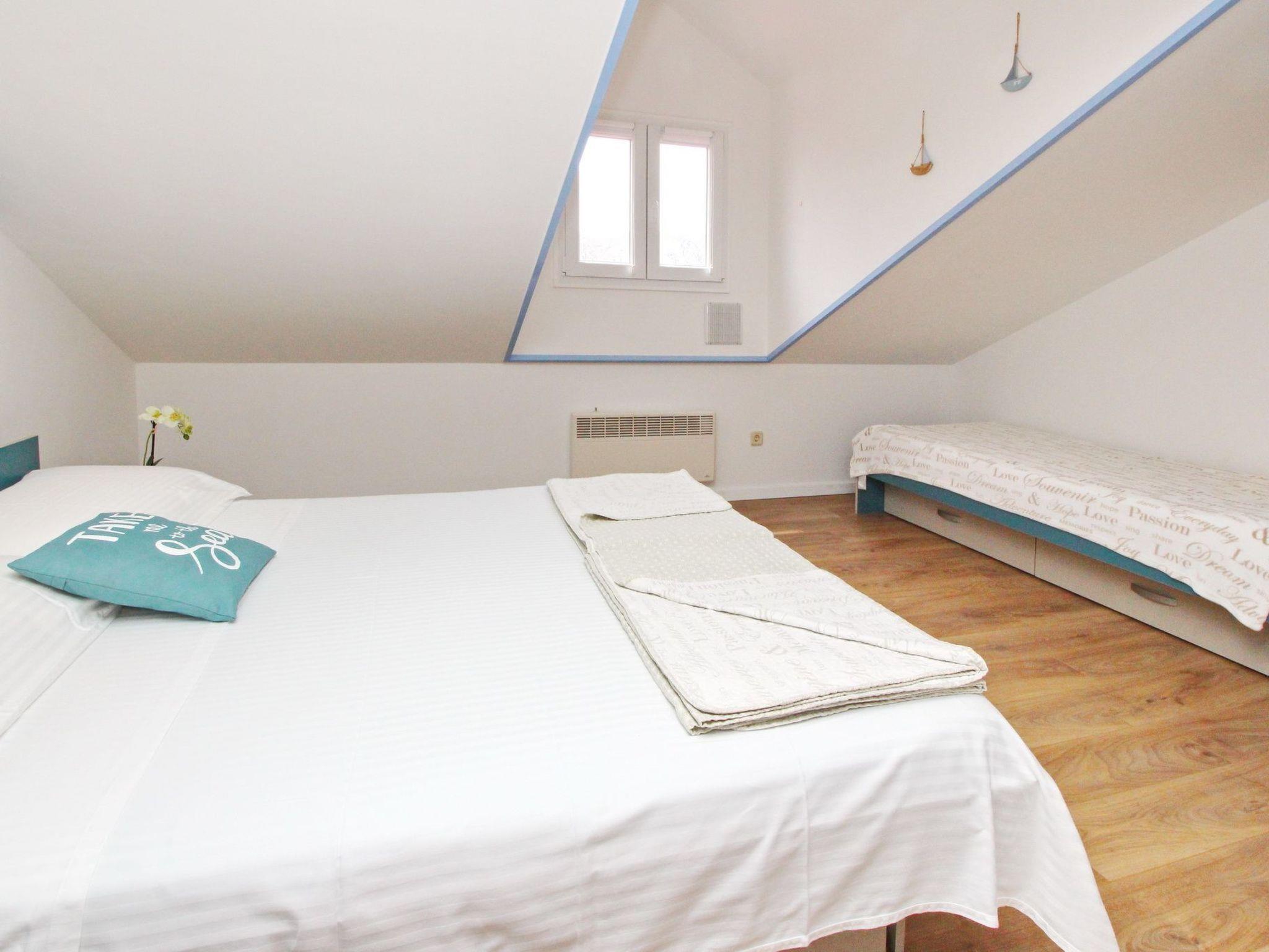 No. of persons: 2-3 Places: 34 m2 (2nd floor) Balcony : a private balcony, tables and chairs for the balcony are available. Info: Satellite TV, bed linen is provided once a week, towels available (1 large, 1 small / per person and week), use of air conditioning is included in the price of the accommodation, pets are not allowed. Environment: car park secured nearby at no extra charge. Flat facilities: Bedroom : Double room , French bed , one single bed ; Living area Living room, dining room and kitchen are one unit ; Dining table and seating for all persons ; with balcony ; Tiled