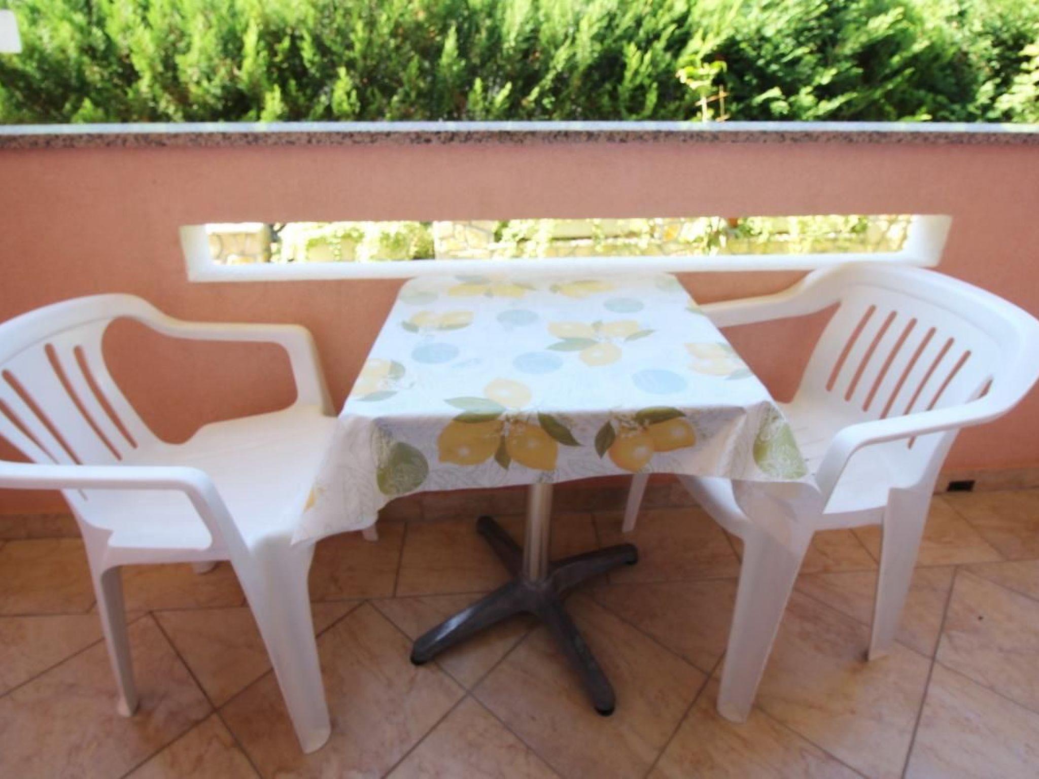 No. of persons: 2-3 Places: 38 m2 (1st floor) Balcony : a private balcony, covered, tables and chairs for the balcony are available. Info: Satellite TV, bed linen is provided once a week, towels available (1 large, 1 small / per person and week), use of air conditioning is included in the price of the accommodation, pets are not allowed. Bedroom : double room , double bed living room, dining room and kitchen are one unit ; dining table and seating for all persons ; one additional sleeping possibility on a sofa bed ; with balcony ; tiled floor