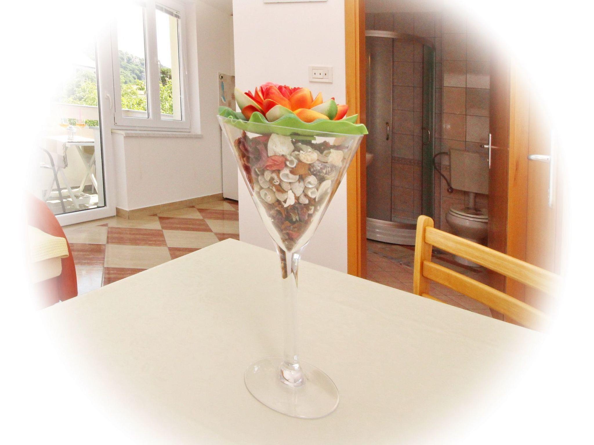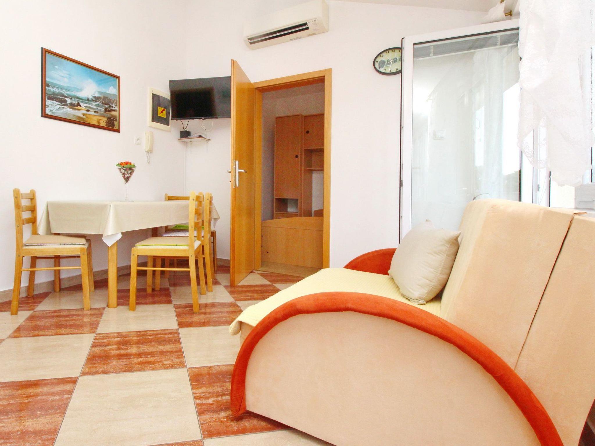 Free Wi-Fi, parking in the courtyard. Apartment features: bedroom : double bed , laminate kitchen : kitchenette, dining table and seating for all persons, dishes, pots, cutlery, etc. are available, dish towels available, electric cooker, number of hotplates: 2, refrigerator without freezer, coffee maker living area : living room, dining room and kitchen are one unit ; with balcony ; tiled bathroom : bathroom with toilet, with shower