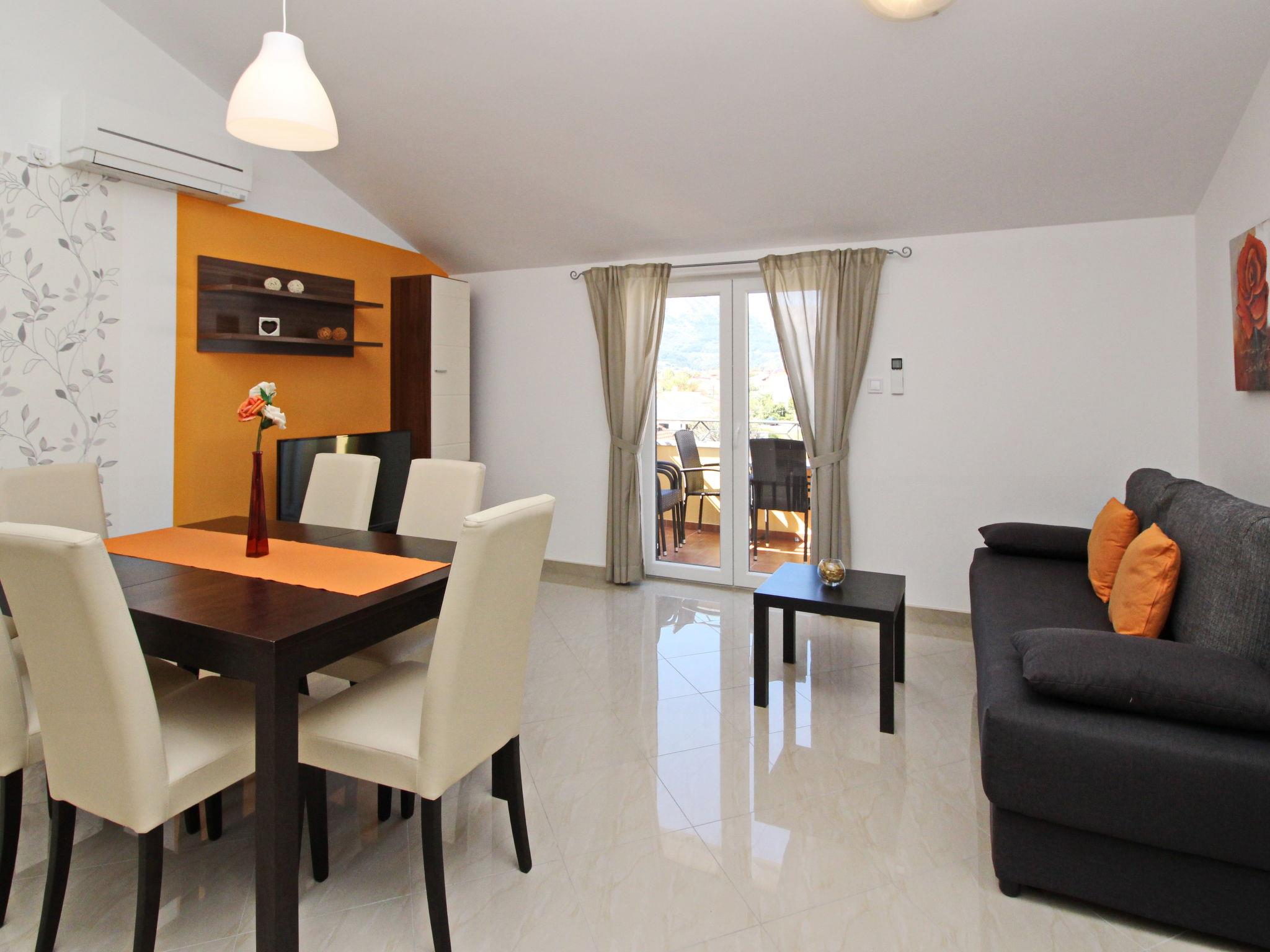 Apartment Flora 7 for accommodation up to max. 4 persons, cozy and modern, situated in an apartment building only 300 m from the famous beautiful beach of Baška. The apartment is located on the second floor of the building and consists of a space that combines a living room, a fully equipped kitchen with a dining area, two bedrooms with a double bed, two bathrooms with a shower and a toilet, and a balcony. It is equipped with SAT TV, air conditioning, WiFi, and in the shared garden there is a large swimming pool that is available to all guests.