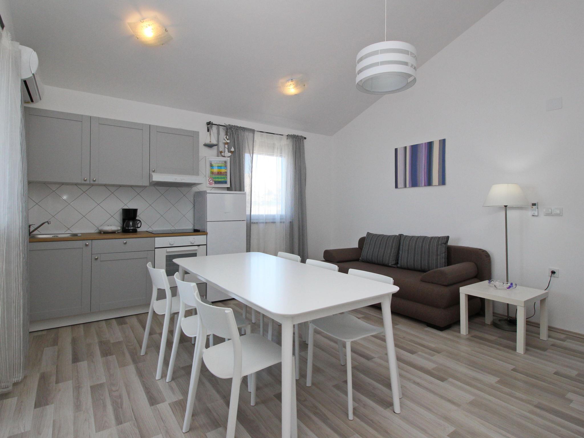 The apartment is located on the first floor and boast a magnificent sea view from its terrace. It can accommodate up to 6 persons and is elegantly furnished. It offers a well-equipped kitchen with a living room space, two double bedrooms and a bathroom with a toilet. The property is located directly in front of the sea and just 20 meters away from the nearest beach thus offering guests maximum convenience and comfort on their way to enjoying the clear turquoise water.