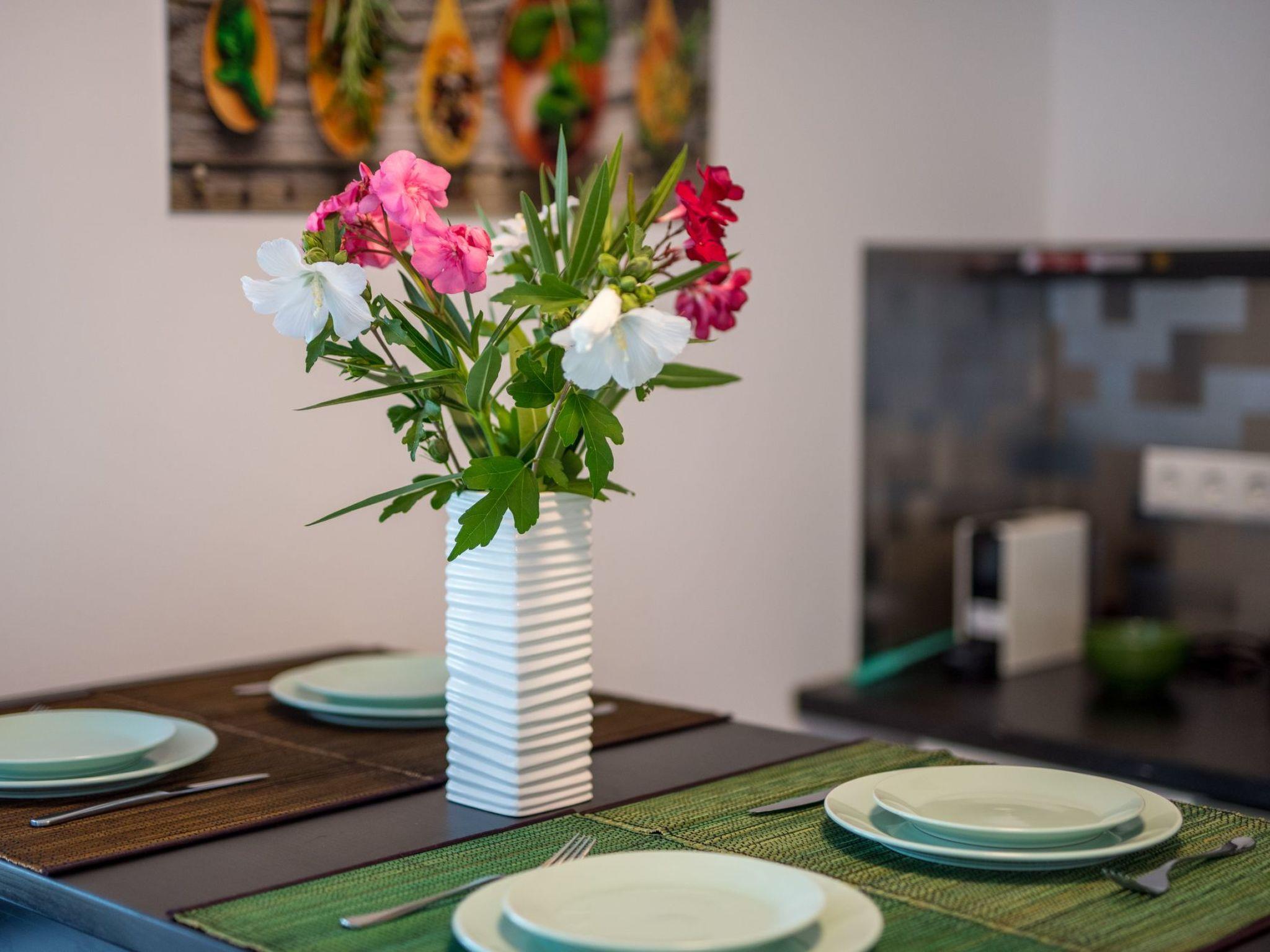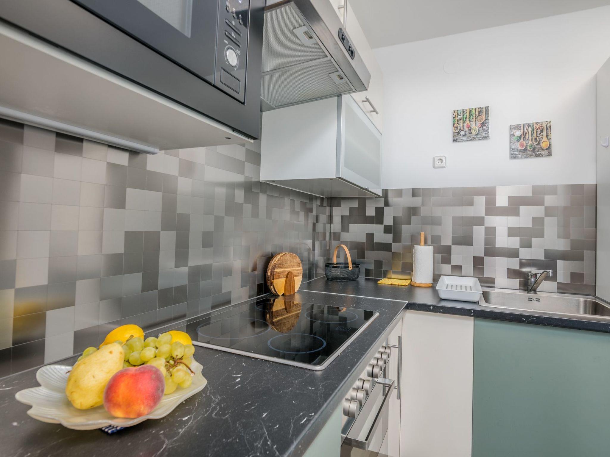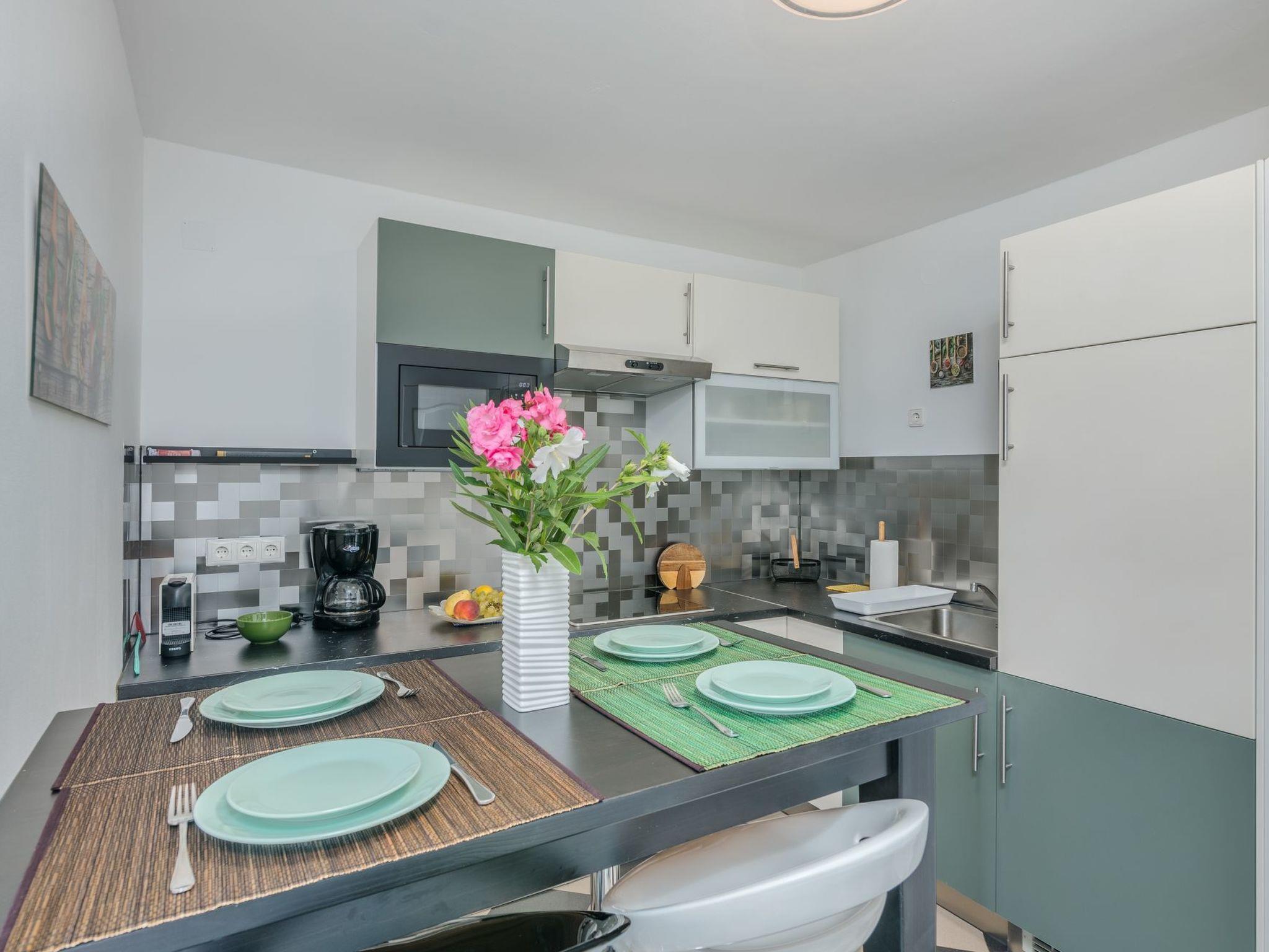 The interiors of the Dragica holiday flat are characterised by well thought-out planning and functional furnishings. Two cosy double rooms promise restful nights after long days under the Adriatic sun. An integrated eat-in kitchen, equipped with an electric cooker and coffee machine, offers ideal conditions for shared cooking experiences and cosy evenings. The bathroom with shower rounds off the comfortable living space.