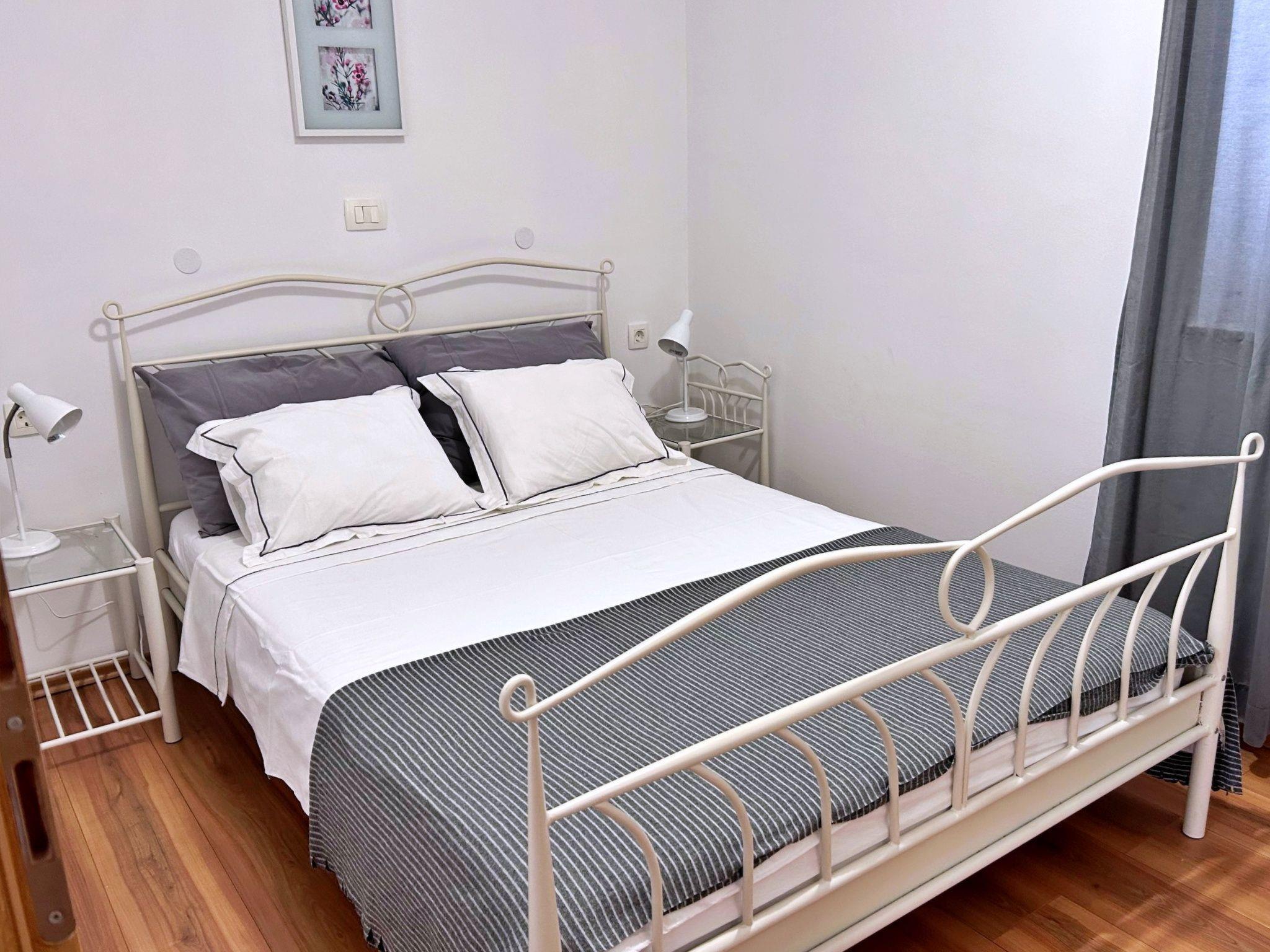 This 1st floor flat offers a 4 m2 balcony with sea view. The air-conditioned kitchen with living area is equipped with a ceramic hob, a fridge with freezer compartment, a Nespresso coffee machine, a kettle, a microwave, a toaster, a dining table, an extendable sofa bed for two people, cable/satellite TV and WiFi. From the living area you have direct access to the balcony. The bedroom has a double bed and the bathroom is equipped with a shower, toilet and hairdryer. There is a shared barbecue area and terrace in the courtyard, and a private car park is available free of charge in front of the building. Pets are welcome for an additional fee, and a baby cot is available on request.