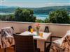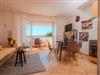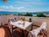 The outdoor area of the apartment doesn’t disappoint, showcasing a large terrace where guests can indulge in meals or drinks against the mesmerizing seascape. This pet-friendly space invites you to experience peaceful moments in the scenic environment with your furry friends by your side, making it perfect for relaxation and enjoyment.